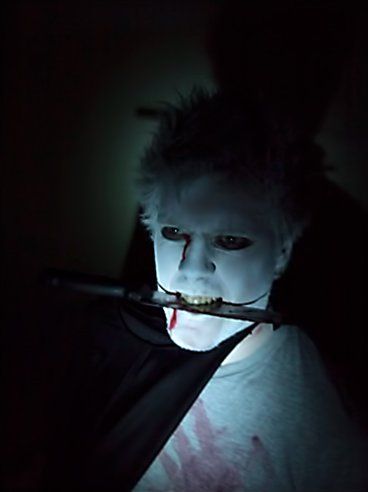 One of several pieces of Halloween makeup done on mates at university with mainly hairspray and some blood syrup as was on a very low budget and time constraint, plus they had no patience. Very simple, cheap and quick, but strong effects.