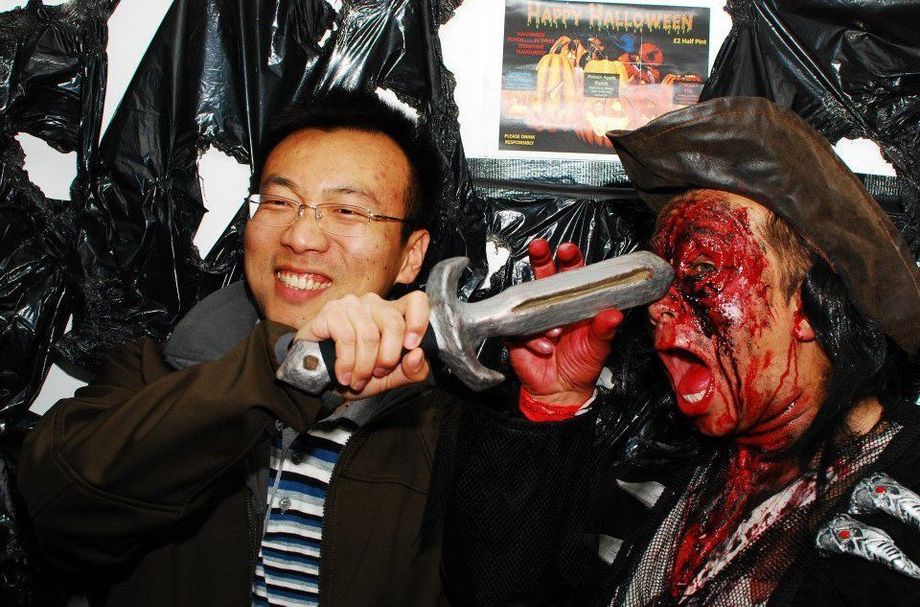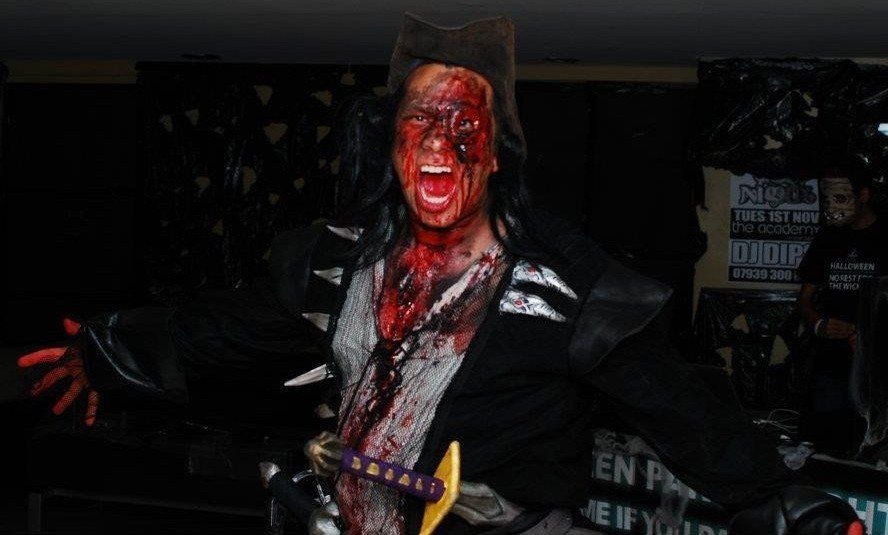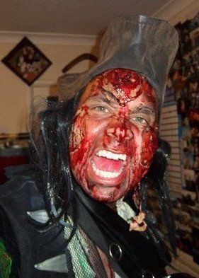 Have used my pirate costume, prop weapons and various DIY prosthetic over several Halloween years, with black and white hair spray, home made syrup blood and custard puss. Peckers the frisky parrot joined in the party spirit to pull in he other birds. (Mainly as tend to be broke at this time and had the costume).