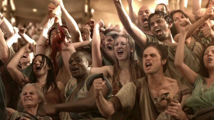 - Roman gladiator arena entertainment both of gladiators and horrific executions whilst the raucous sadistic audience get their pleasure form the suffering of those in the arena. Laughing at, cheering and jeering.