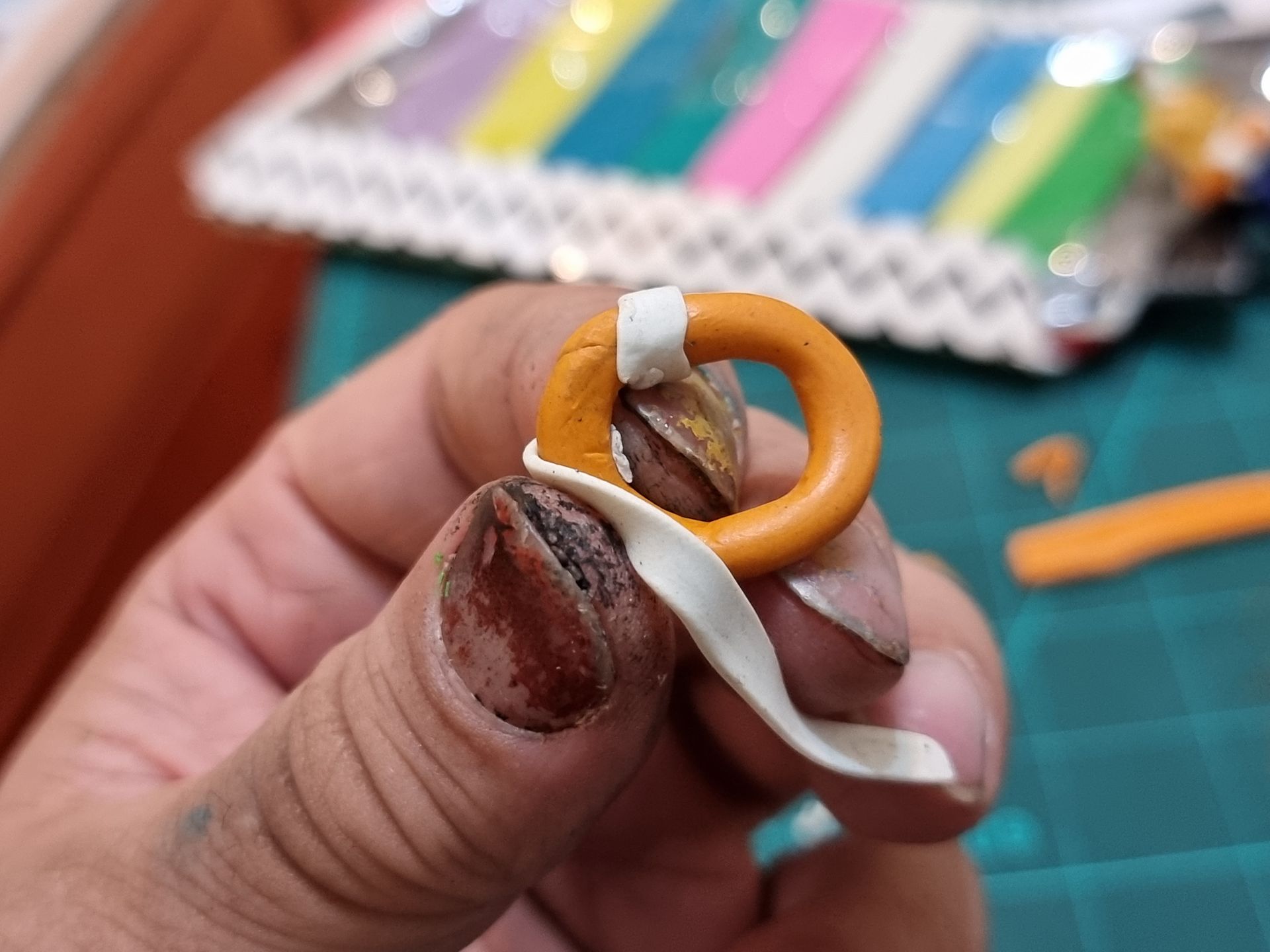 I did this as did not have Fimo clay that could be hardened in an oven at the time of experience using it. This will be done at a later date.