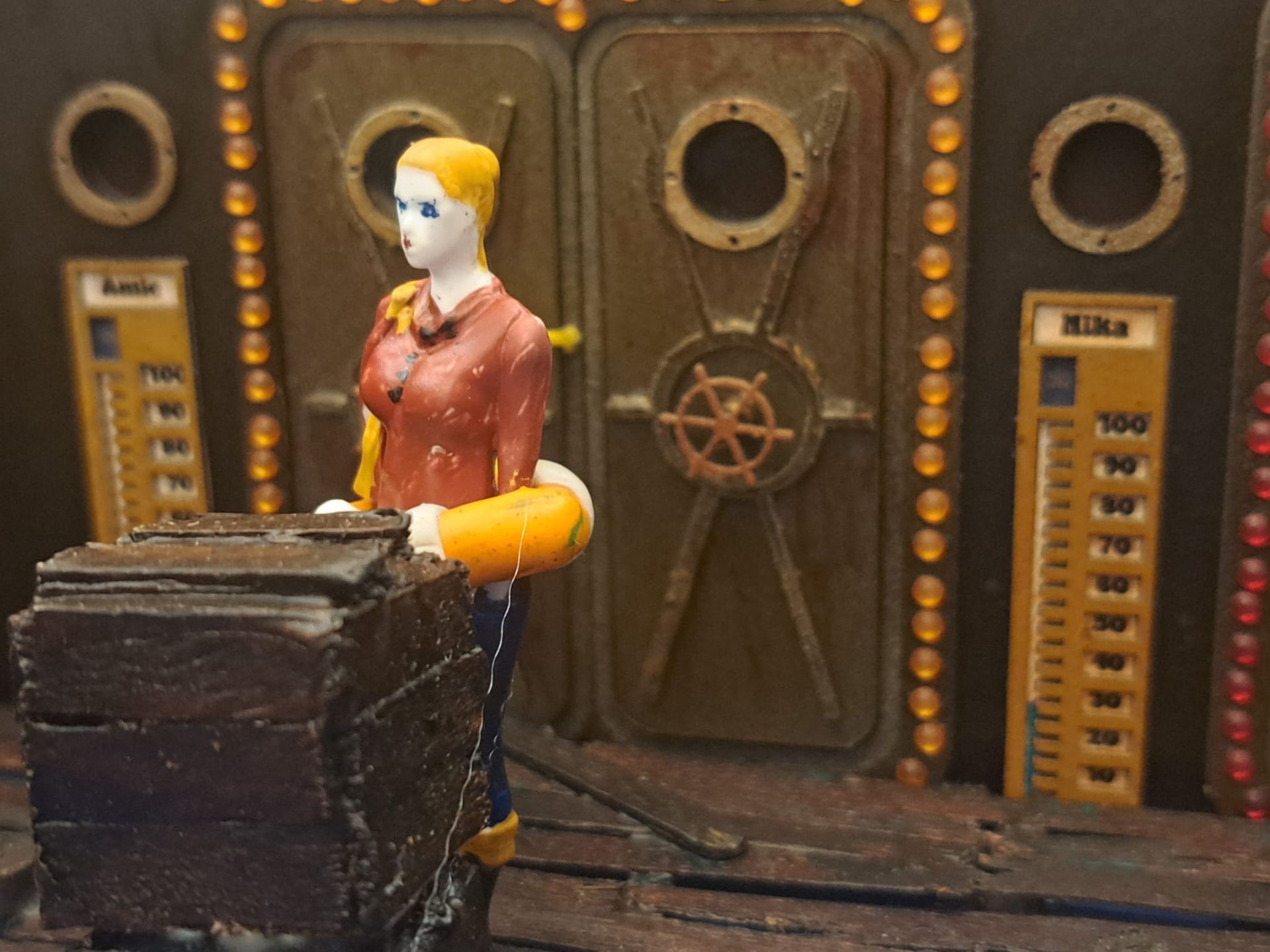 I created life rings with oil based coloured clay Plasteline.