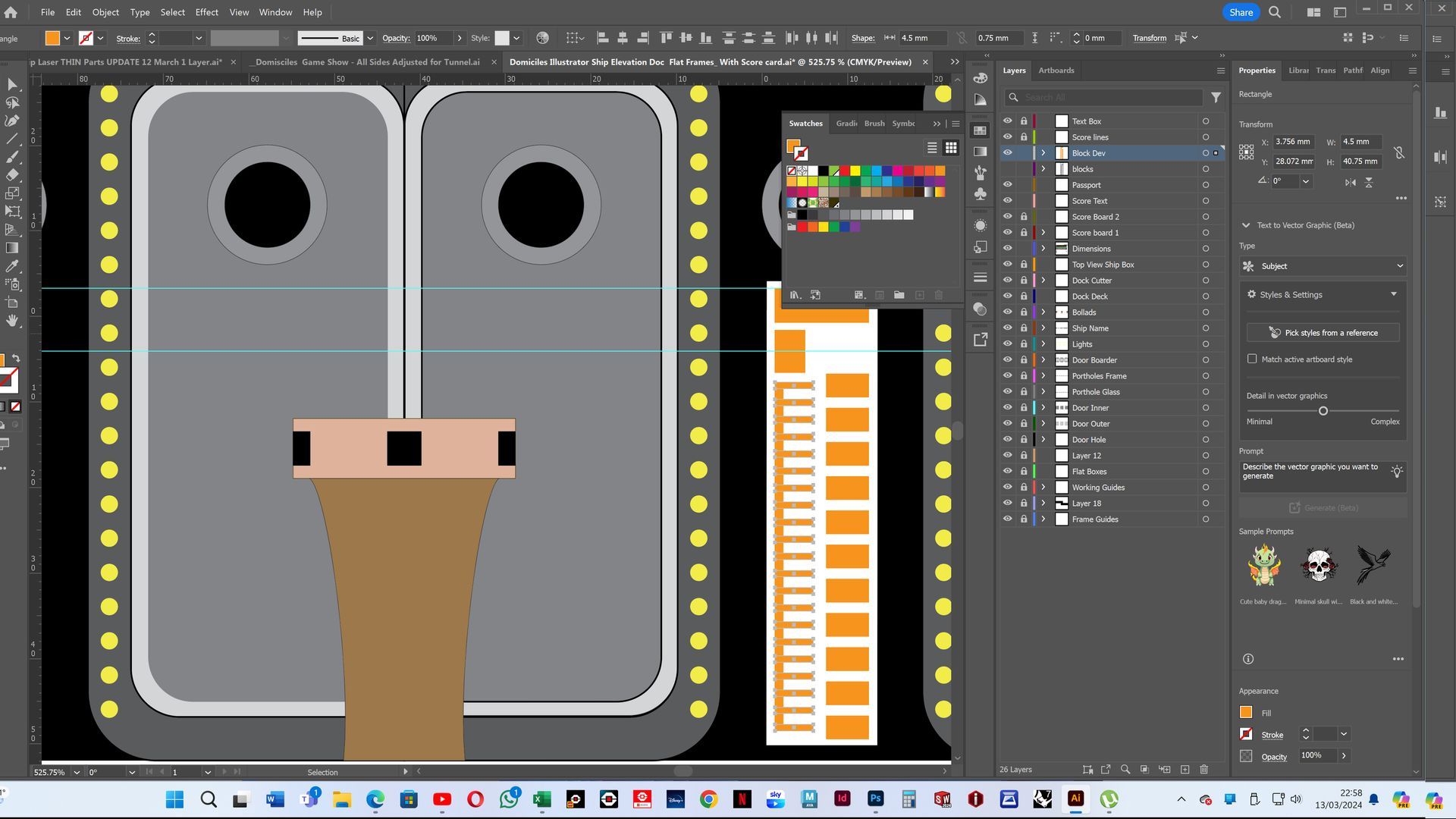 Whilst the original wish from the directors for the scoring indicators was the rotating card flap mechanism where the numbers are on card handing from a barrel that rotates 0-9 I chose to try a more gameshow like accumulator indicators that could work by sliding a colour strip inside the from or simply fill it with coloured liquid, almost like a leak from the ship or being filled with seagull guano.