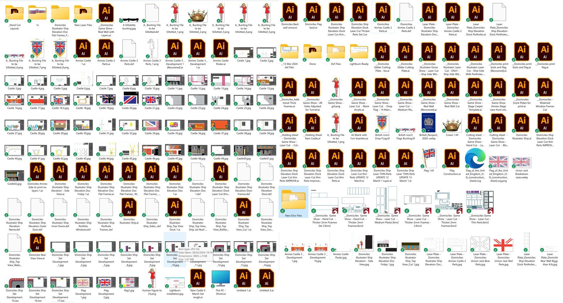 These flats are 120 x 240xm or 4 x 8 foot.The components were designed in Adobe Illustrator as laser cutters reply on vector art which is based on mathematical calculation making line art which will provide a path for the laser to follow.