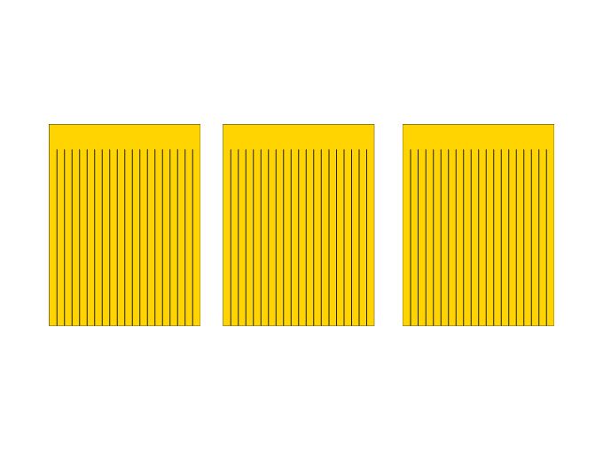 The 3 yellow rectangles are cutting patterns to make the gold foil, drop strip, walk through for the host to make an entrance through.