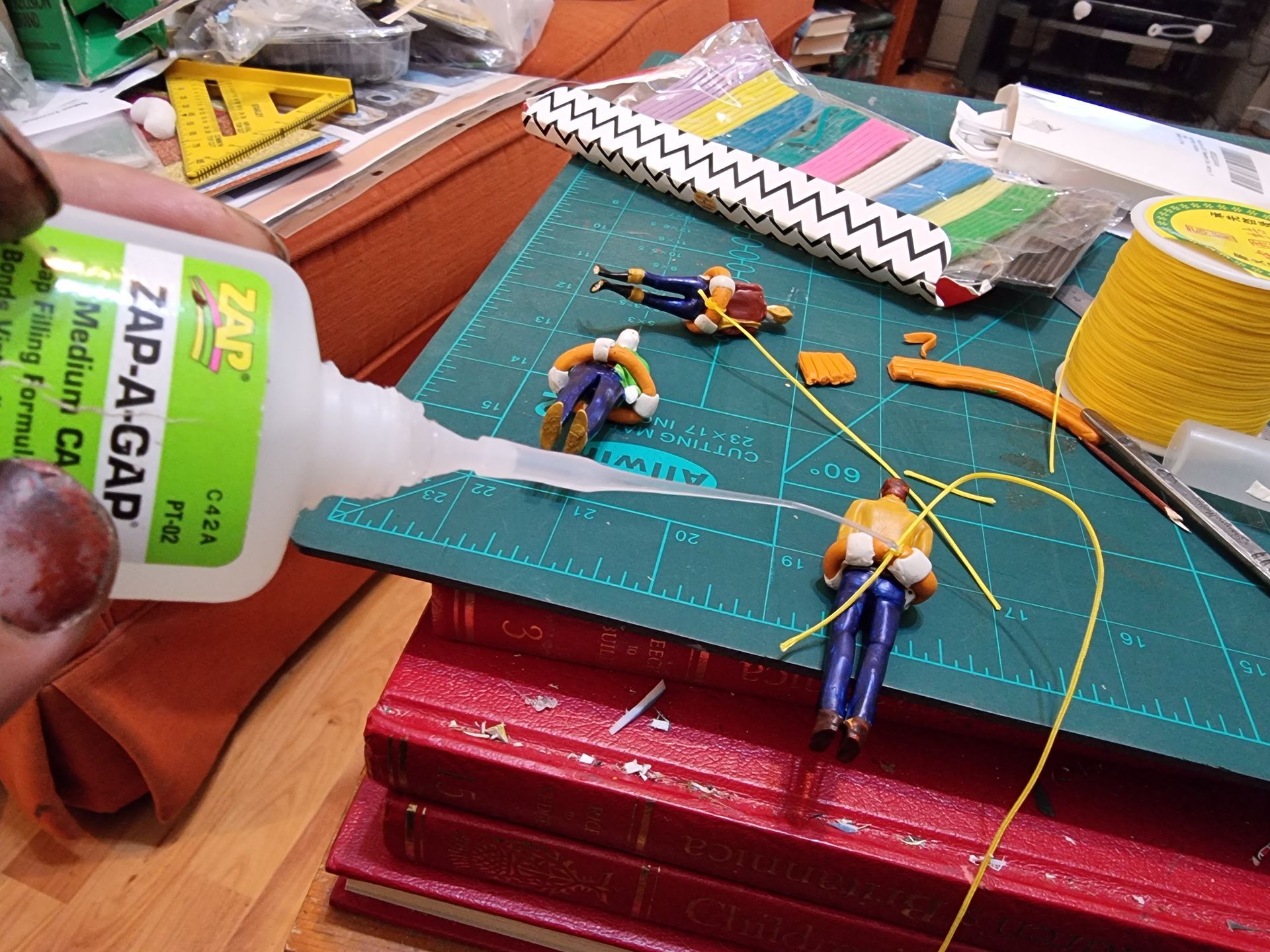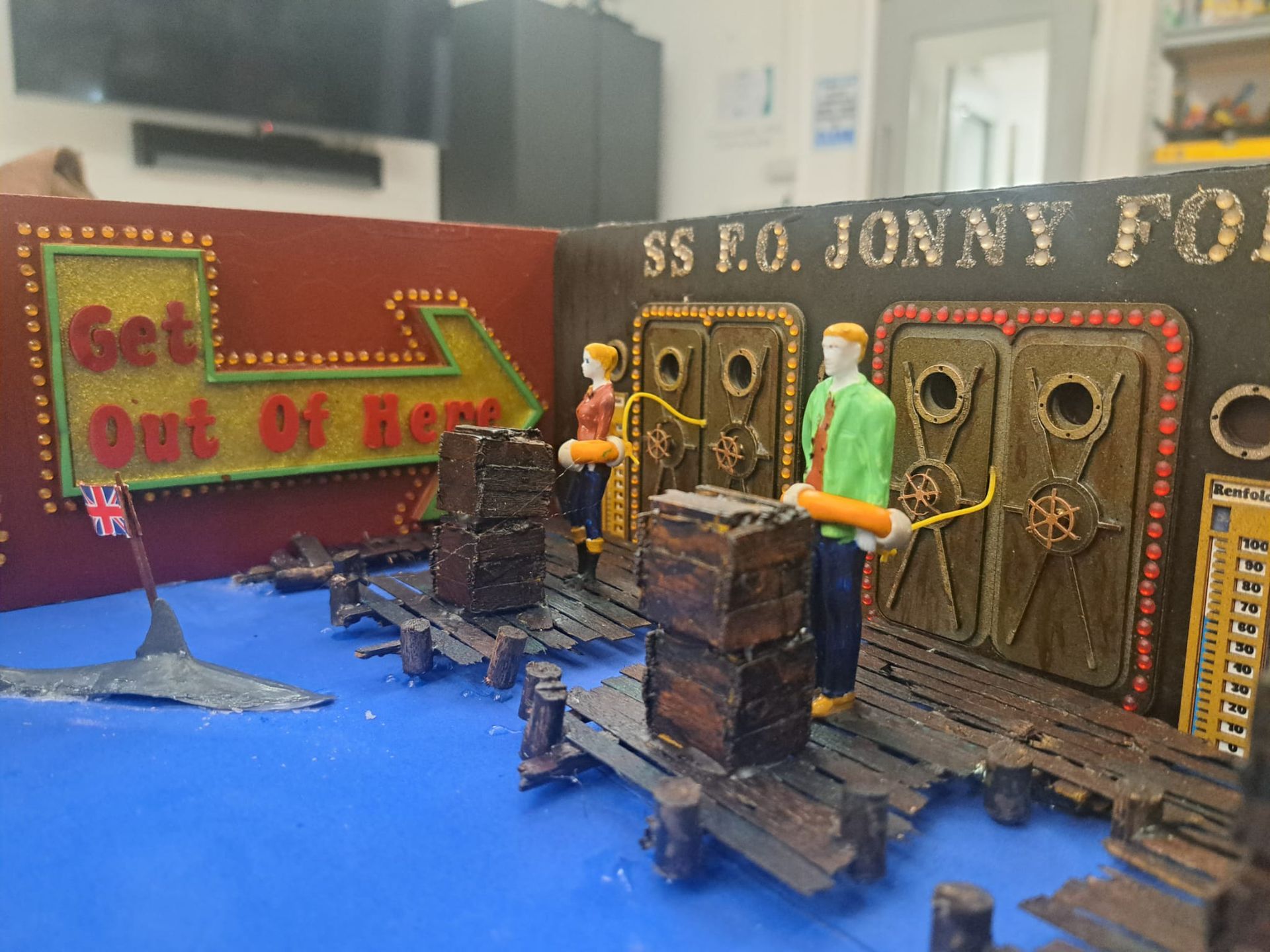 These figures where superglued onto the dock. This glue was painted over and simulated planting onto the glue resin.