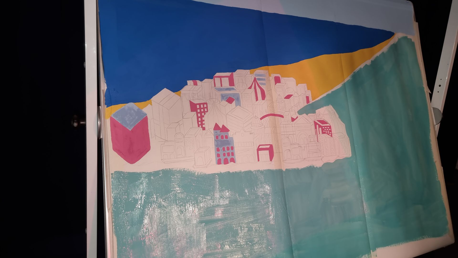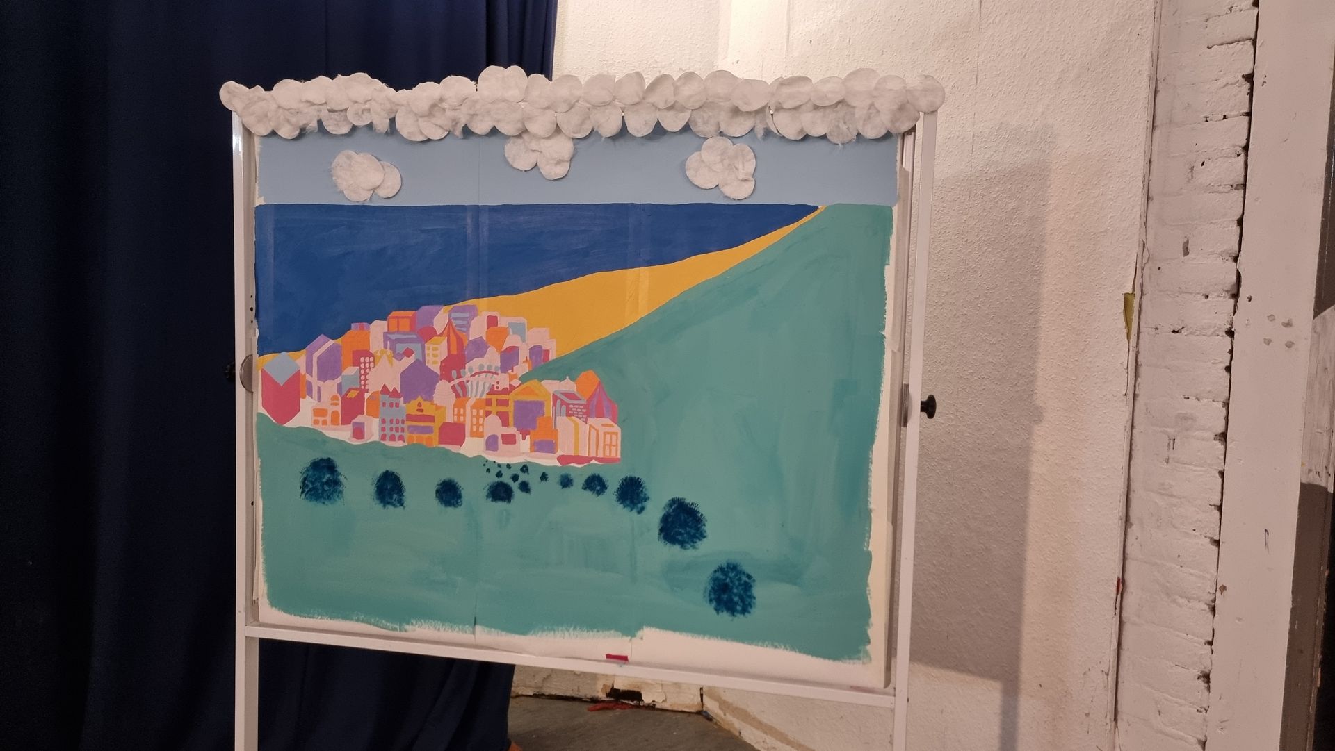 The town mural and the set design were student Kate’s Stebbings who was an excellent illustrator.