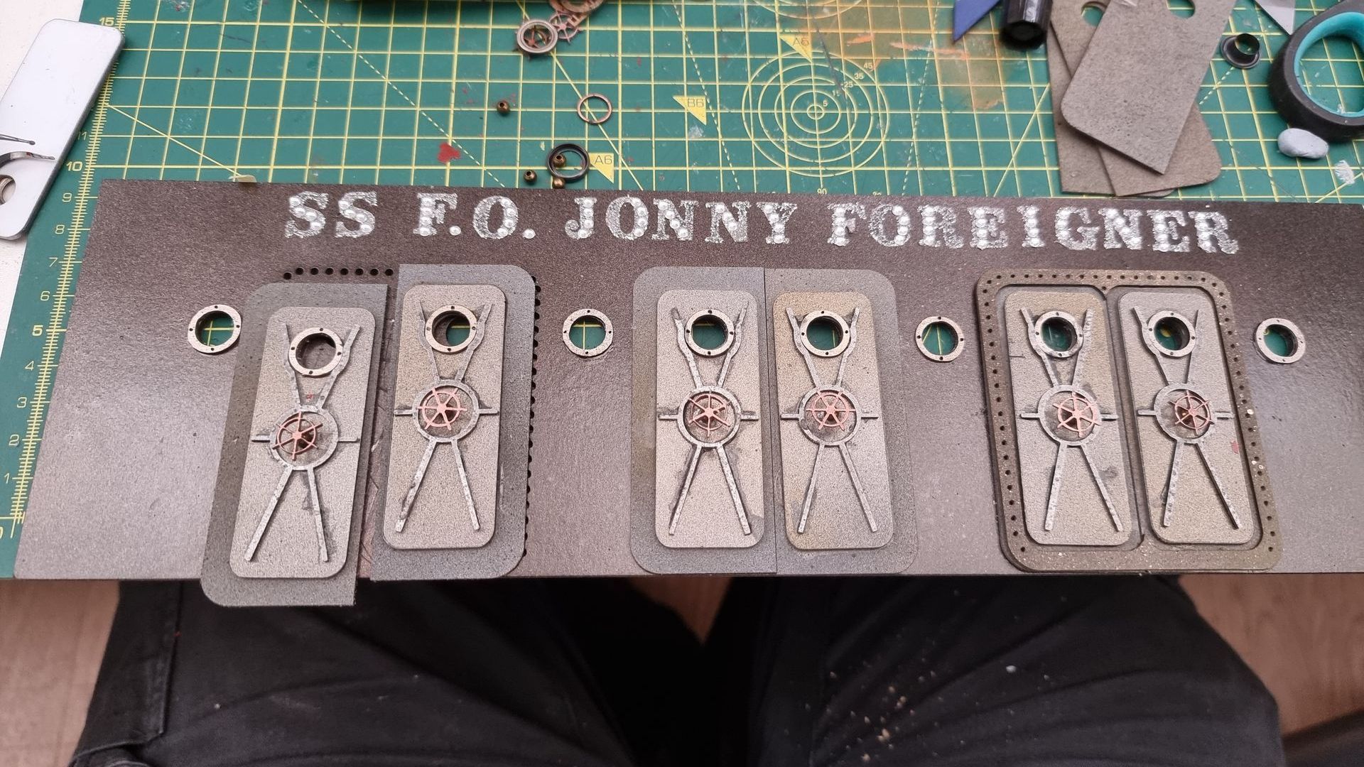 The inside of the portholes as meant to be black acrylic but had to accept dark brown to give a glass window finish.