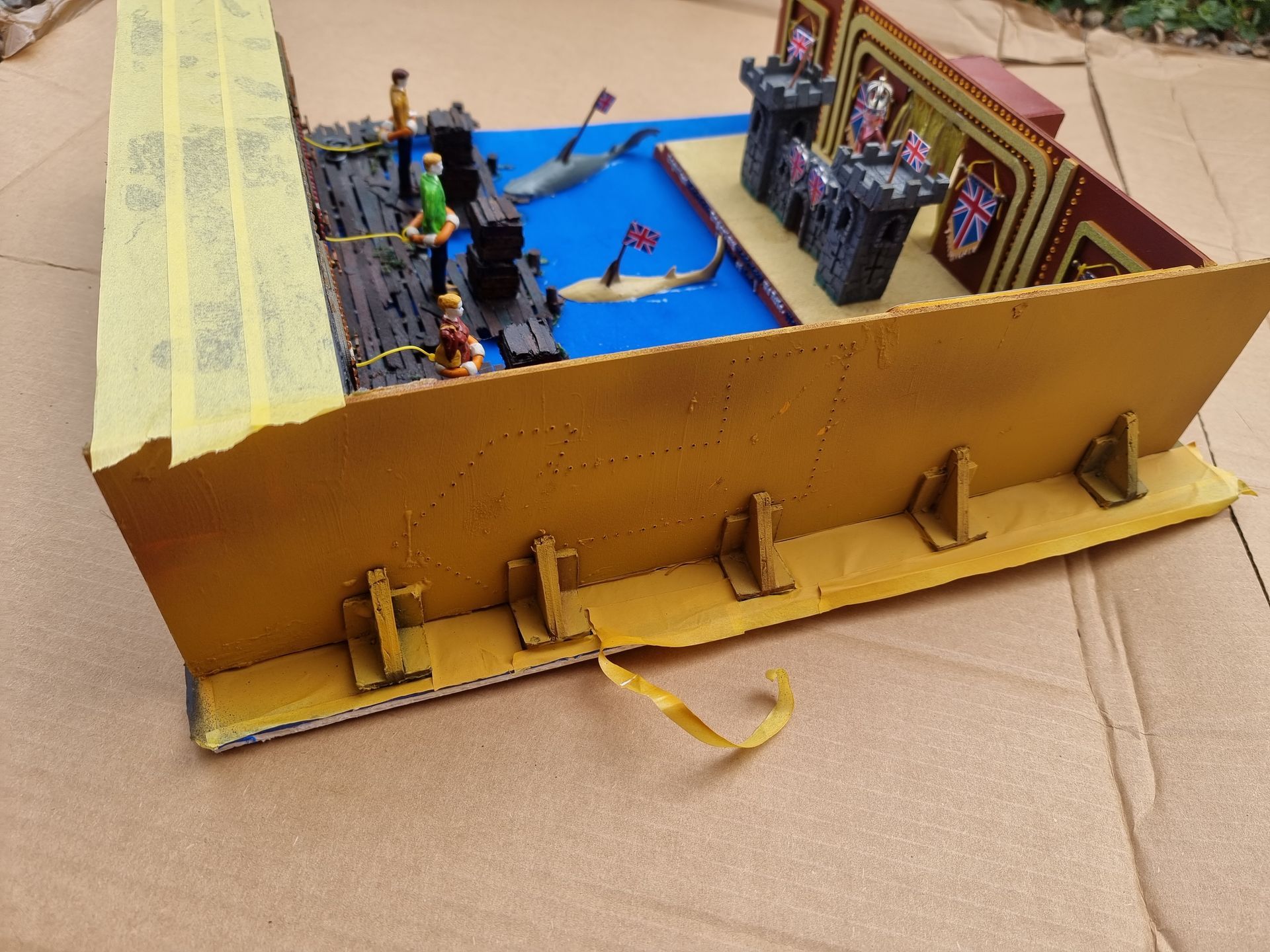 The studio model was created much the same as other white card models only I made the mistake of doing the walls first then trying to stick them to the base. This was partly due to being in a hurry.
