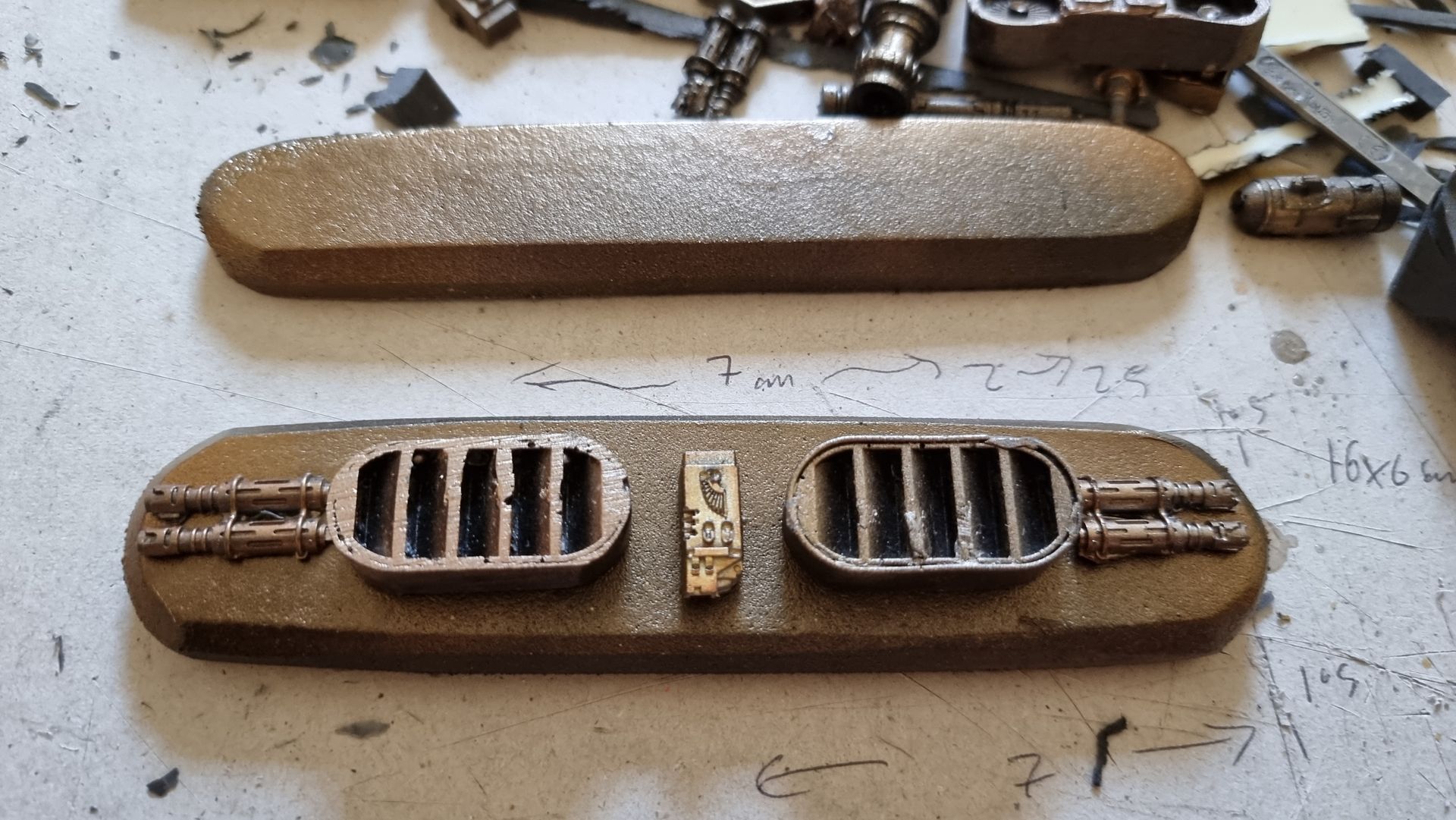 This needs to be thicker than the rest of the kit bash as would hit first to protect the other kit bash detailing.