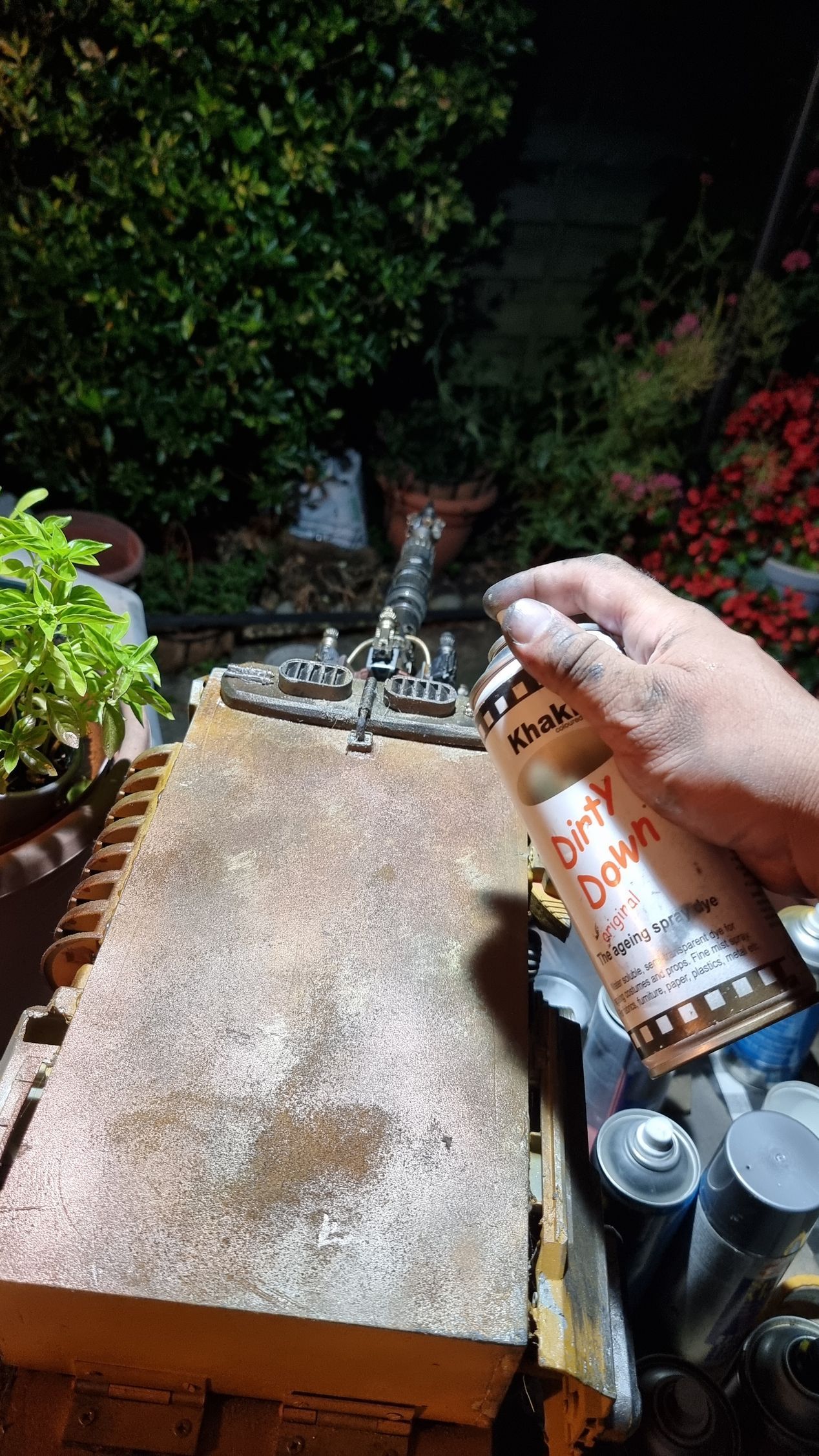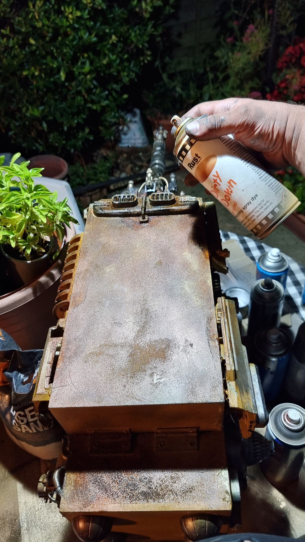 I just needed to lightly spray a thin wash with old gold and copper metallic, plus rust and khaki Dirty Down spray paint.