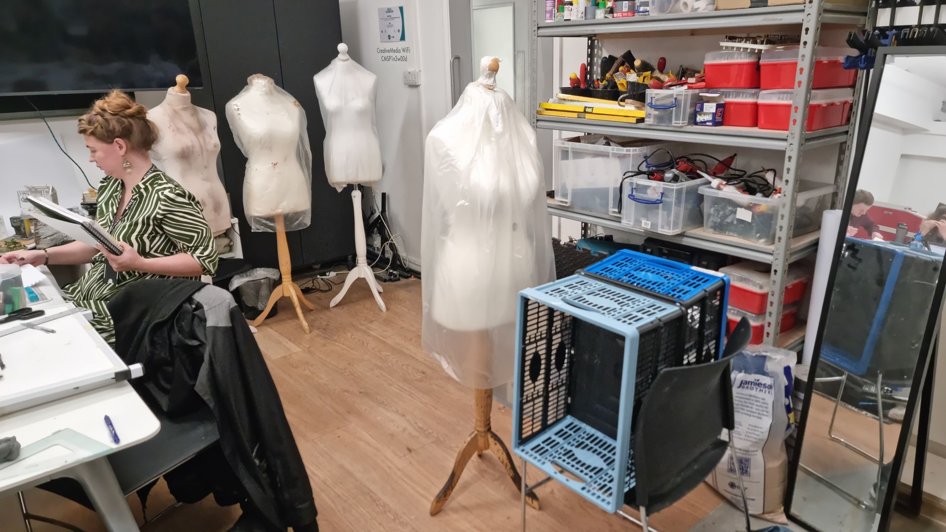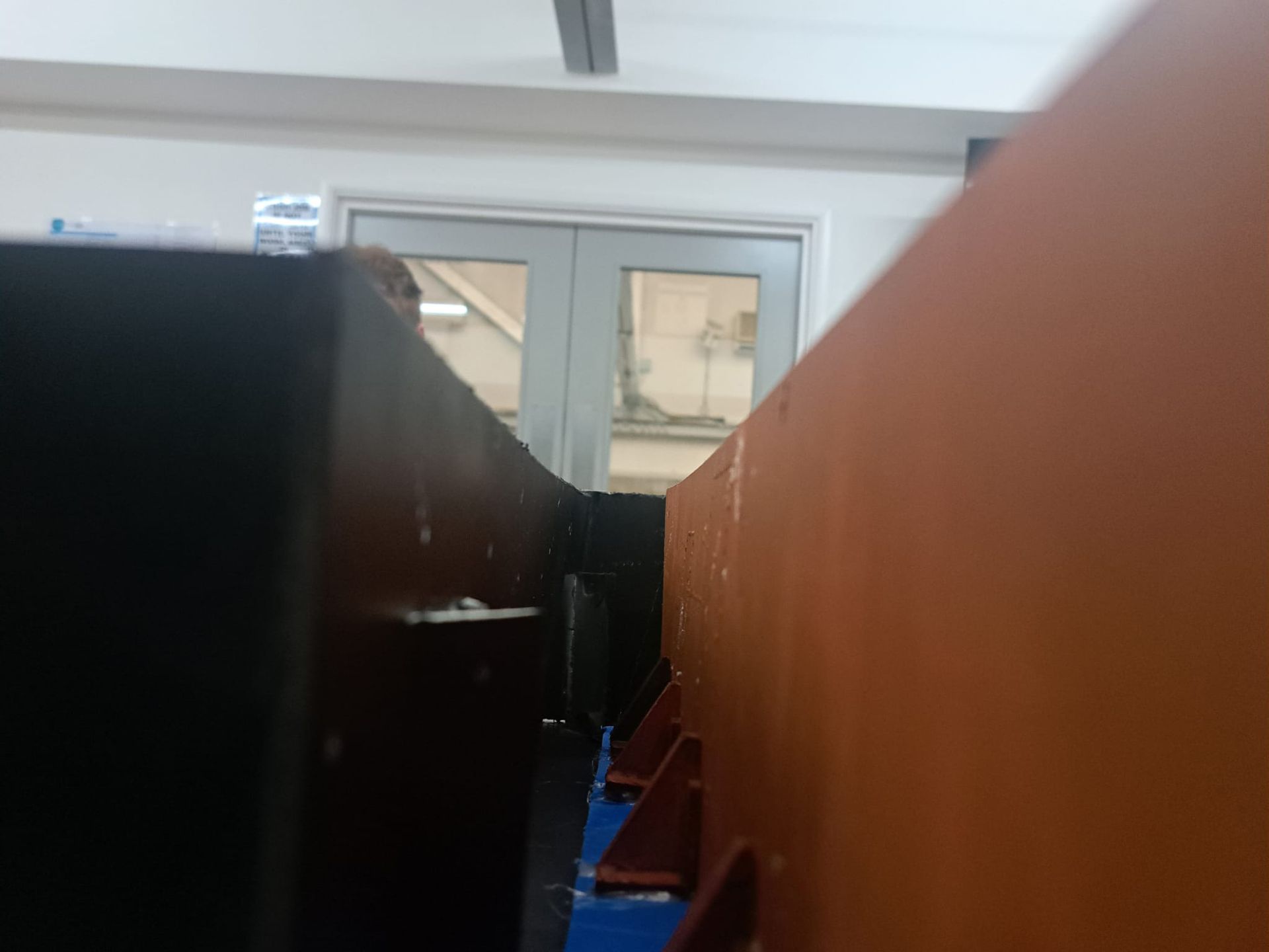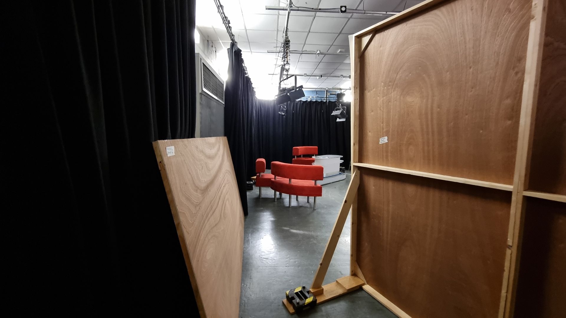 Simulated A frames were created to show how much extra space would be needed around the set model in the real studio. This shows difficulties that there would be in walking around the set or moving things like ladders and props.