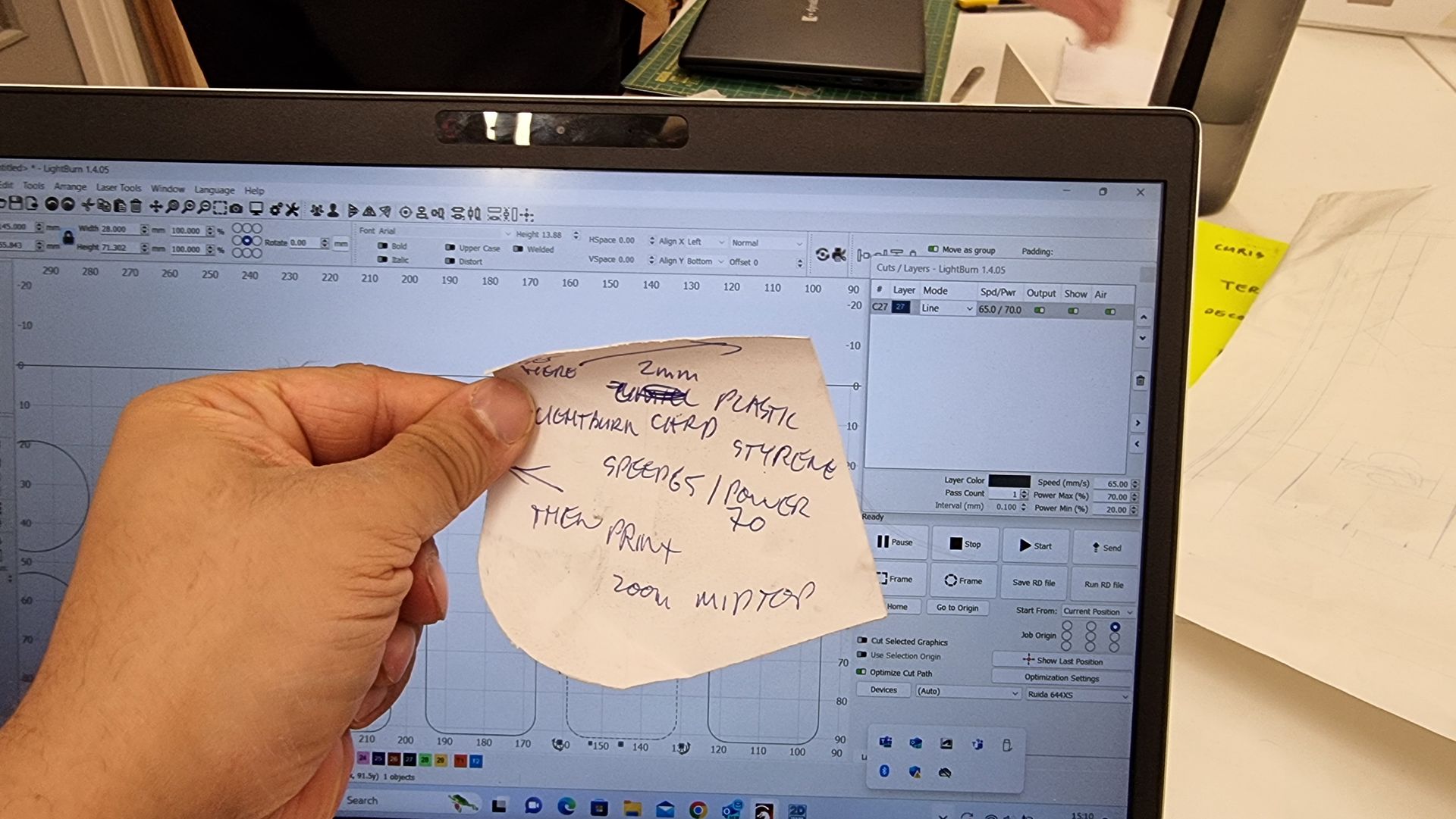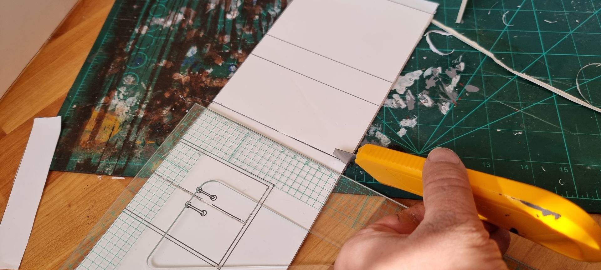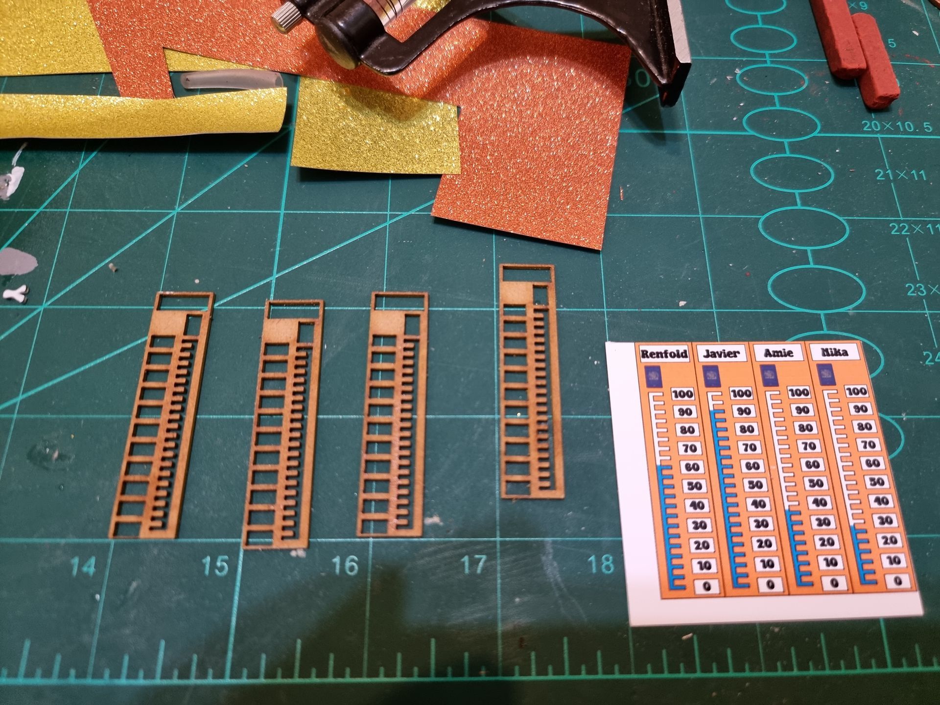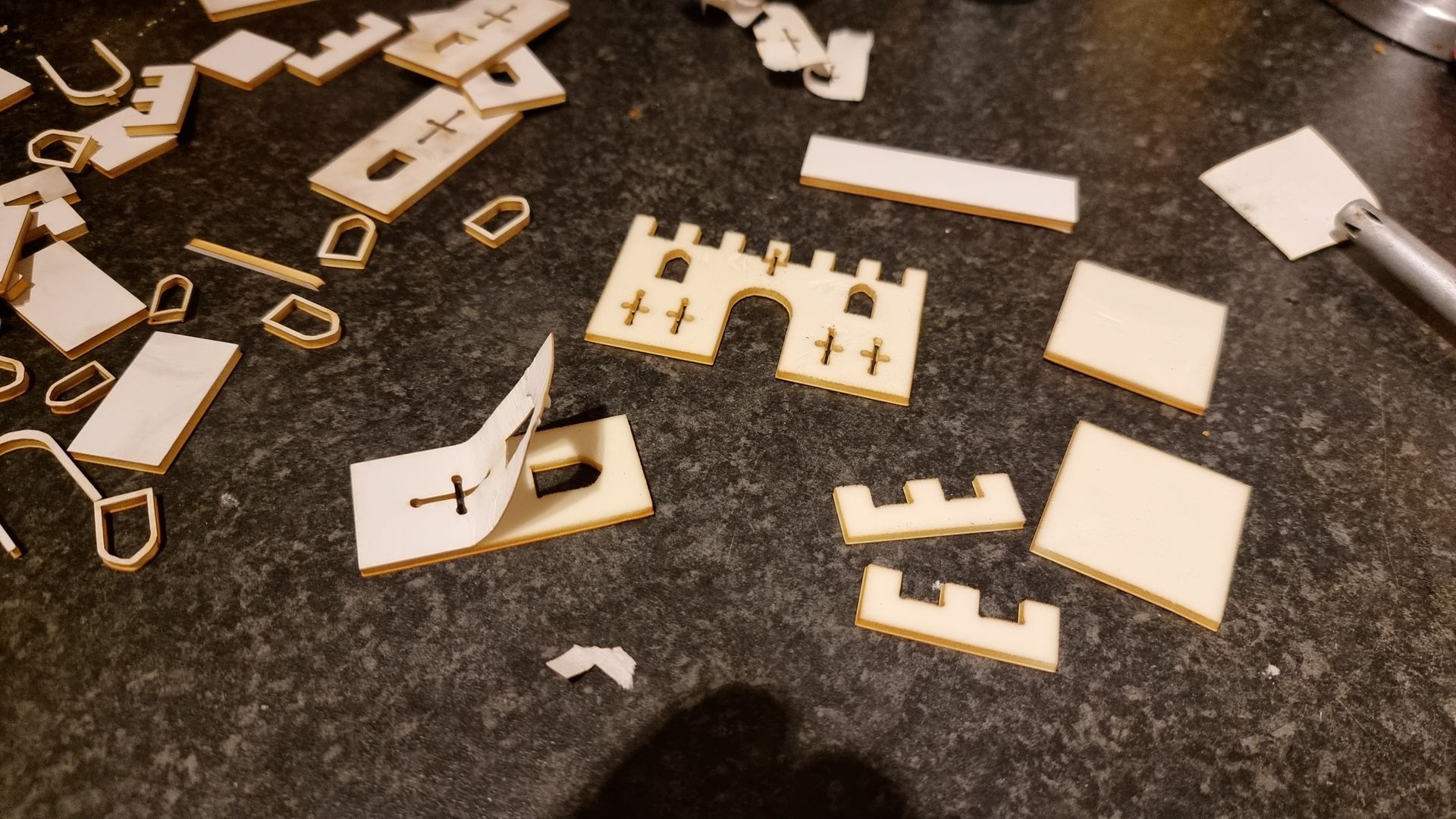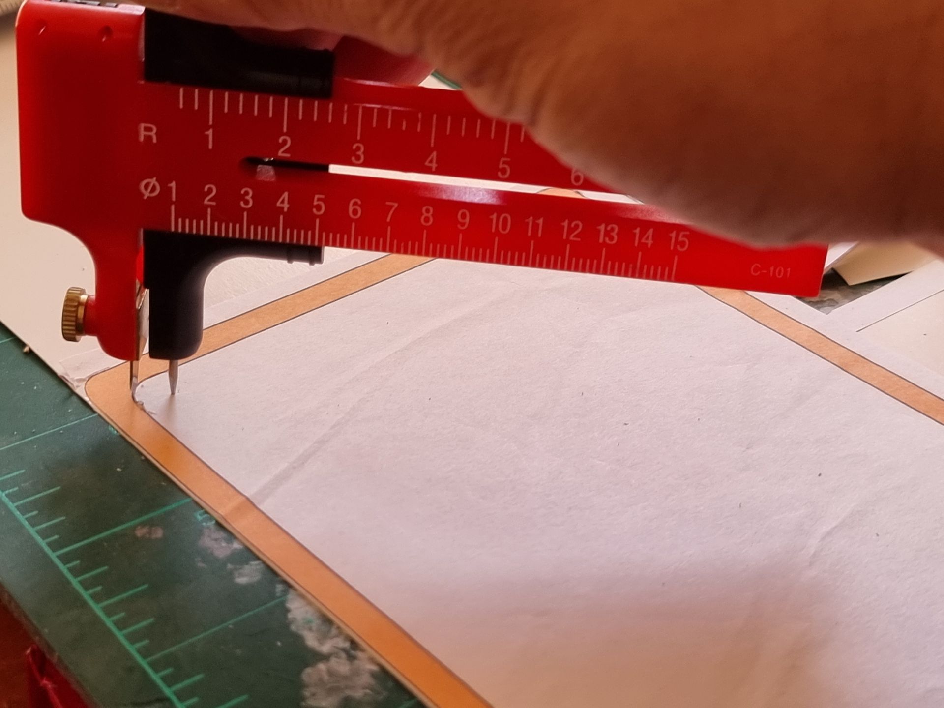 - These I decided to build in a laminated manner with white card or plastic at the back, the scale and name photo print out then the laser printed frame on top.