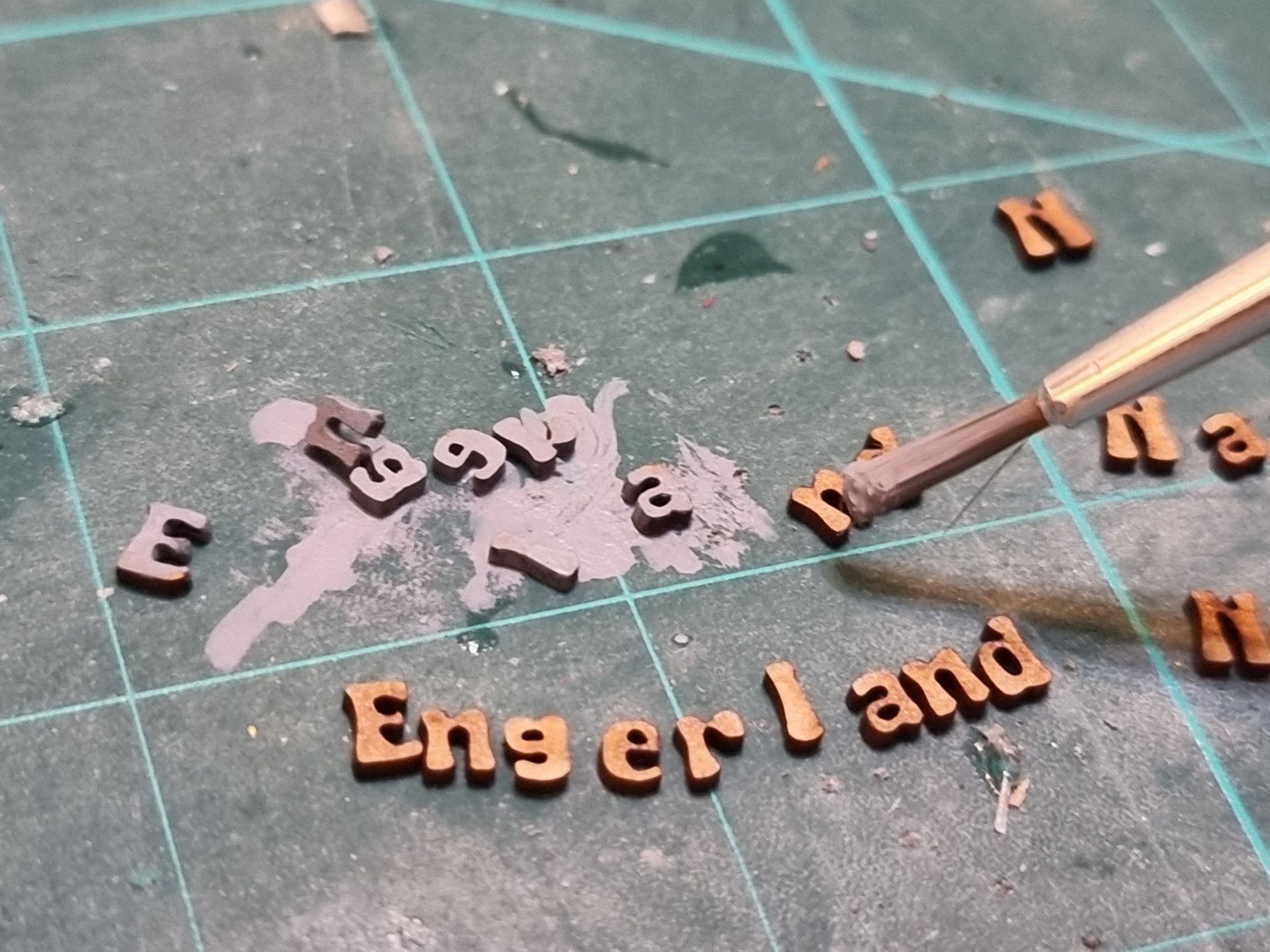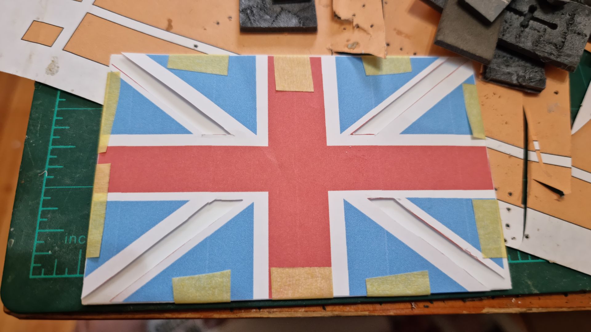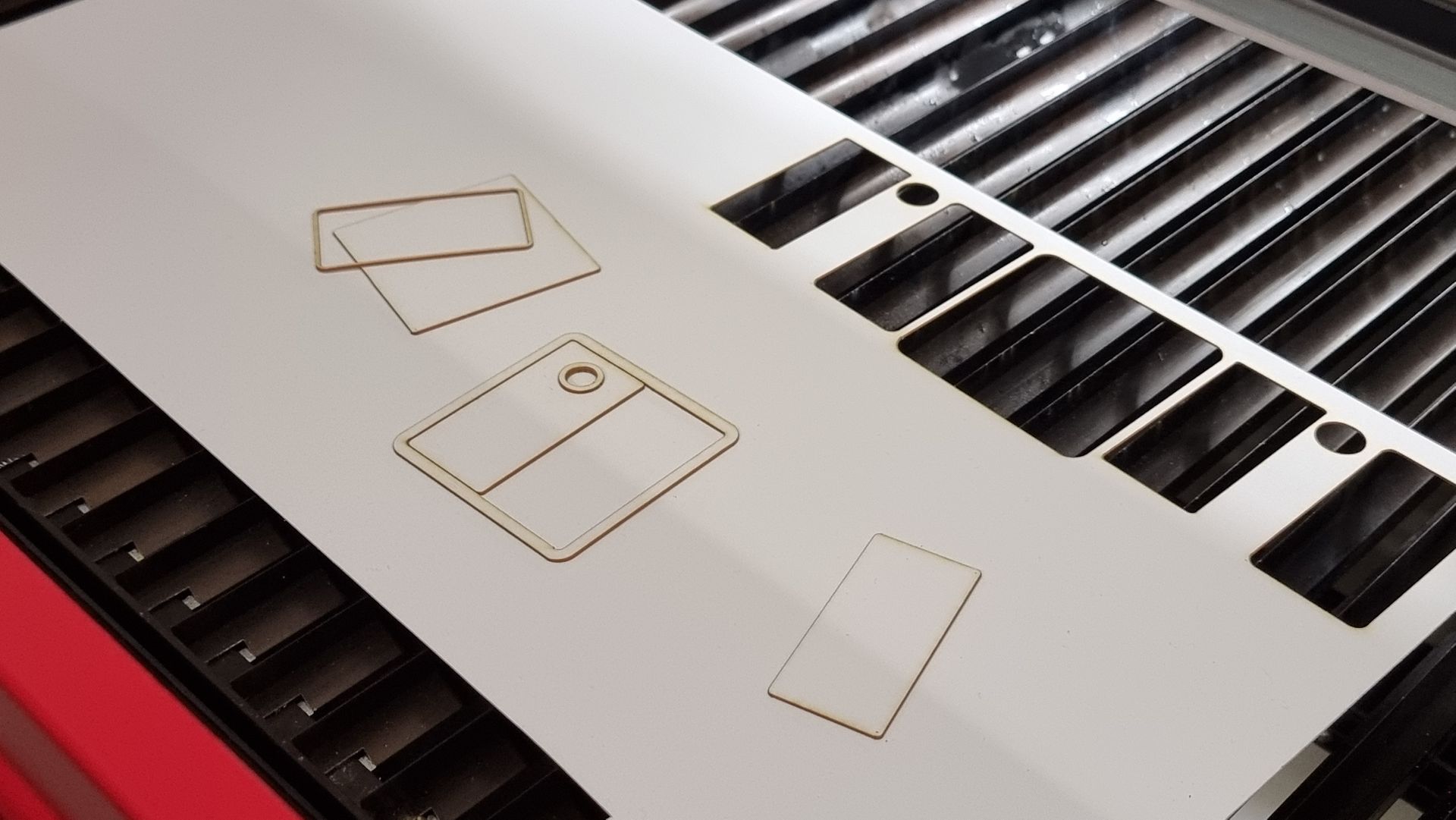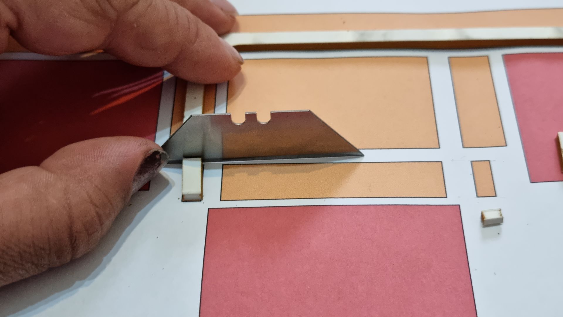 - These I decided to build in a laminated manner with white card or plastic at the back, the scale and name photo print out then the laser printed frame on top.
