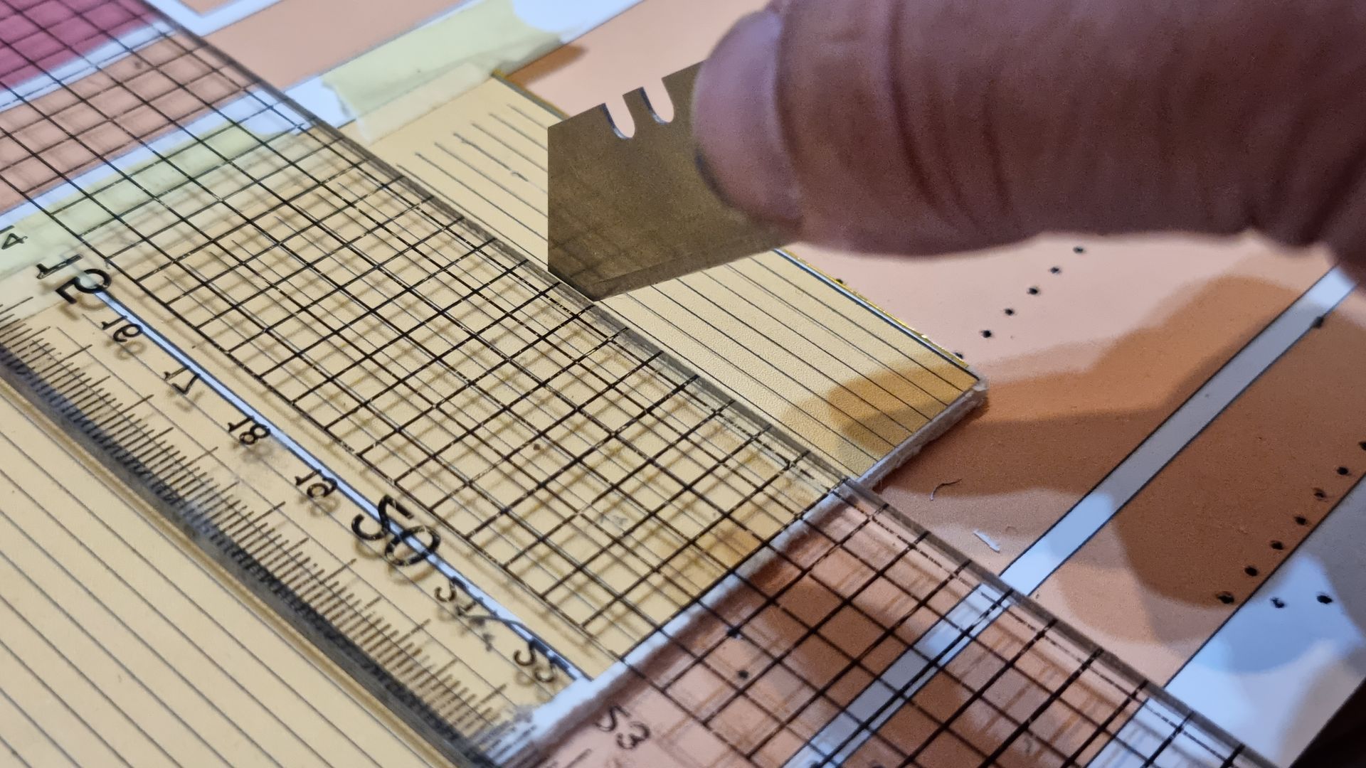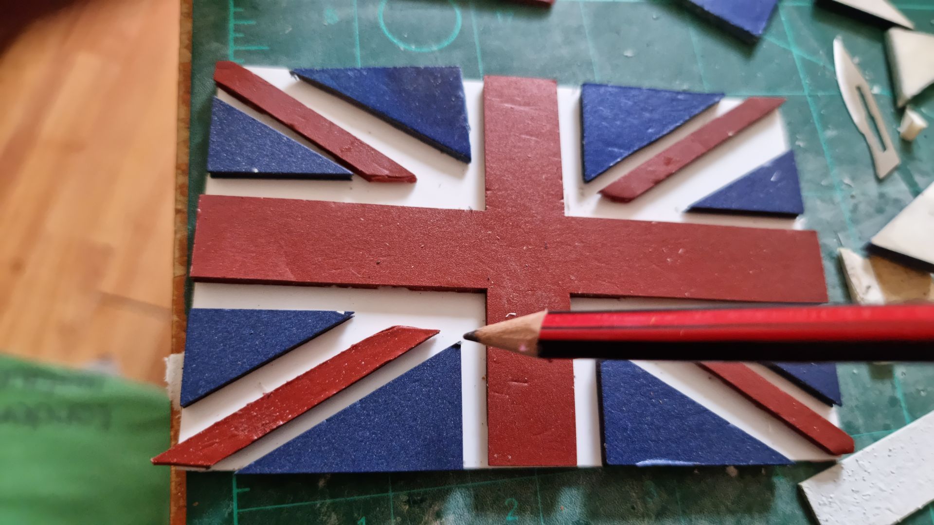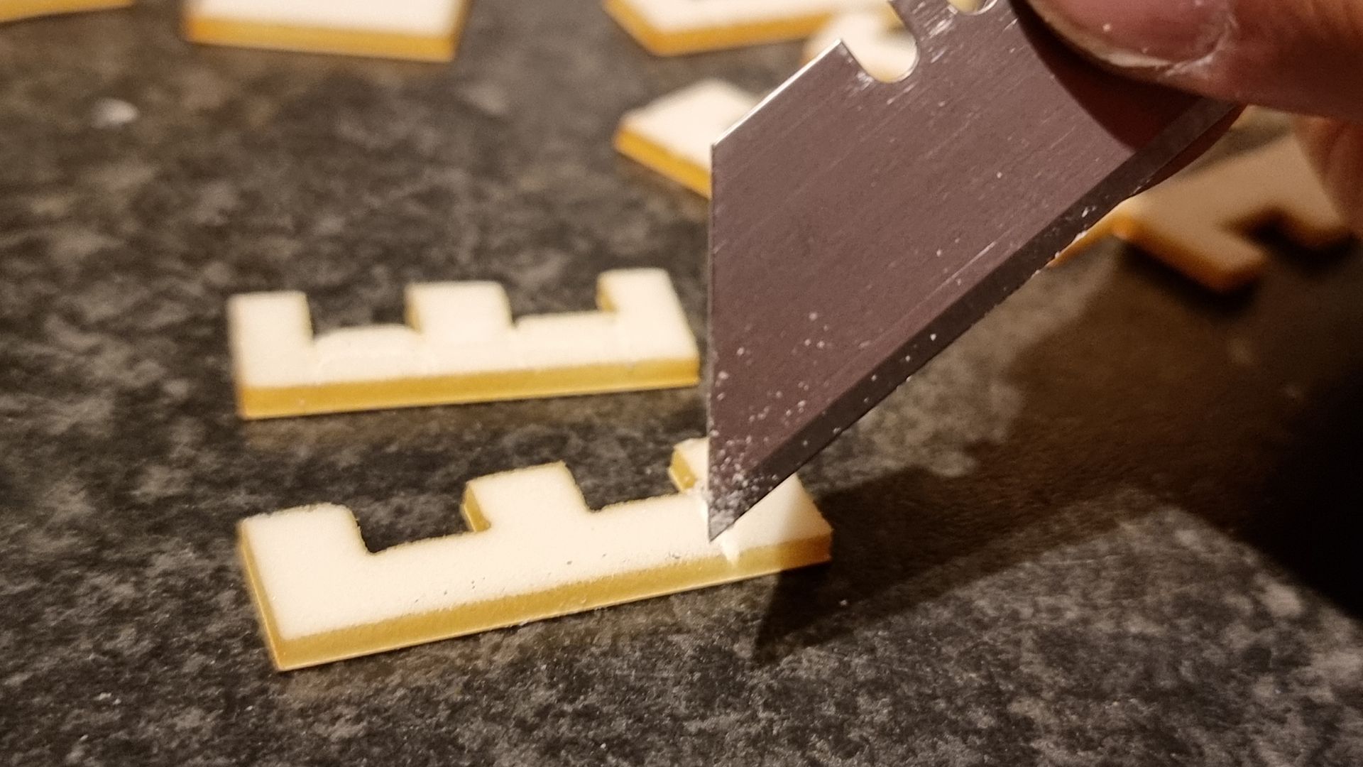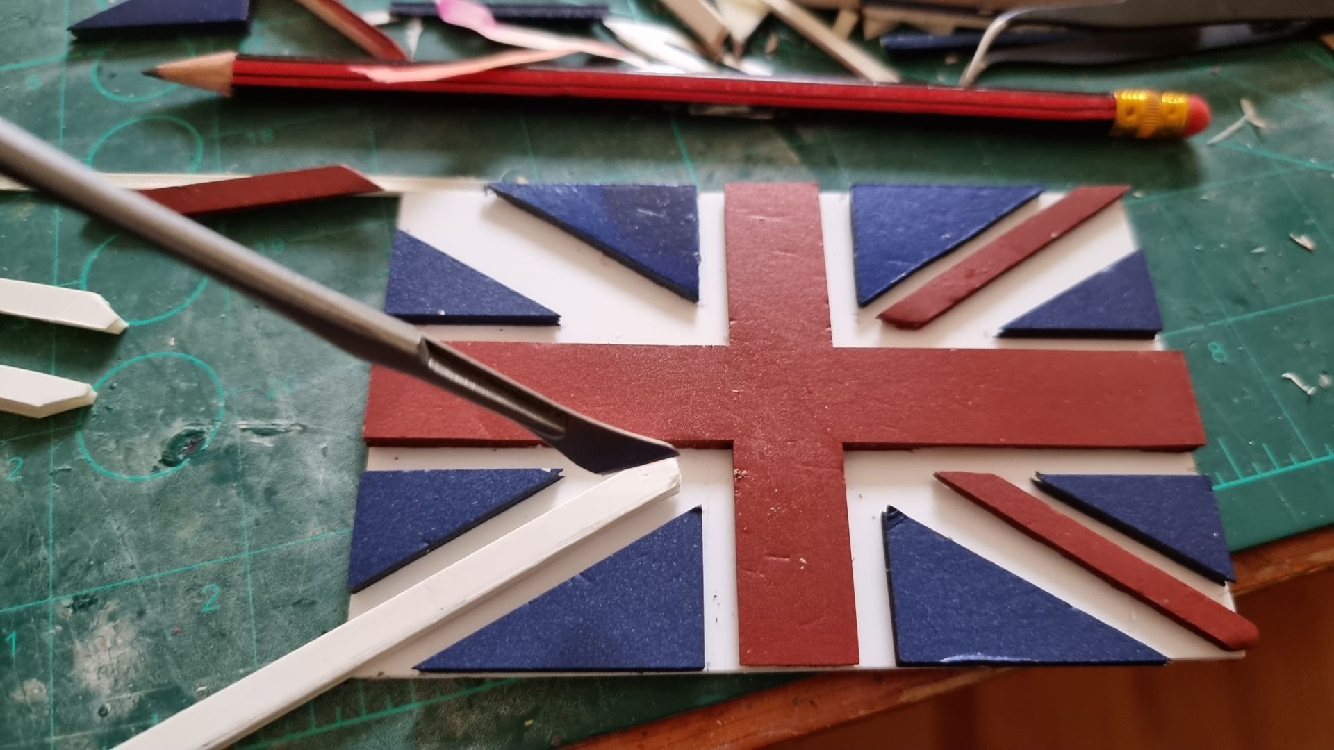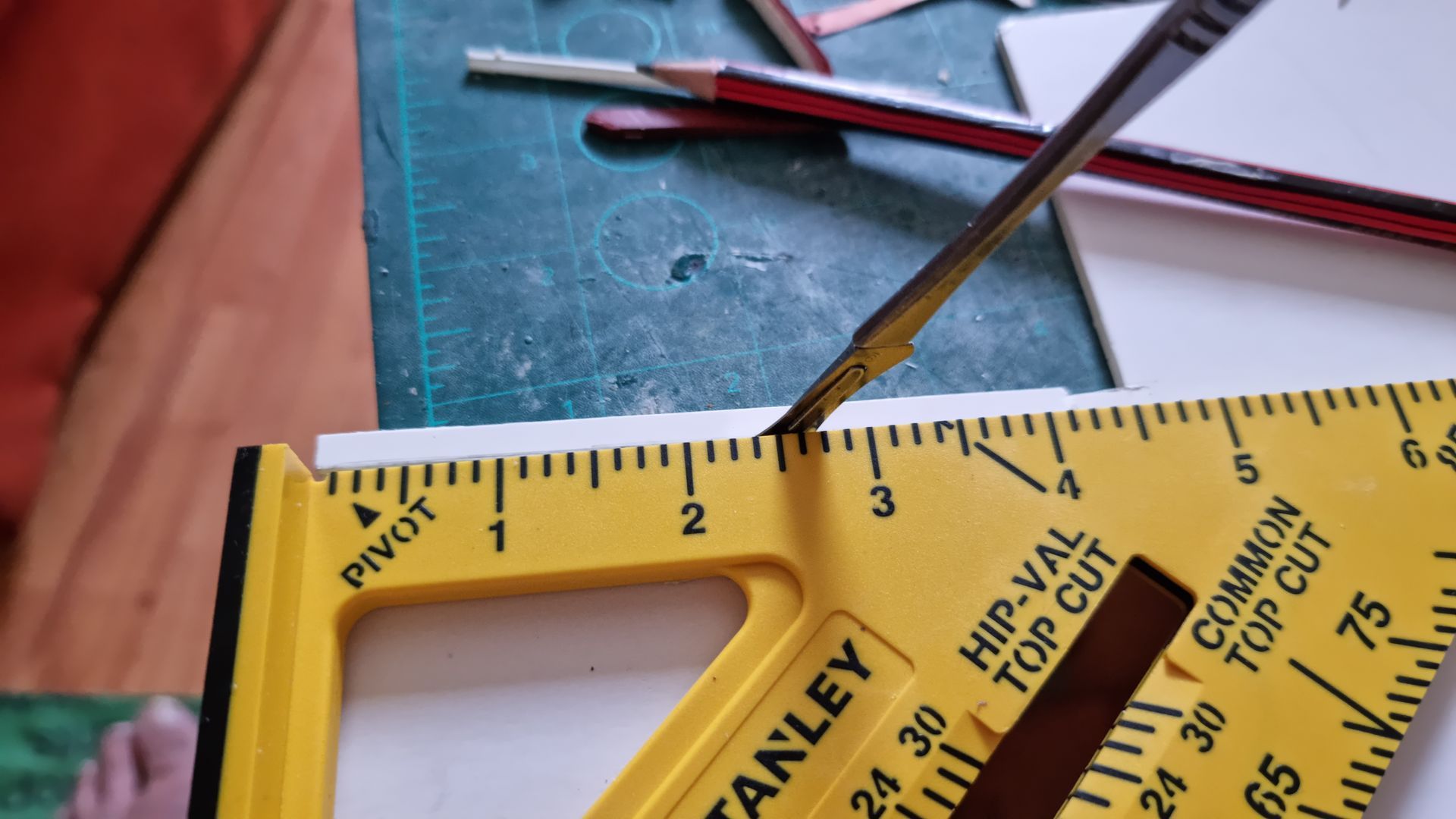 - These I decided to build in a laminated manner with white card or plastic at the back, the scale and name photo print out then the laser printed frame on top.