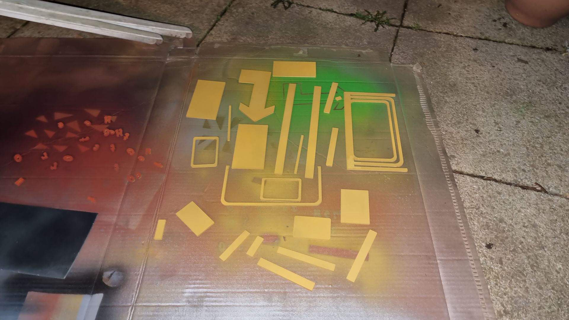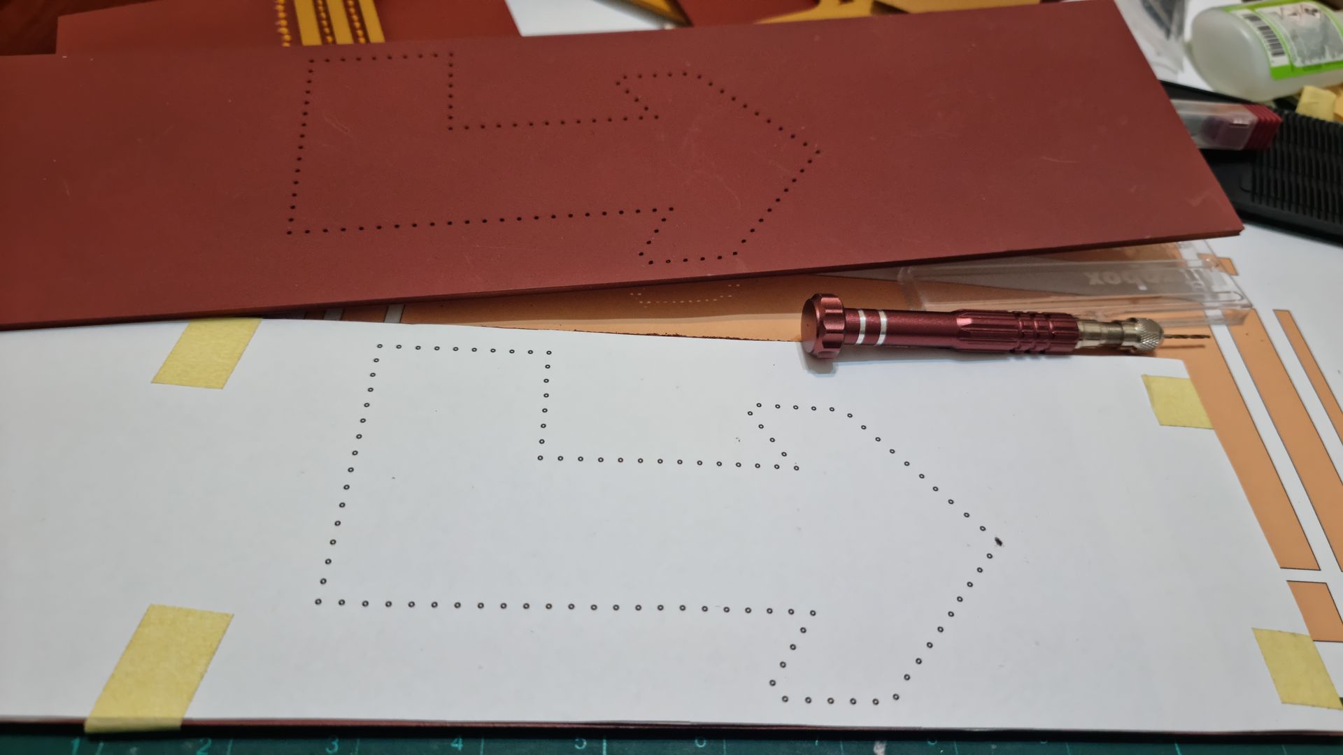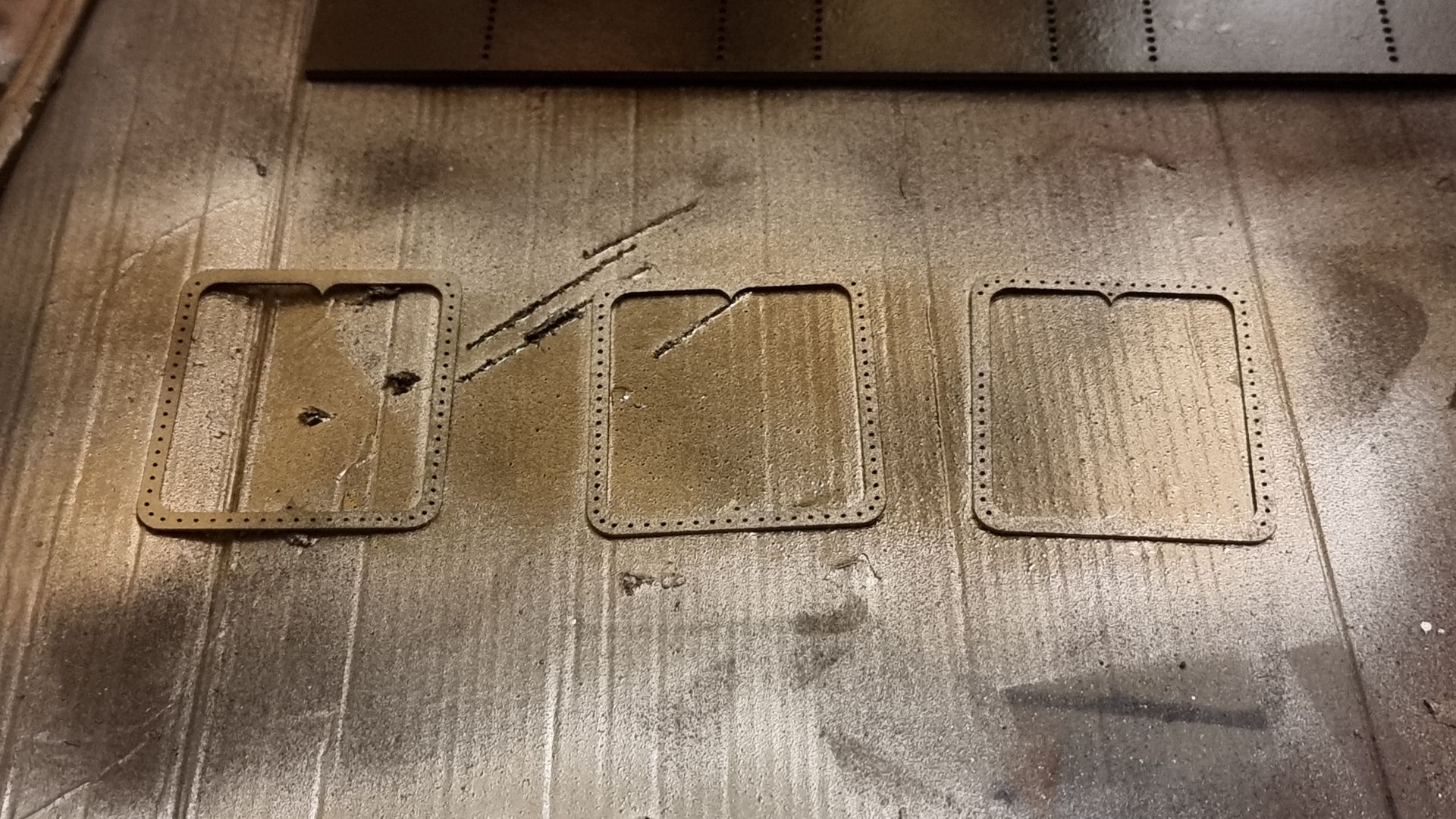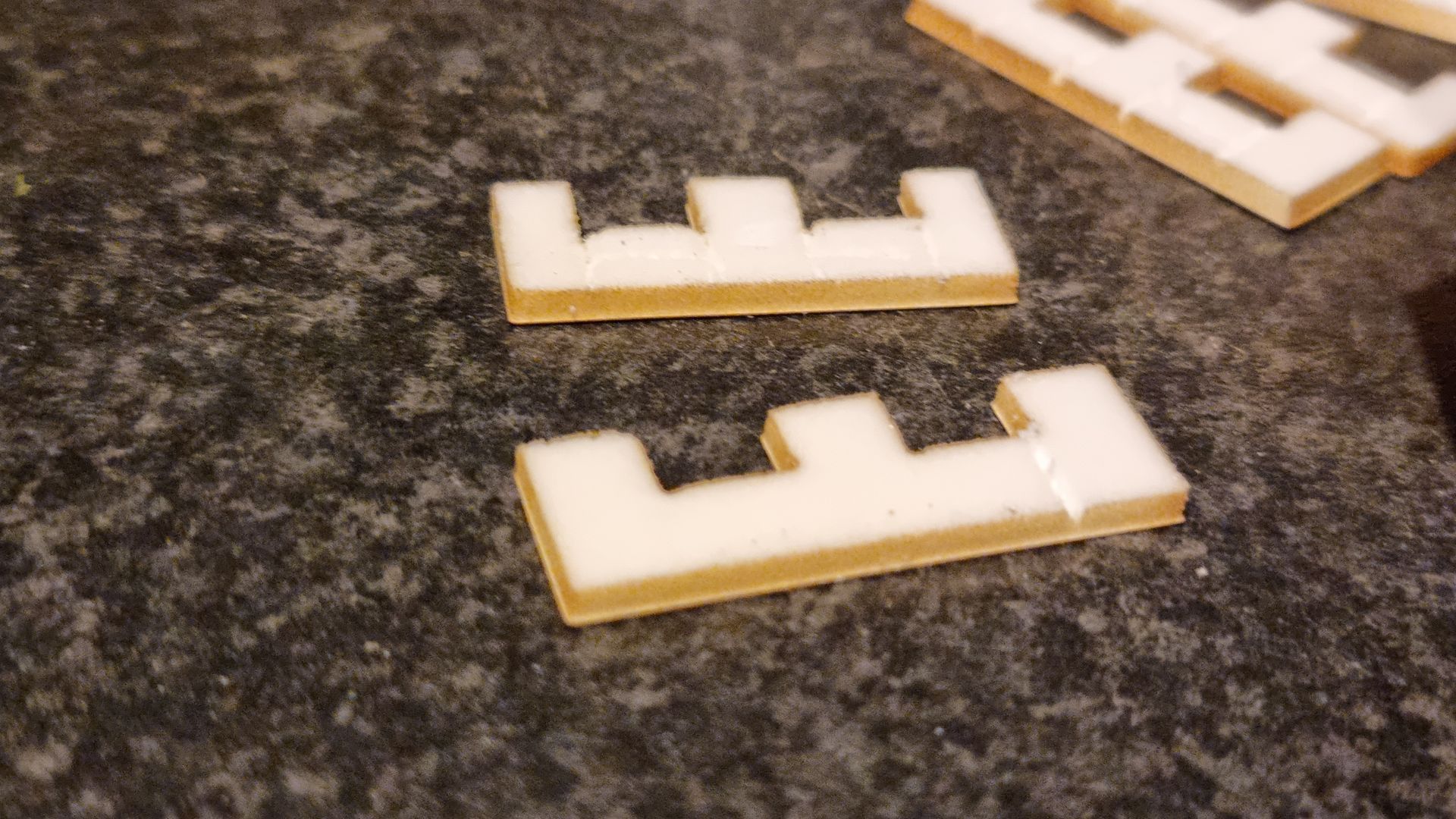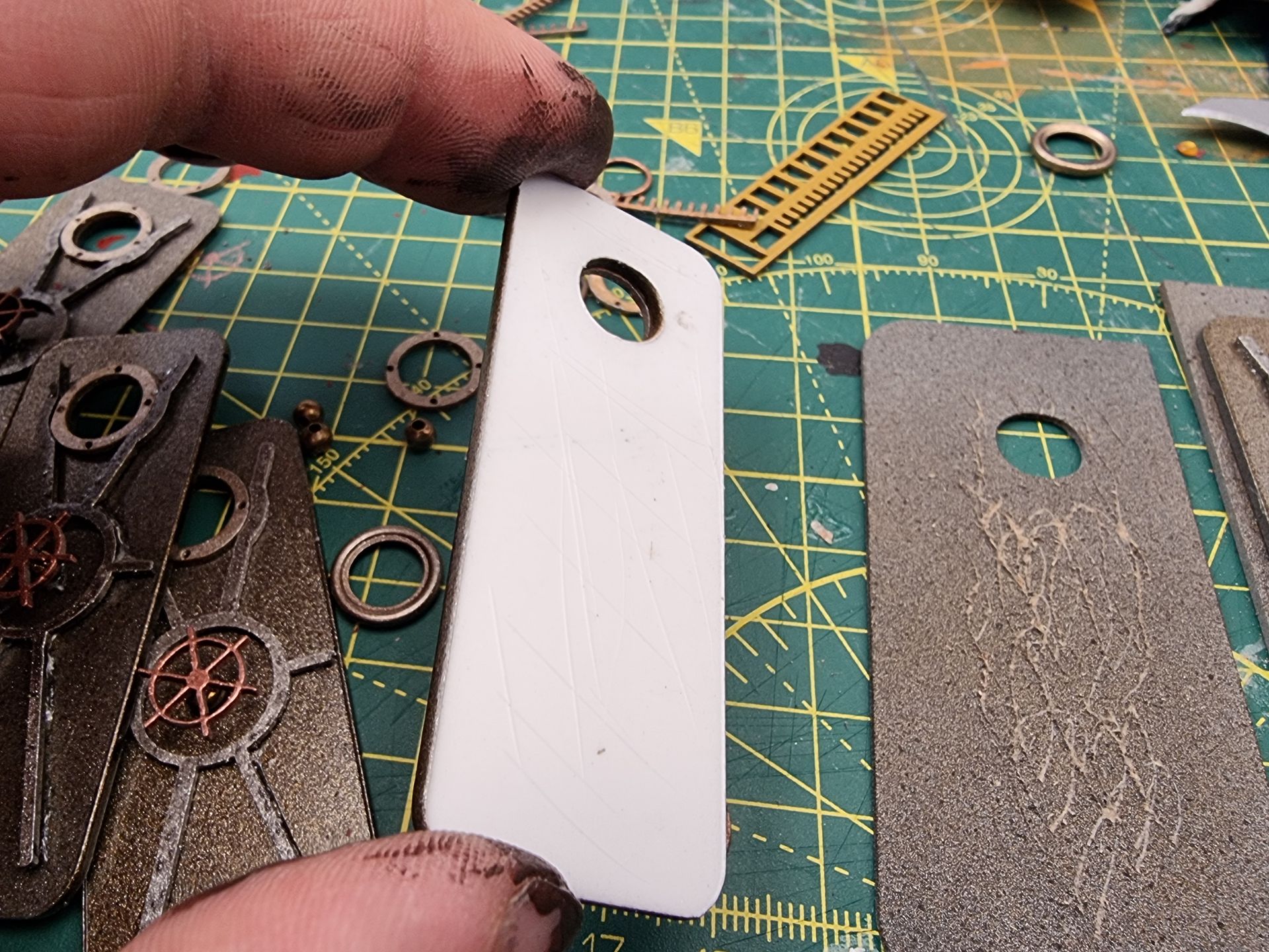 - These I decided to build in a laminated manner with white card or plastic at the back, the scale and name photo print out then the laser printed frame on top.