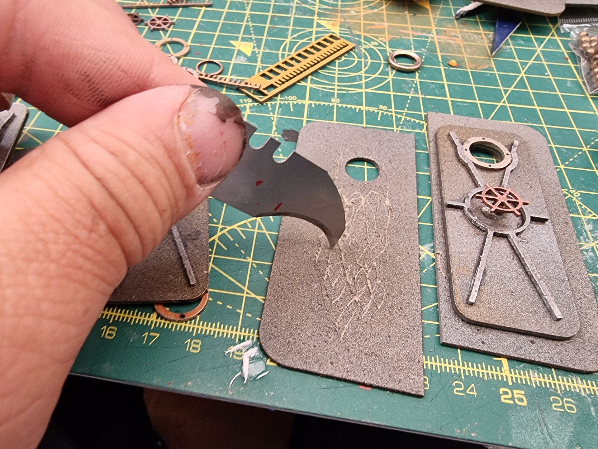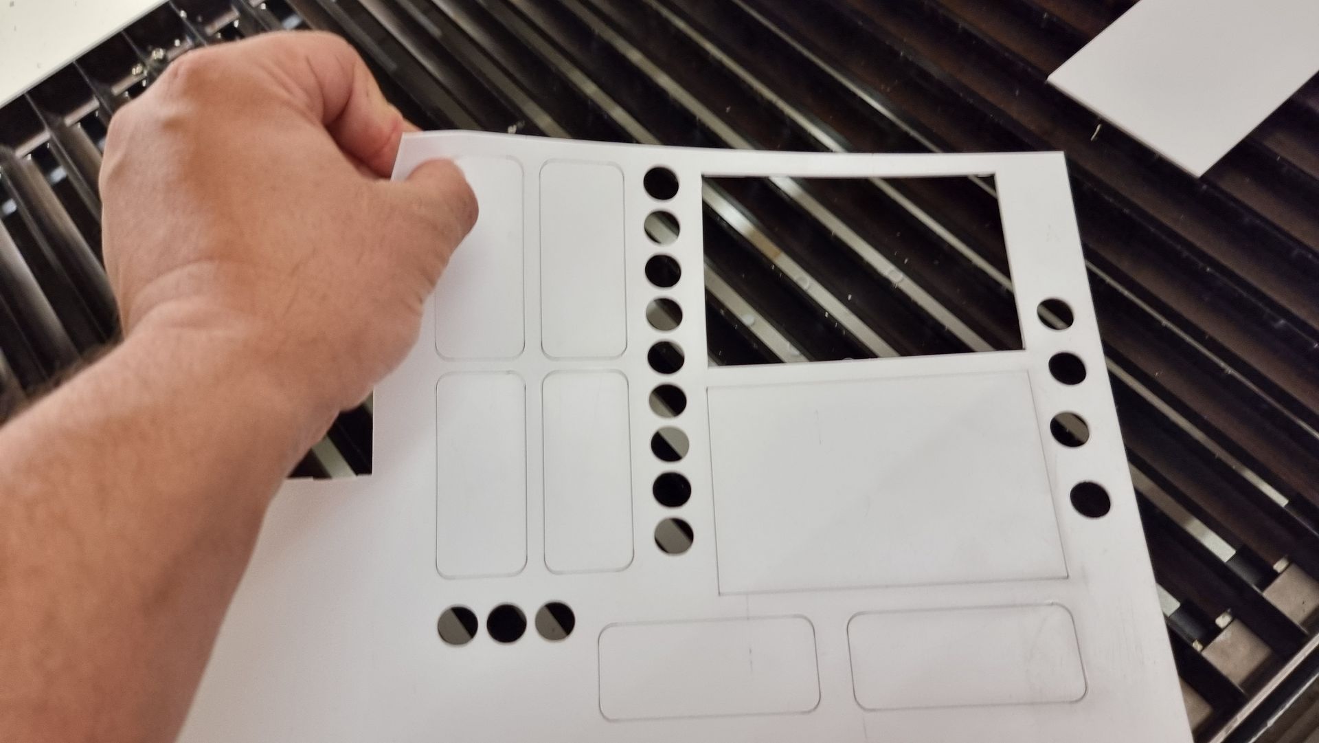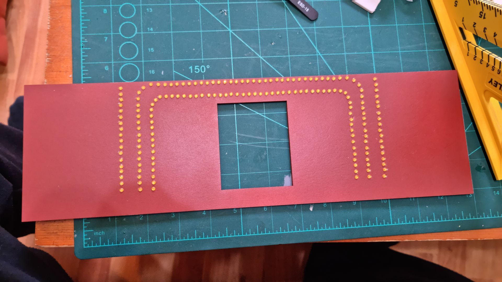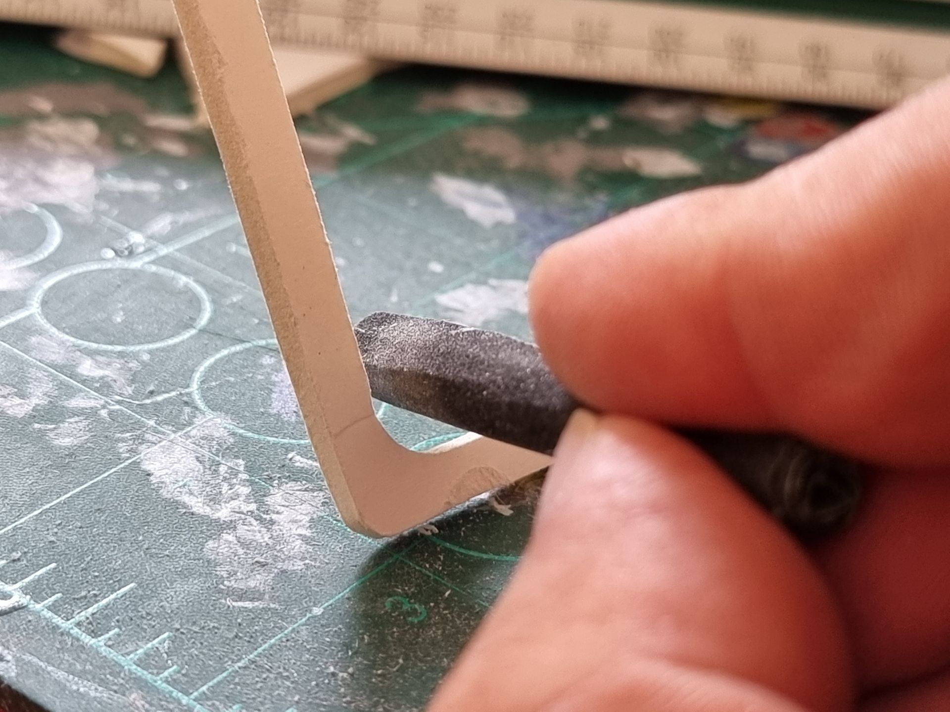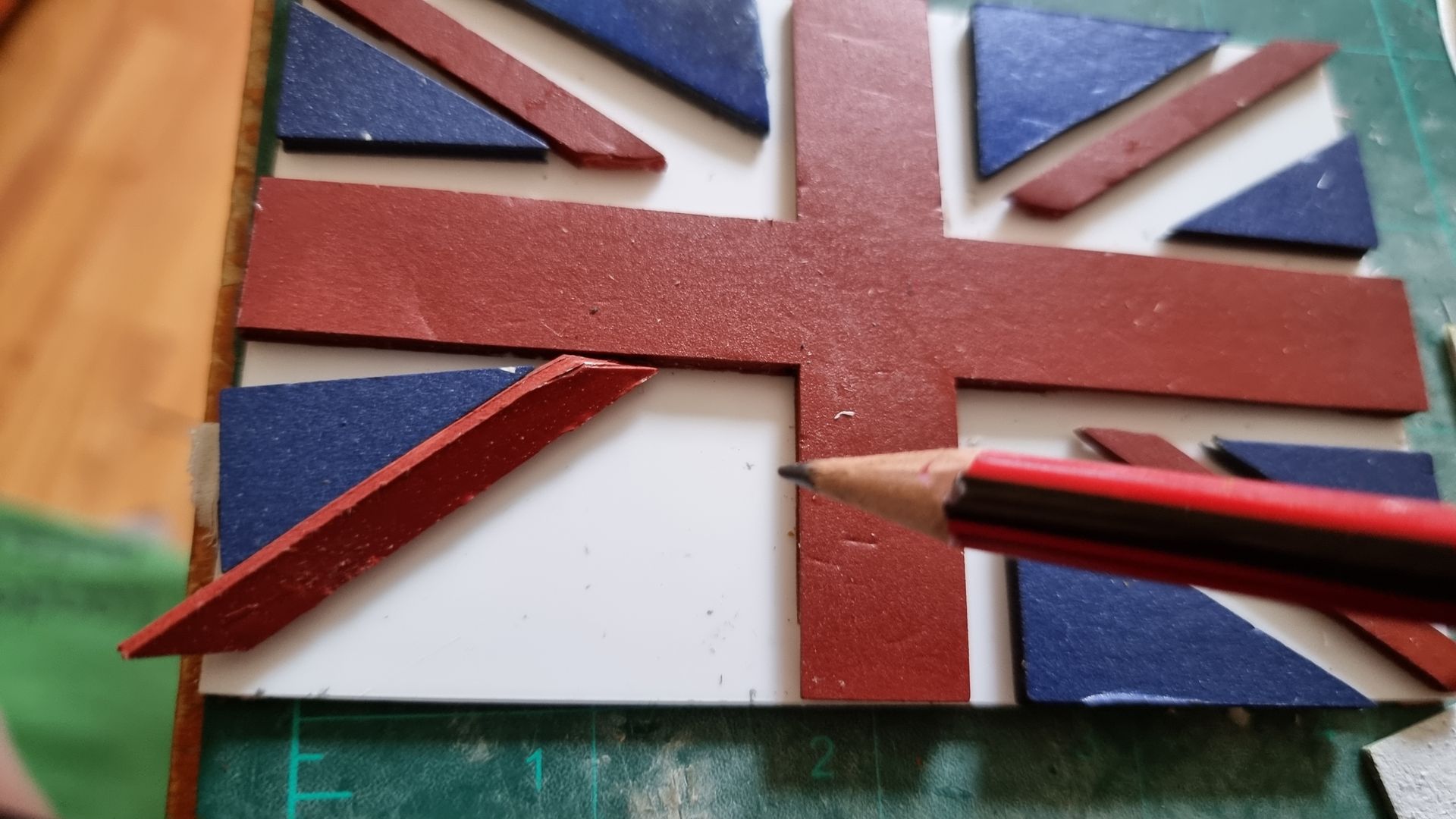 - These I decided to build in a laminated manner with white card or plastic at the back, the scale and name photo print out then the laser printed frame on top.