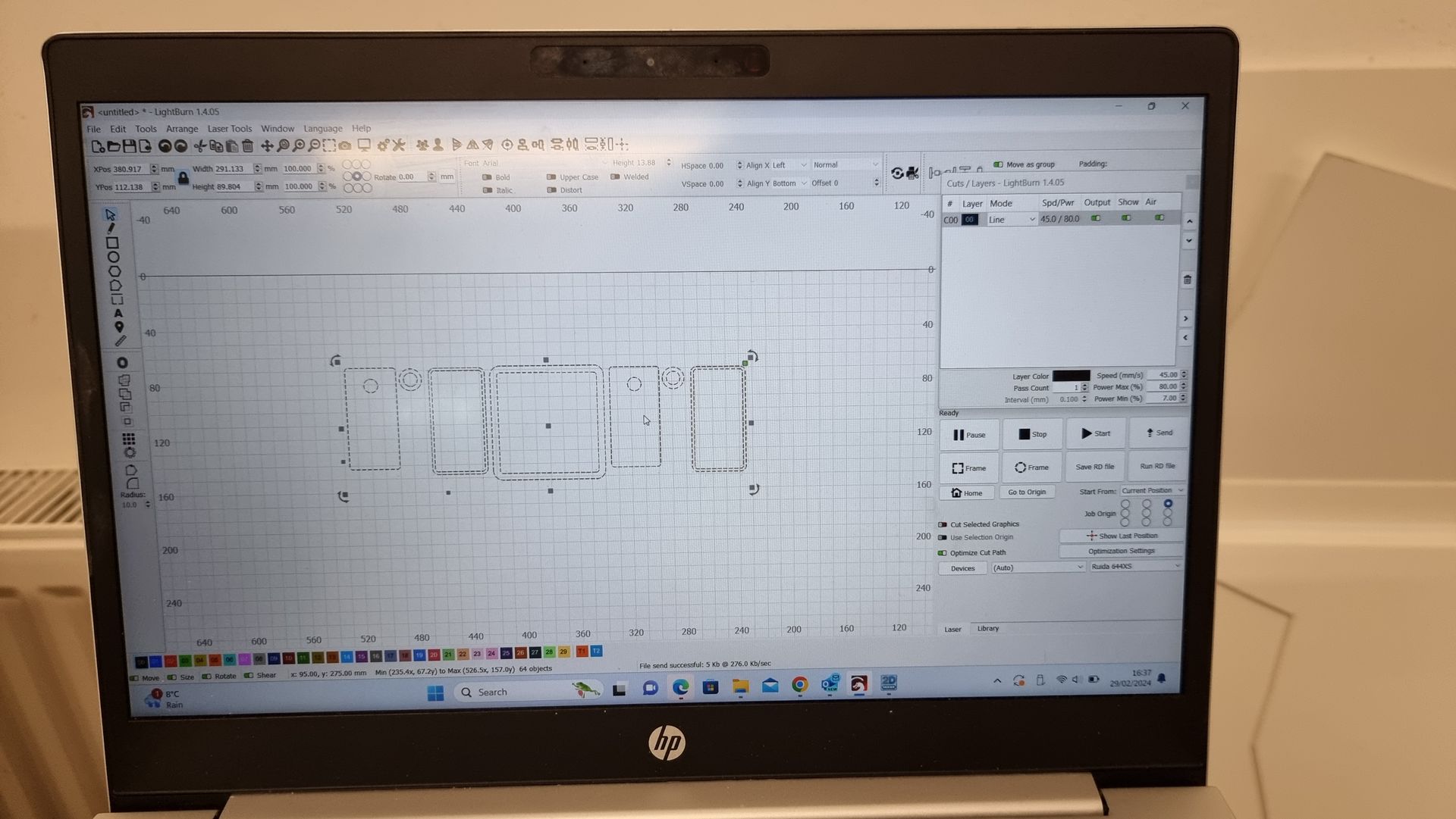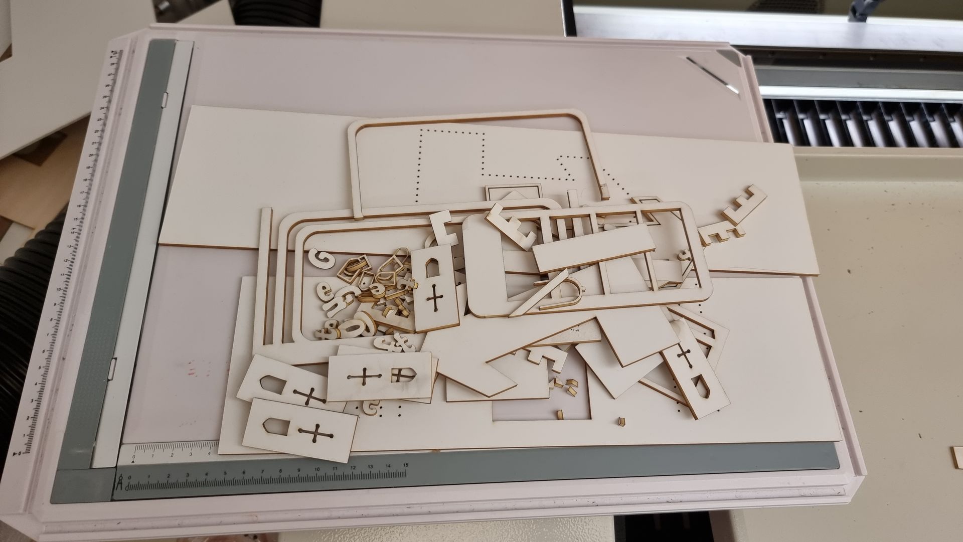 These flats are 120 x 240xm or 4 x 8 foot.The components were designed in Adobe Illustrator as laser cutters reply on vector art which is based on mathematical calculation making line art which will provide a path for the laser to follow.