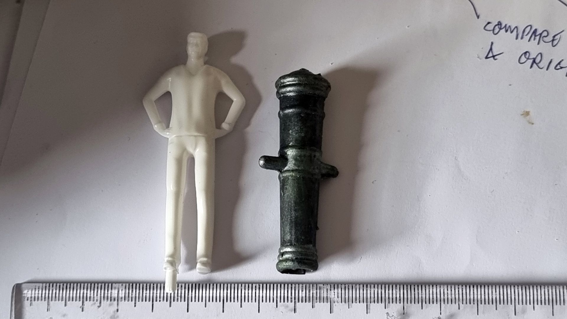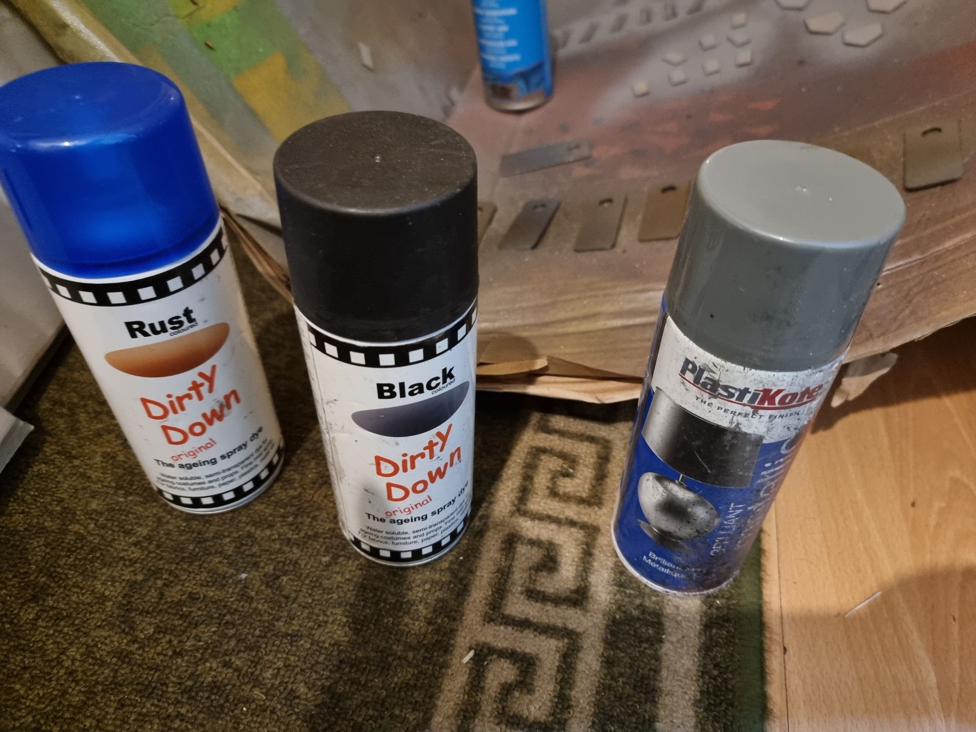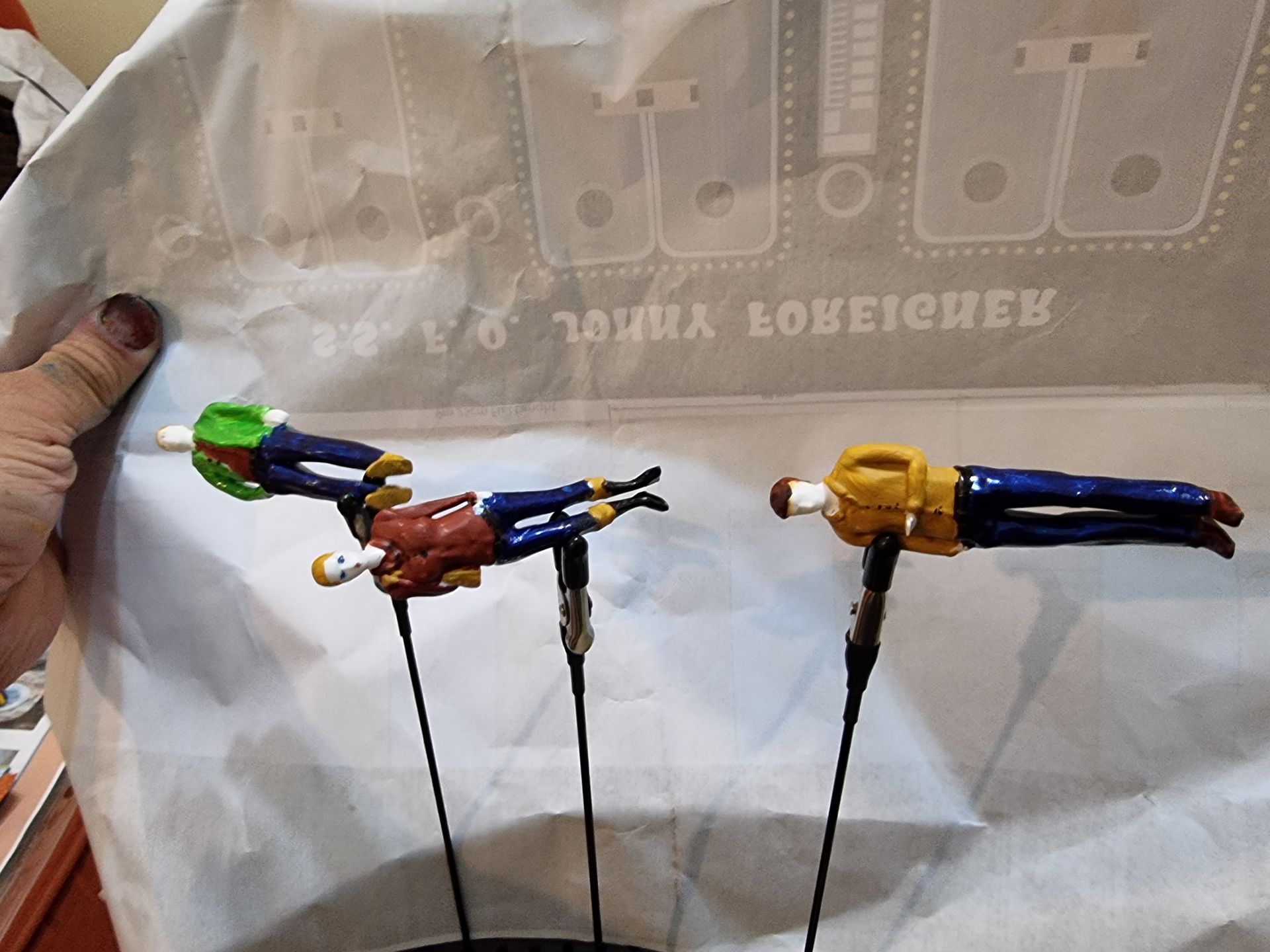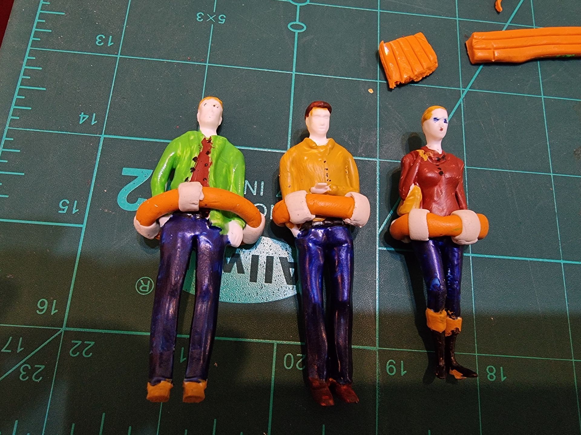 I purchased 1:25 scale figures. I painted these using the same spray paint into lid to make paint pots. This provided a strong but thin paint.