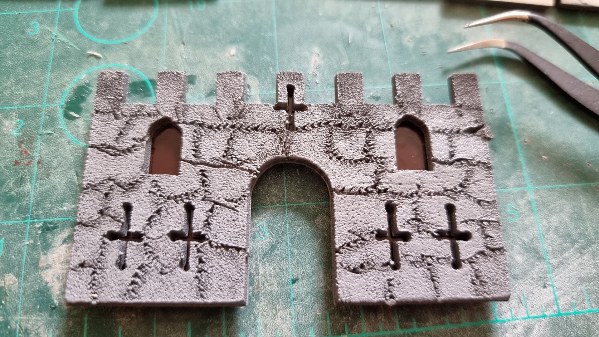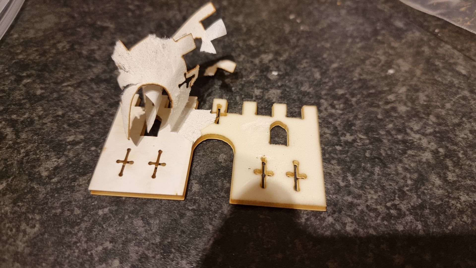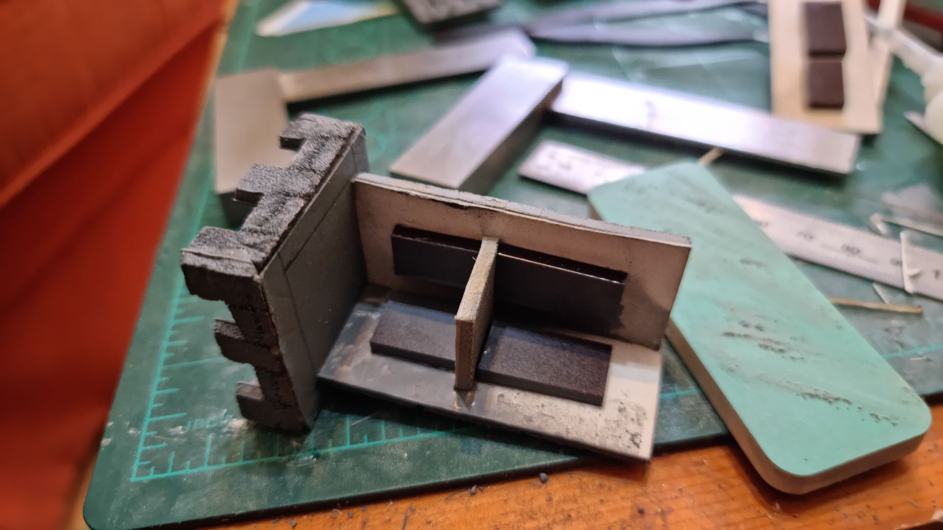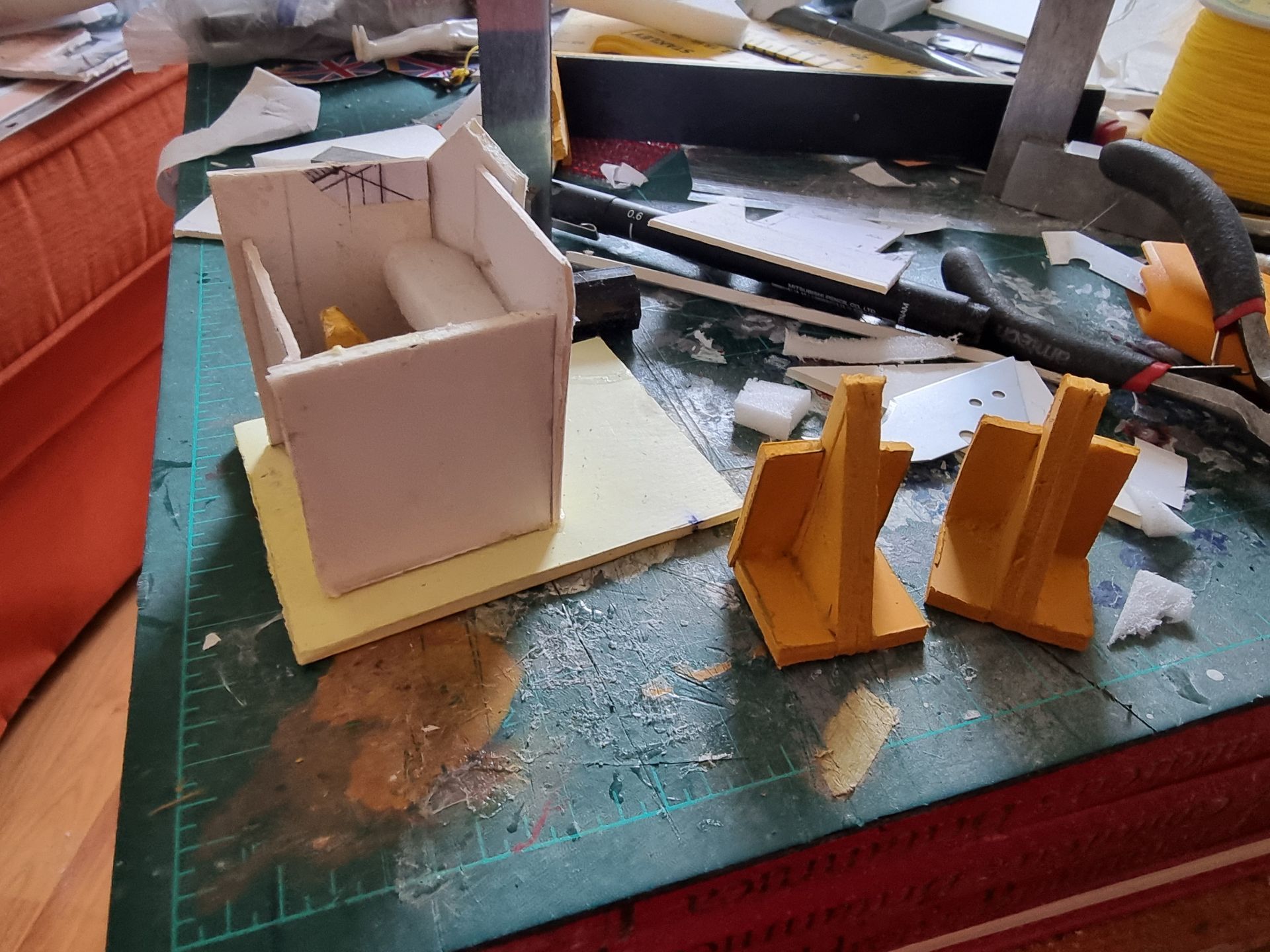 The studio model was created much the same as other white card models only I made the mistake of doing the walls first then trying to stick them to the base. This was partly due to being in a hurry.