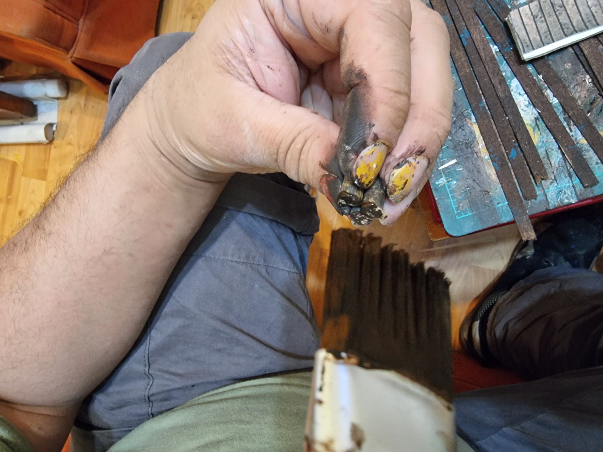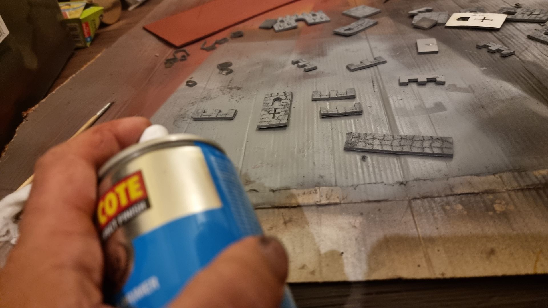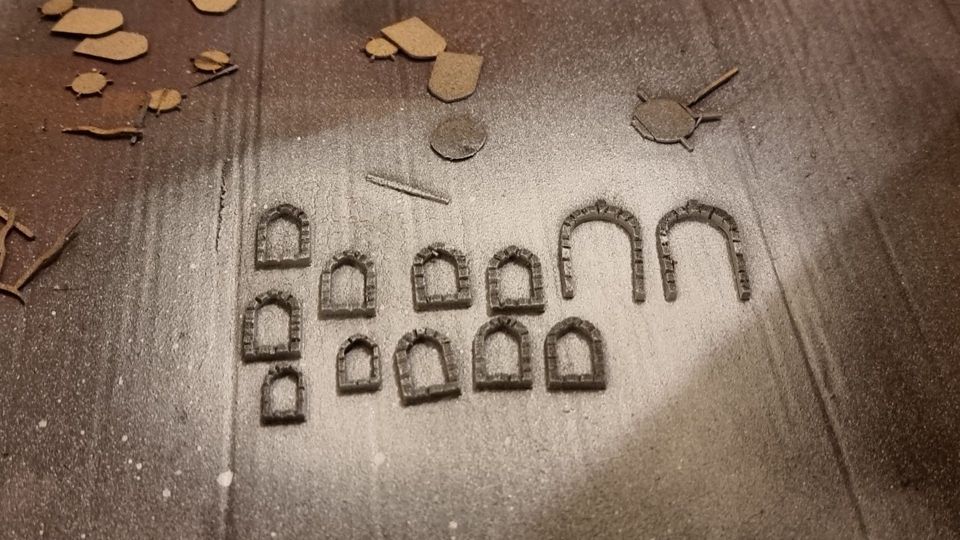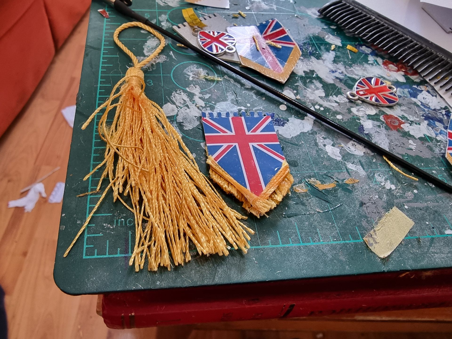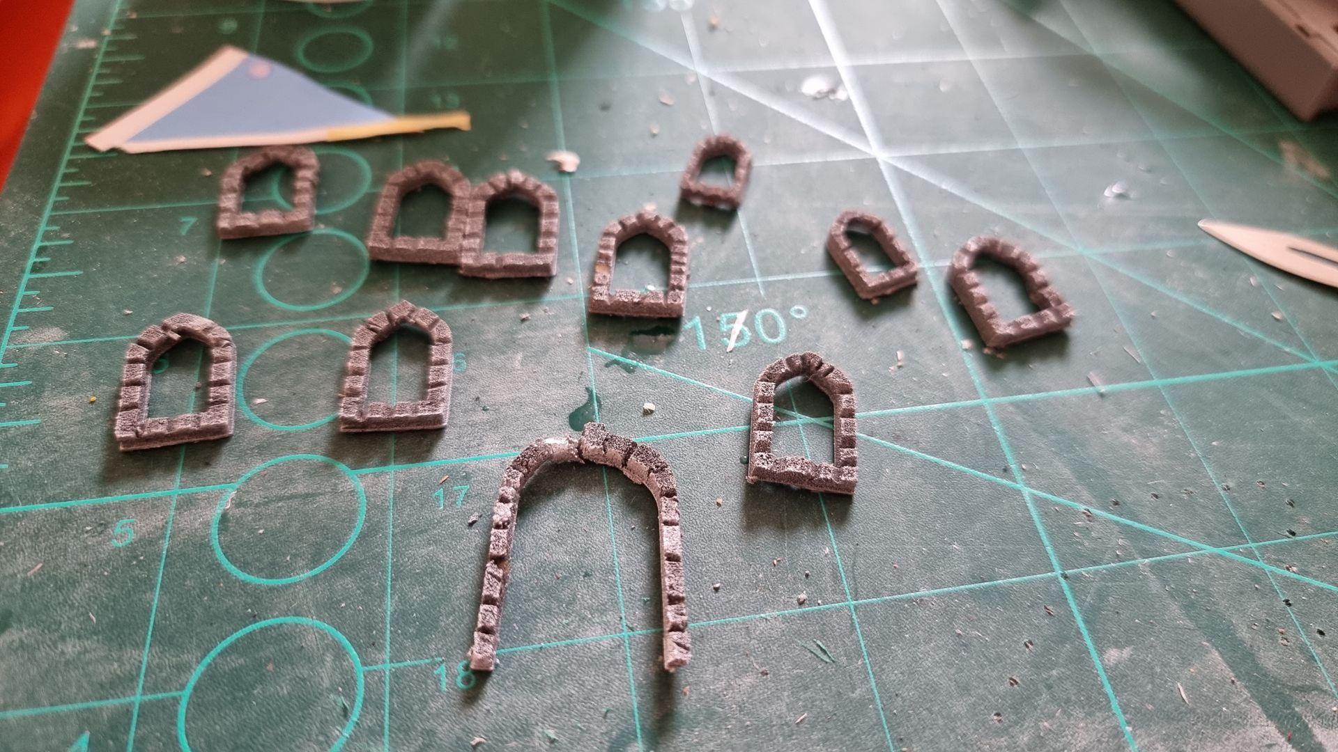 I used my silicon mould from my CMS 2017 Miniature Model Making course in 2017 to making box crates to build the podiums and paint them like the strip planks. First dab painted to get into all cracks, nooks and crannied then dry brushing burnt umber and mocha brown paint over the planks that form the box crates to give a wood appearance.