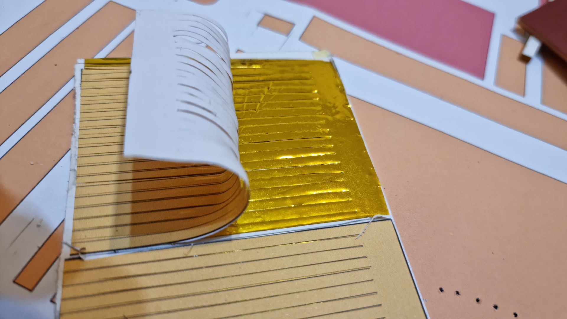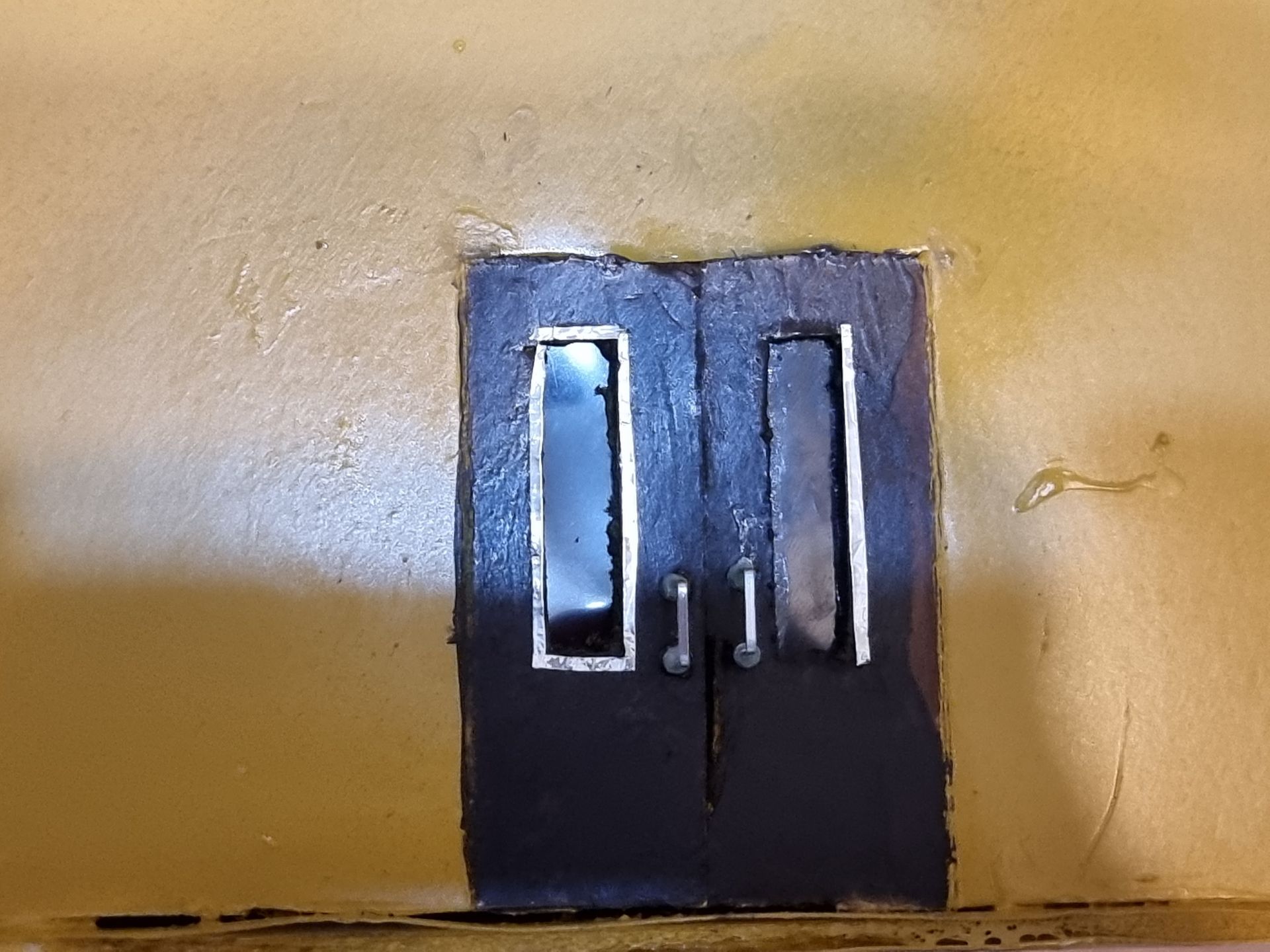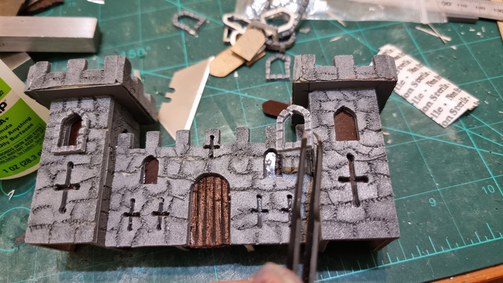 Thin strips of sticky foil were used to mimic the window frame trim on the doors.