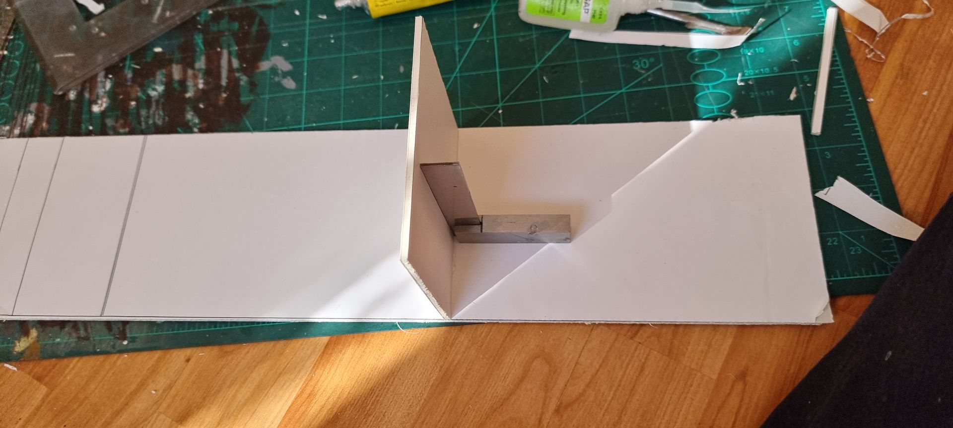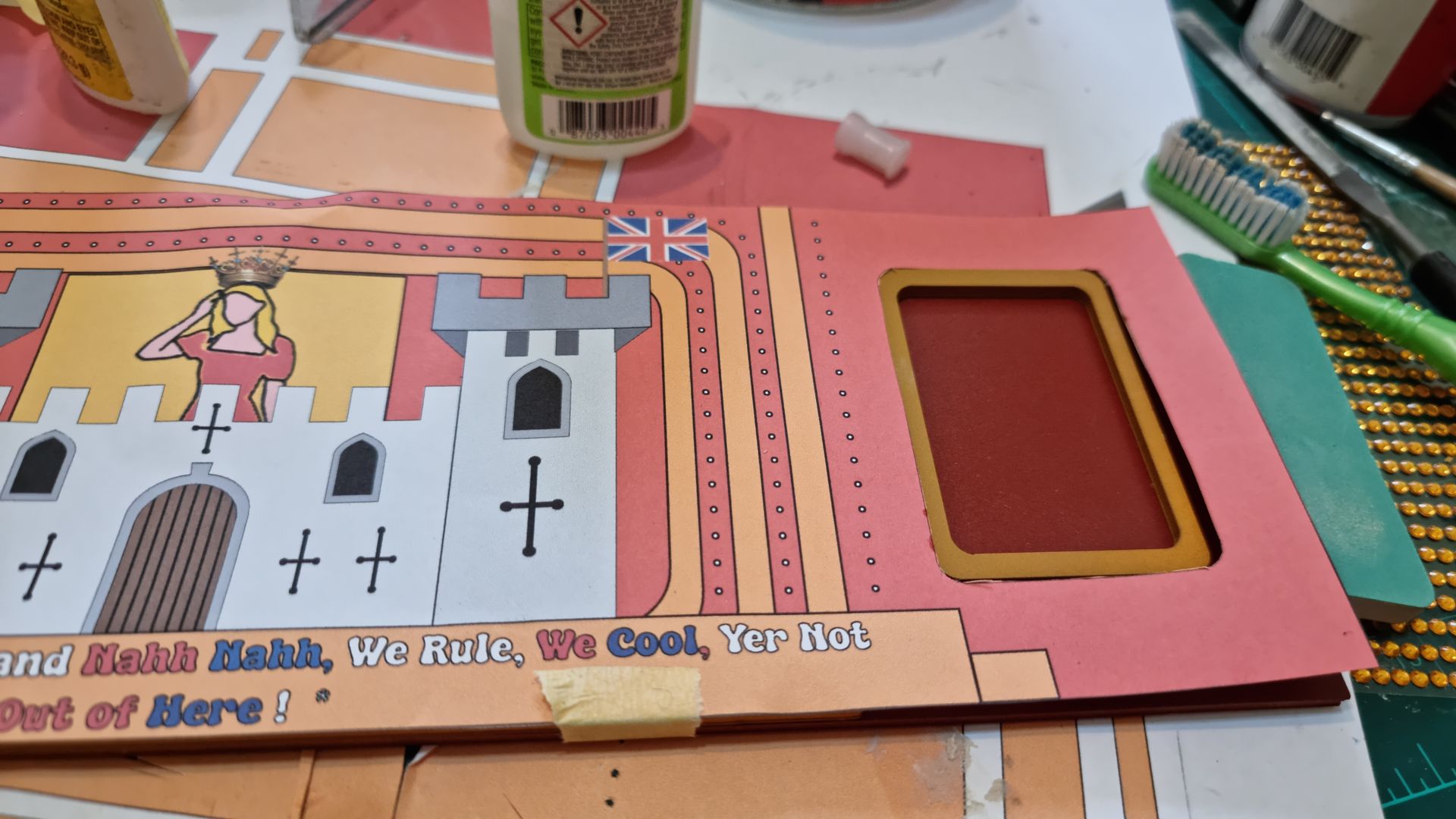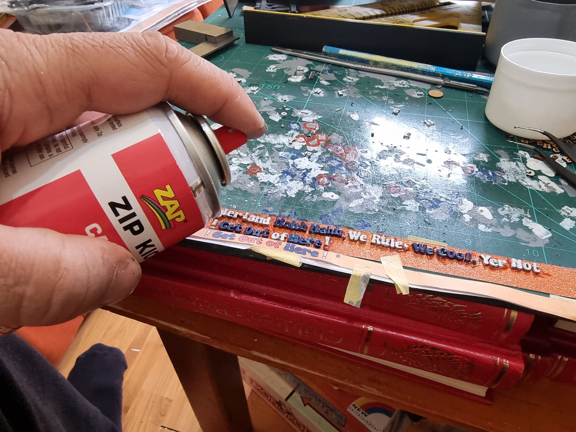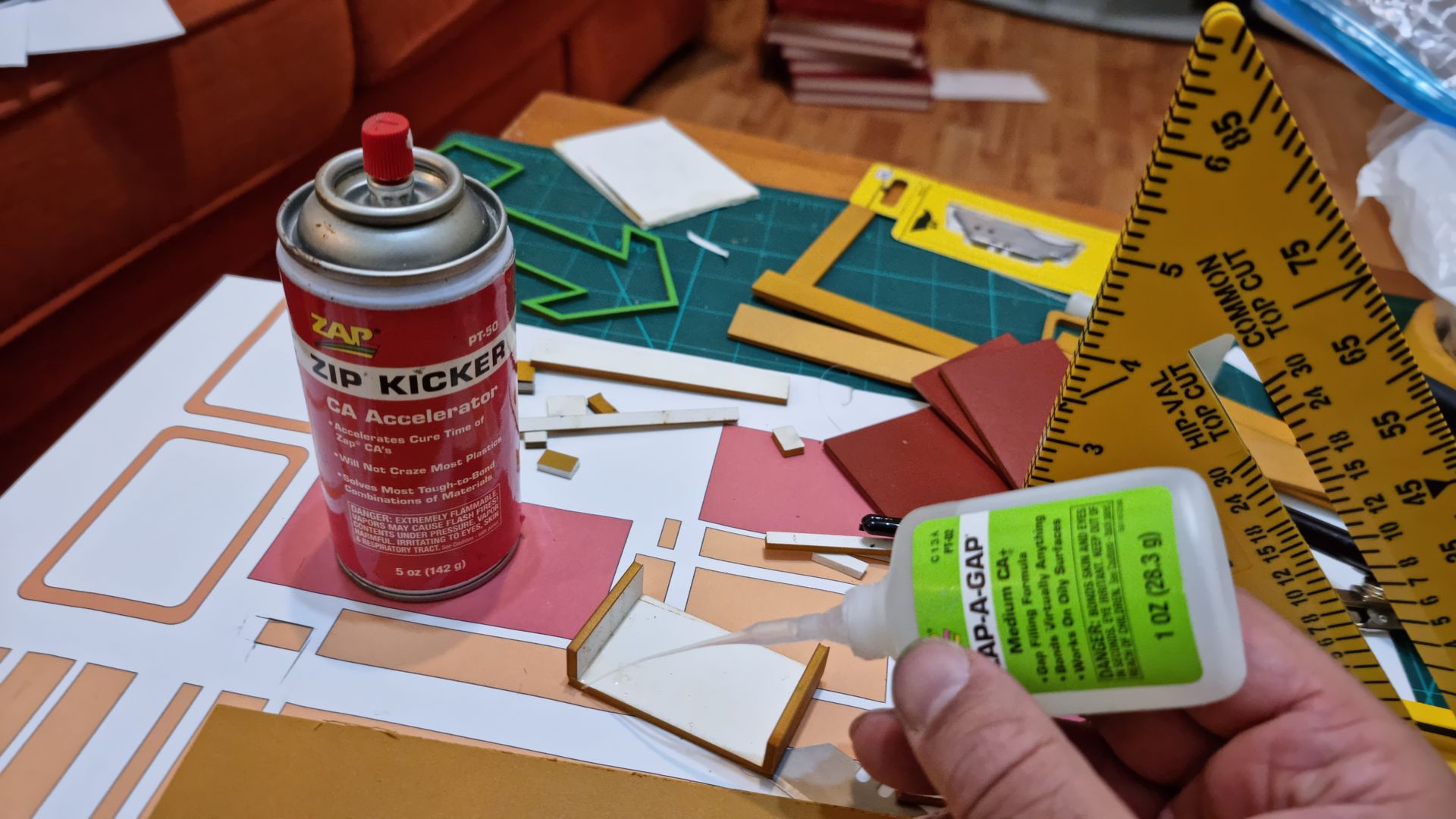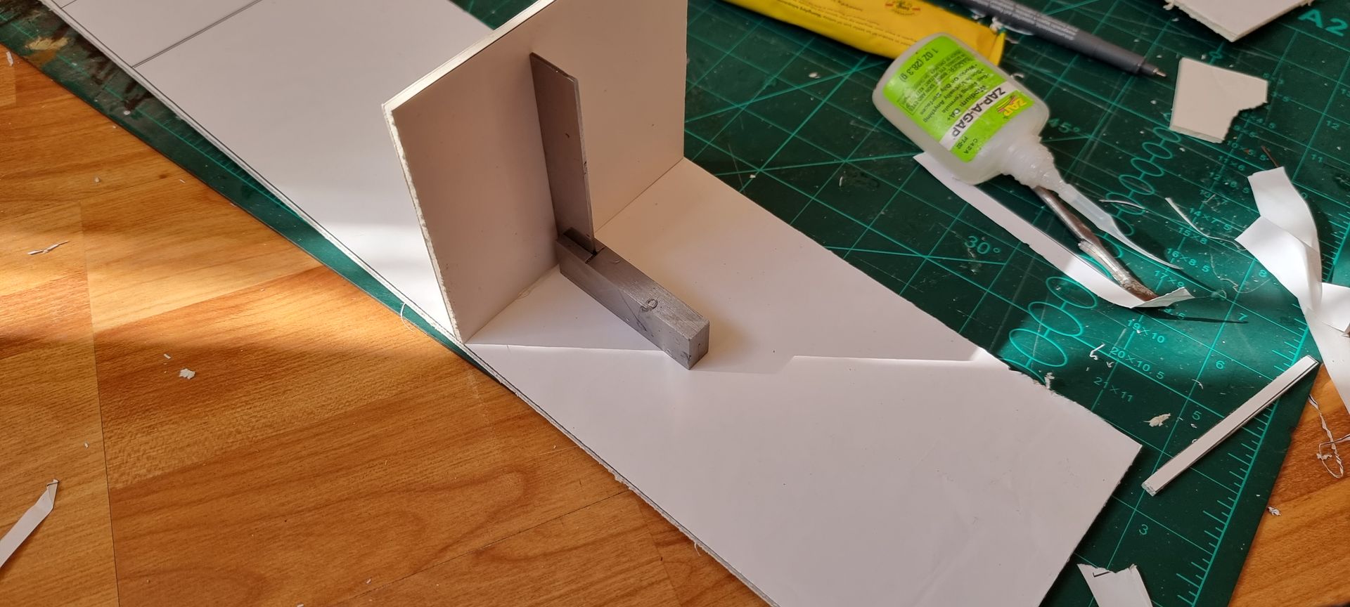 These were then photo spray mounted to the flam board which was stuck together by combining superglue and UHU glue , using the superglue as the holding mechanism and engineering squared used to make sure the walls were perpendicular and vertical