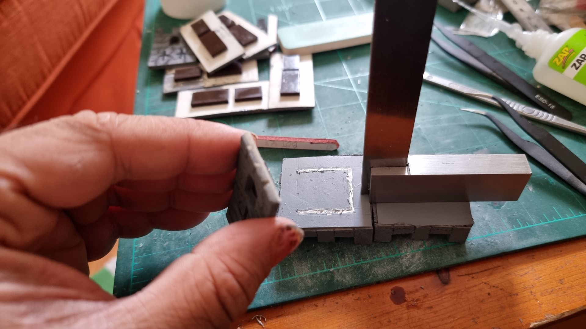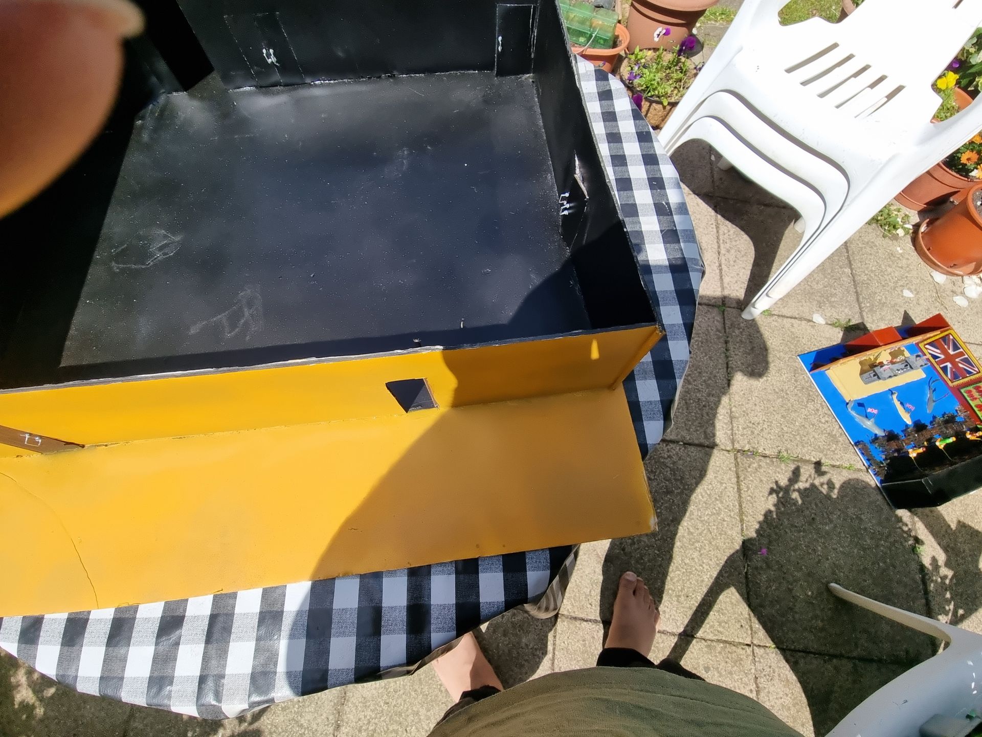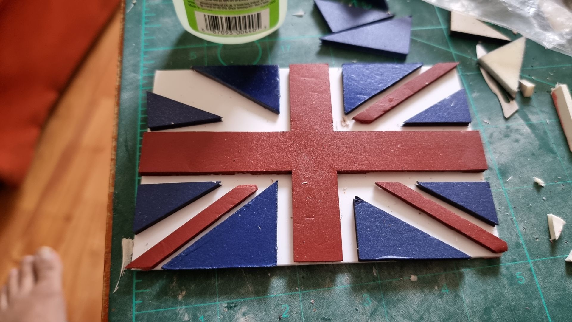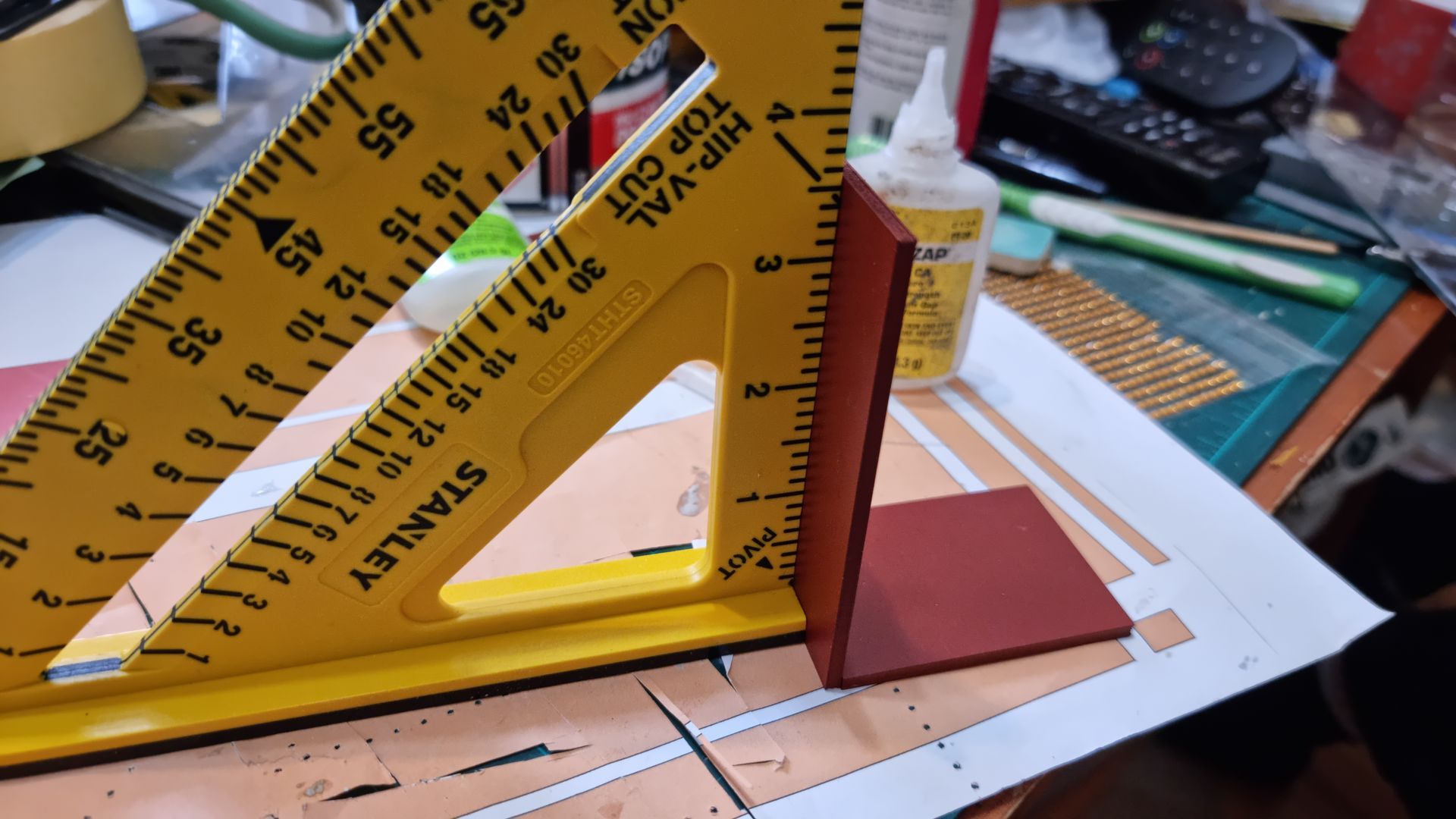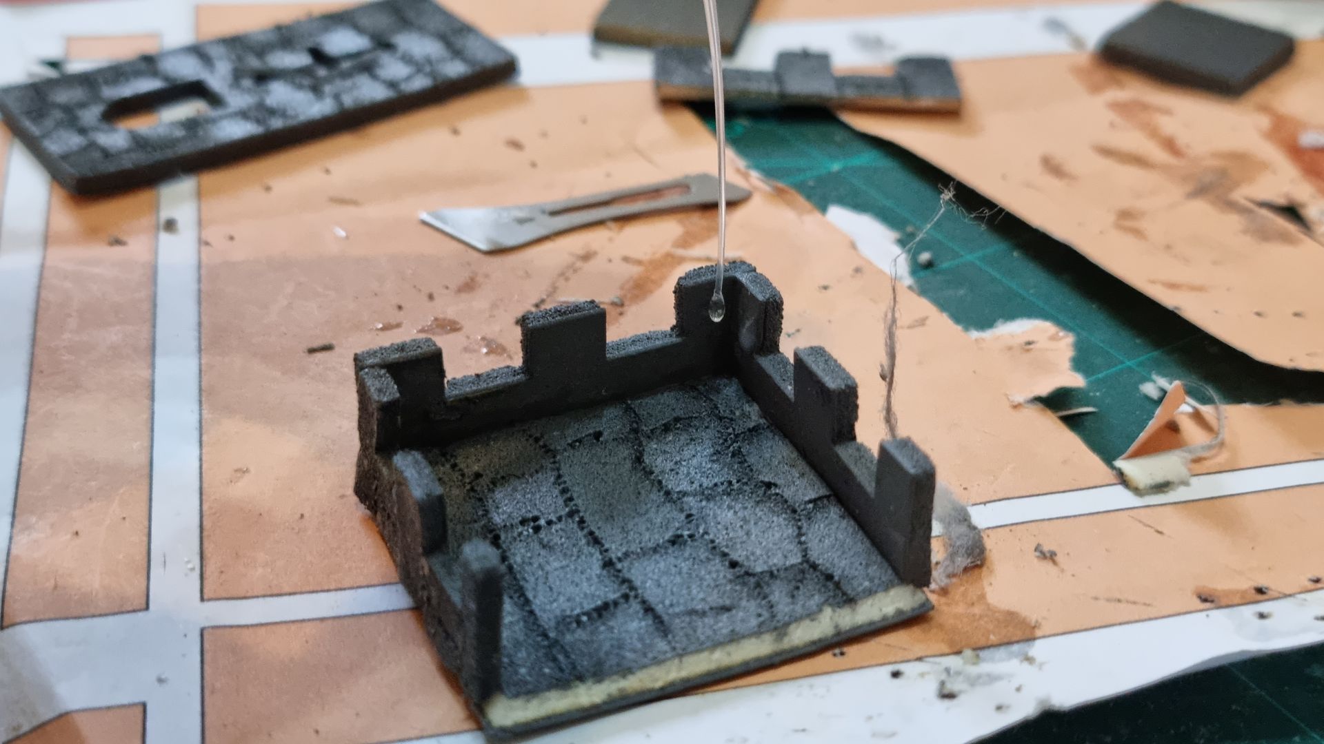 These were then photo spray mounted to the flam board which was stuck together by combining superglue and UHU glue , using the superglue as the holding mechanism and engineering squared used to make sure the walls were perpendicular and vertical