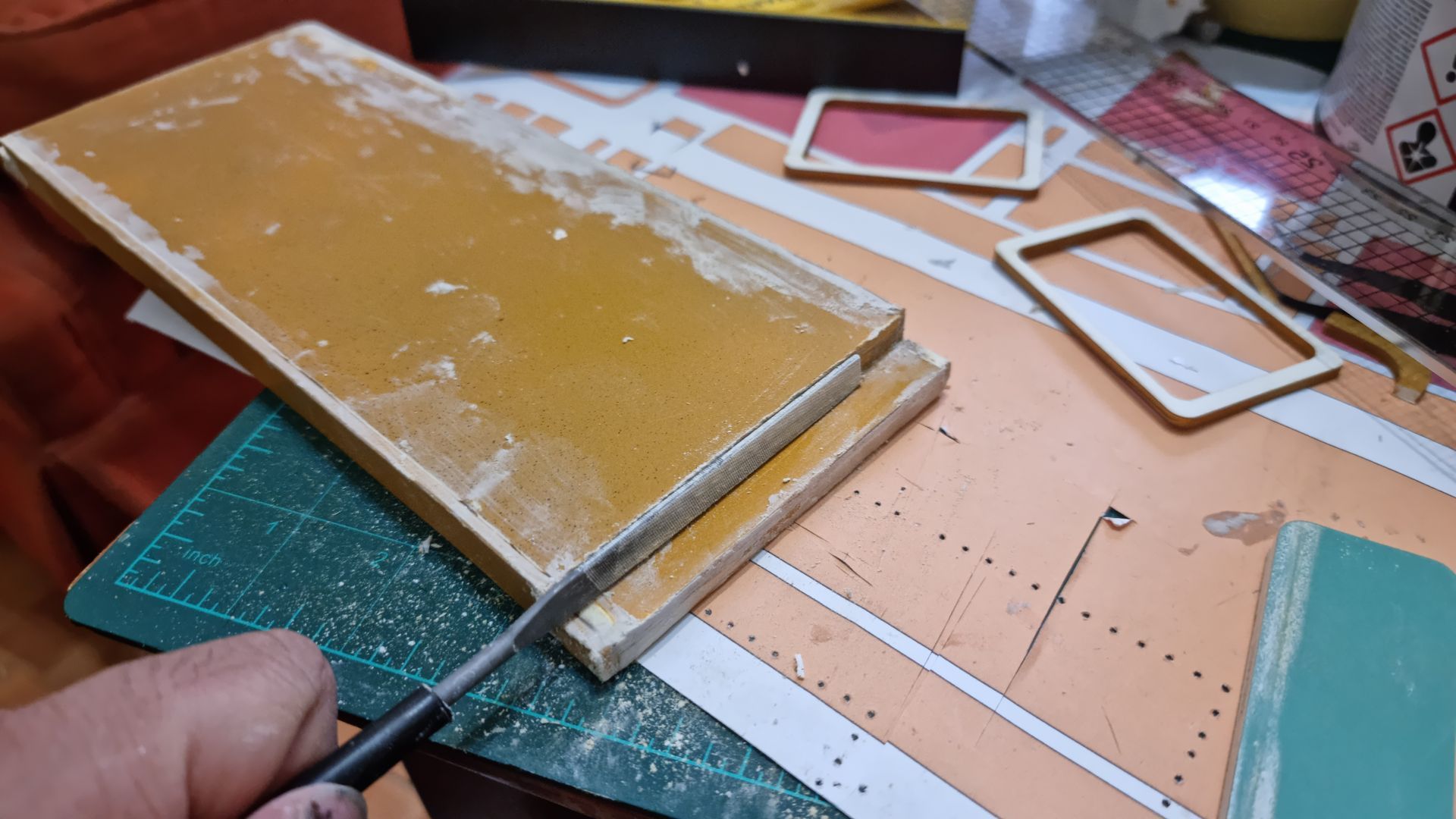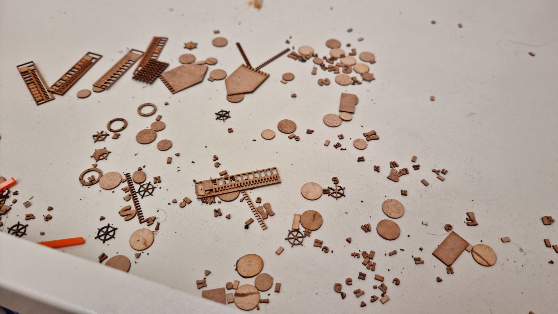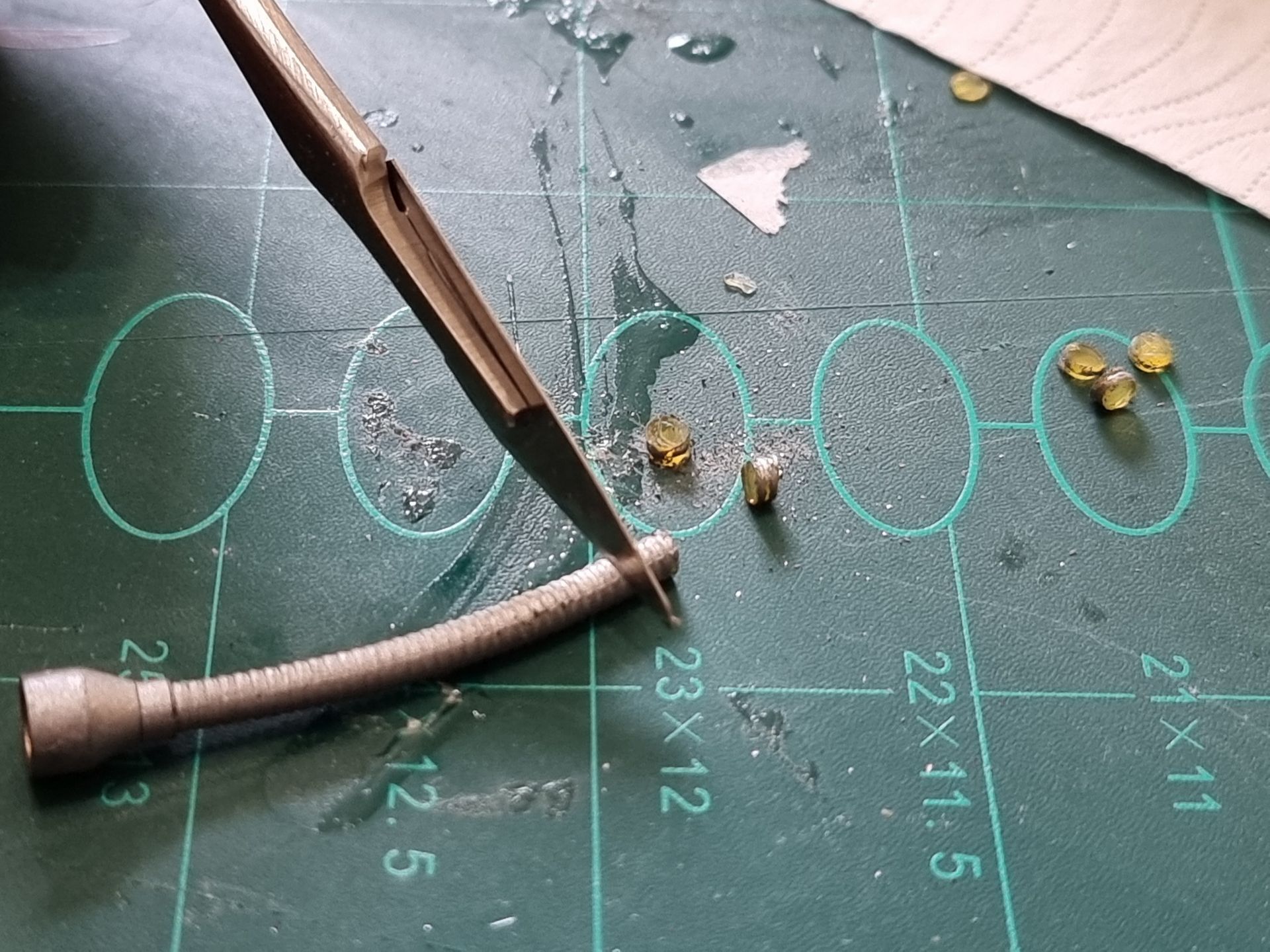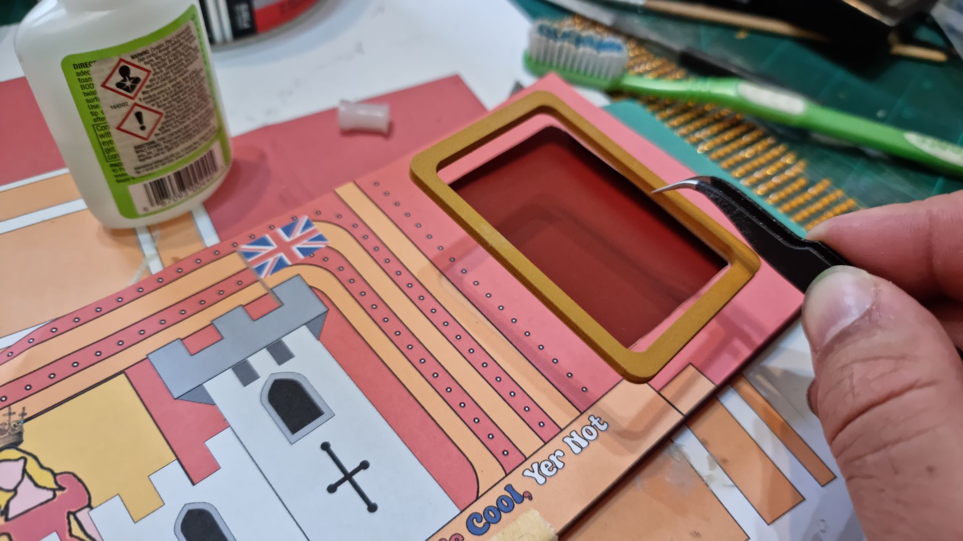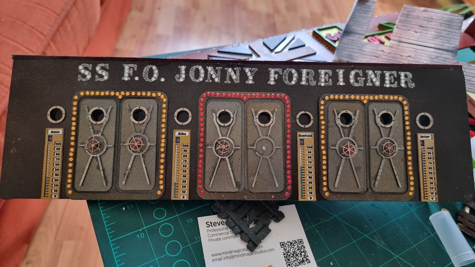 Laser cut dark acrylic disc were added to inside of the portholes. The inside of the shop box had lots of A Frame glued into place using a mix of accelerated superglue and rapid epoxy glue.