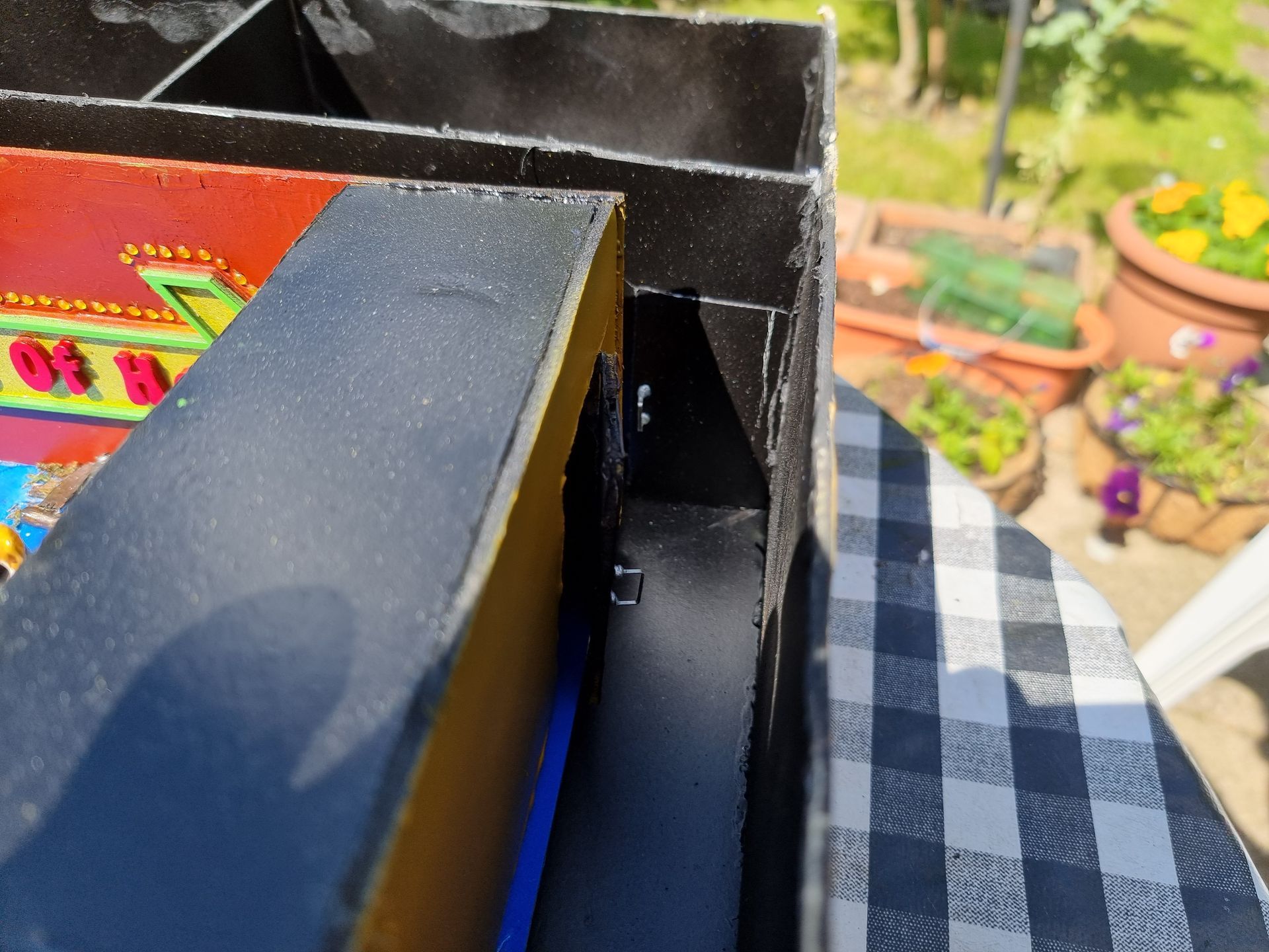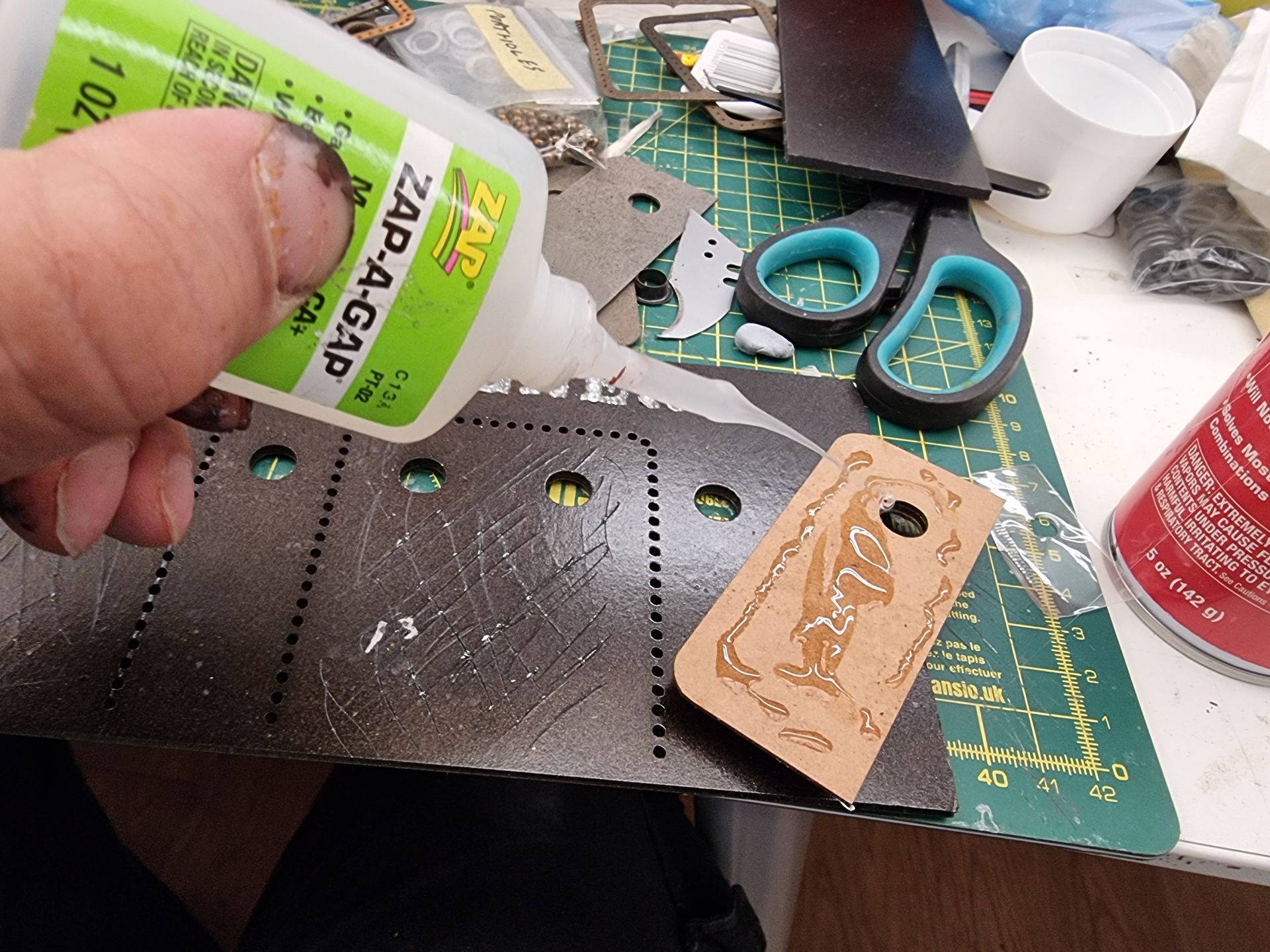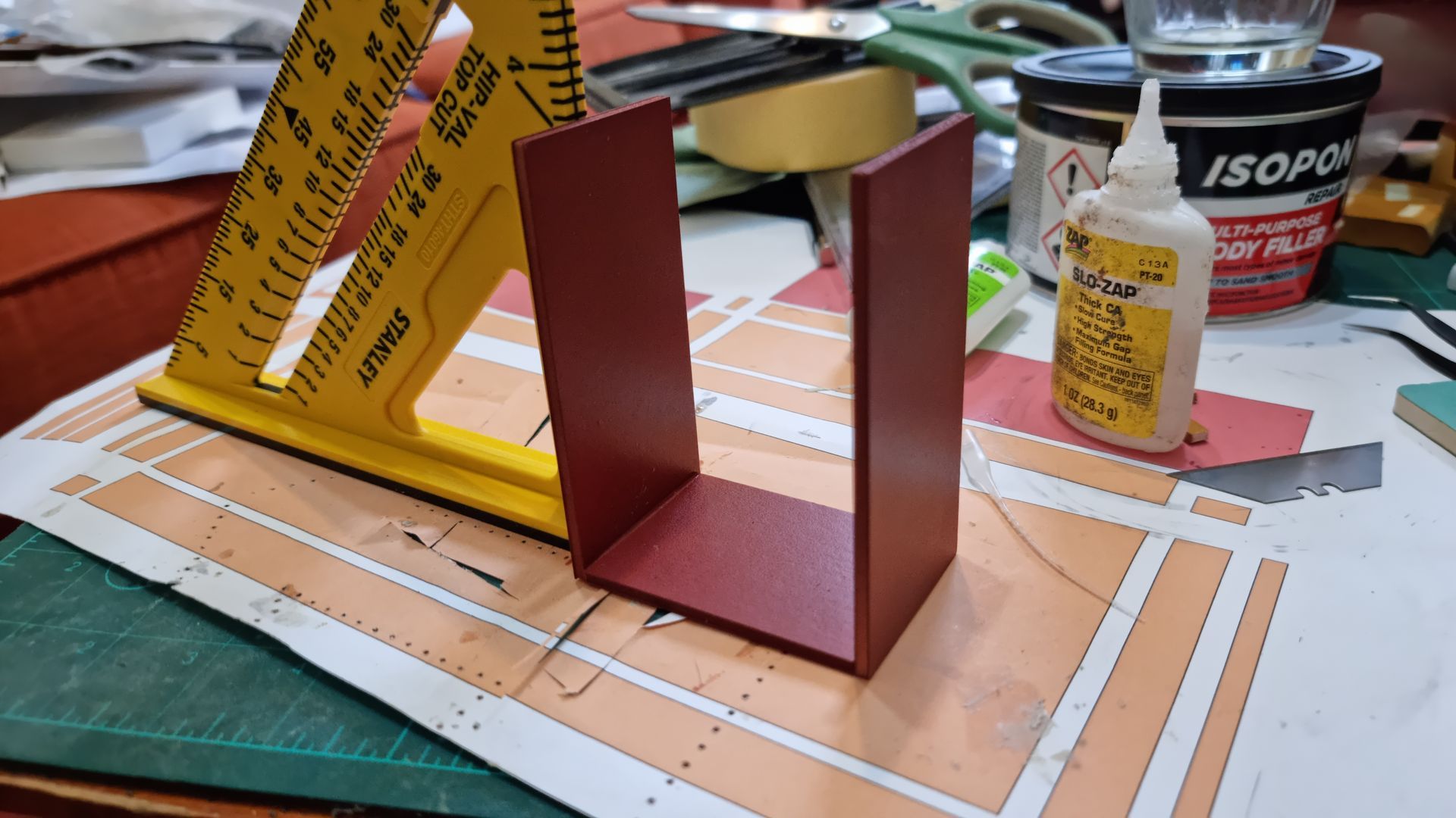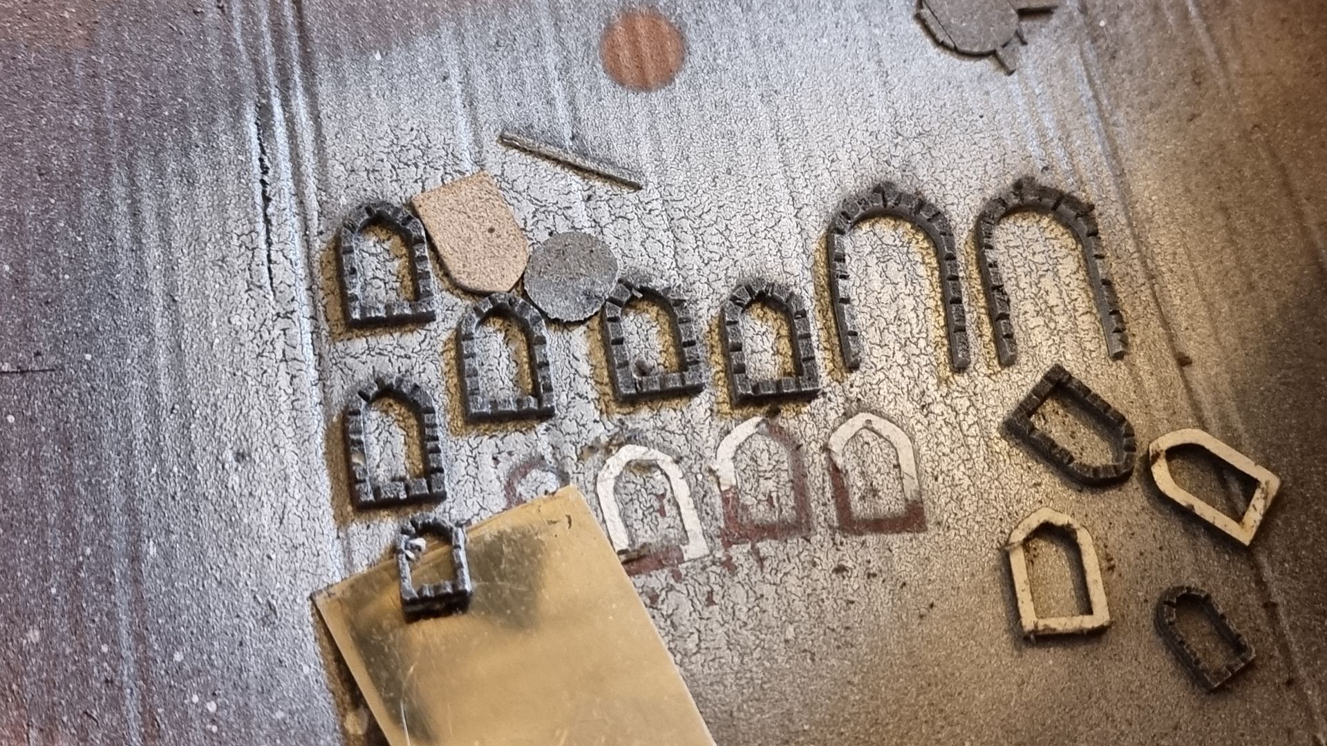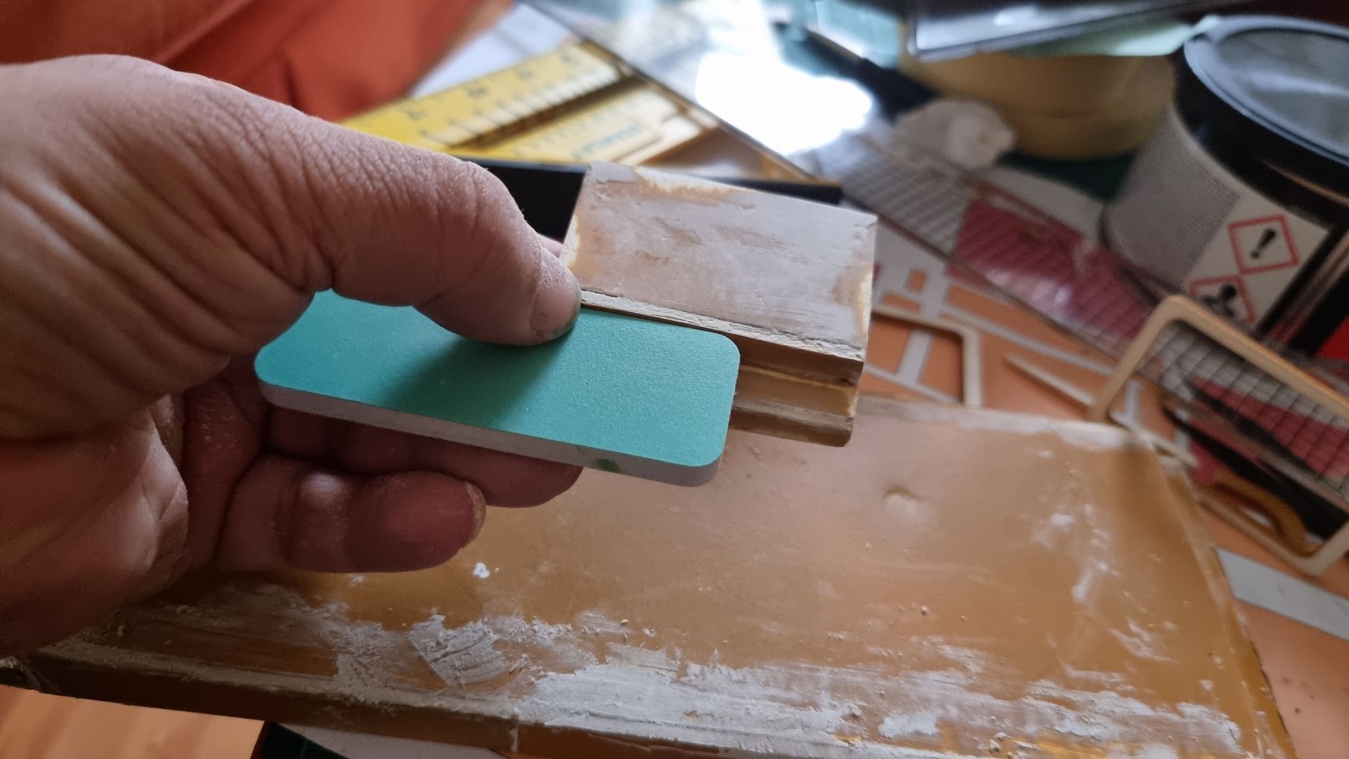 Laser cut dark acrylic disc were added to inside of the portholes. The inside of the shop box had lots of A Frame glued into place using a mix of accelerated superglue and rapid epoxy glue.