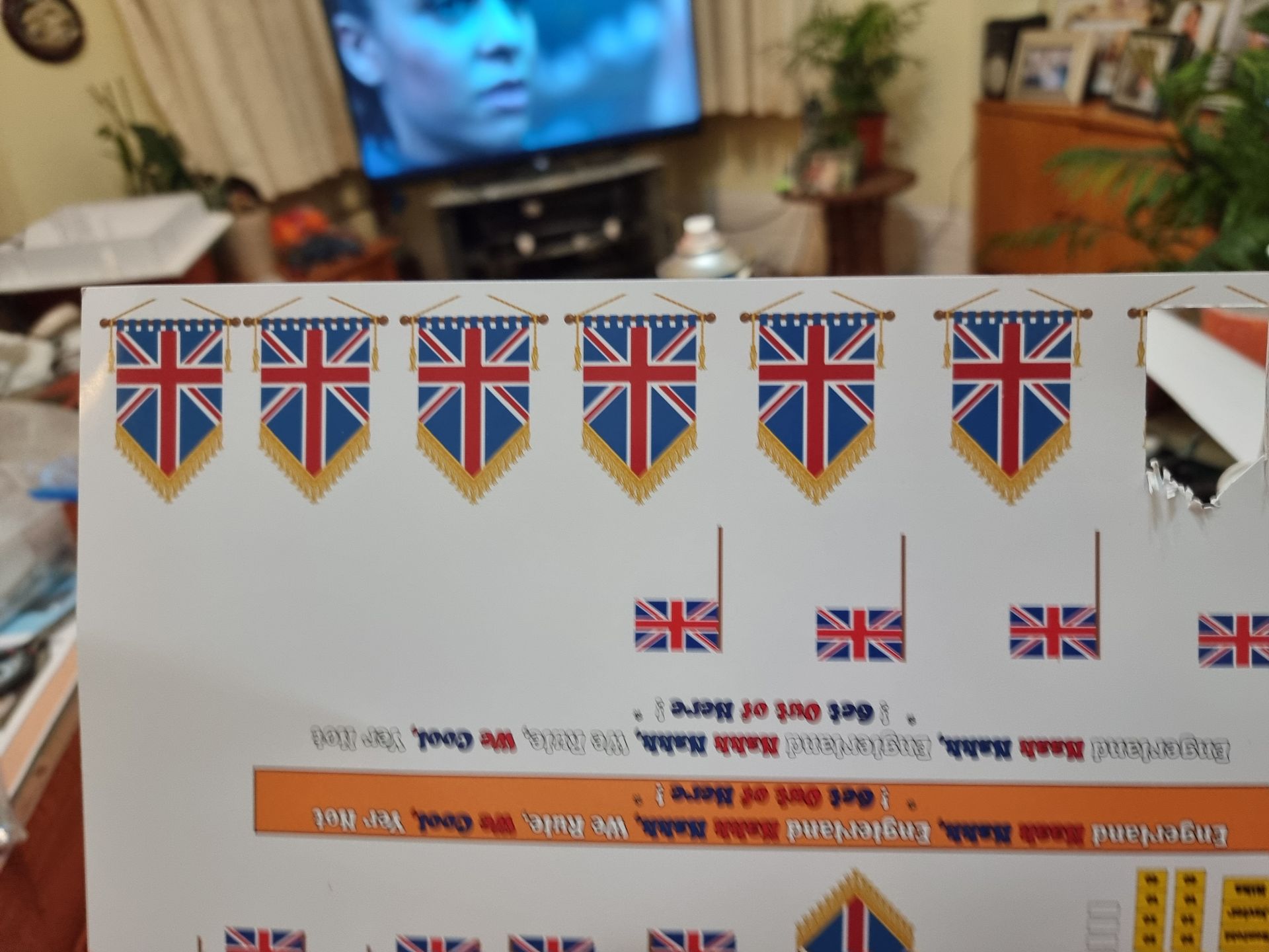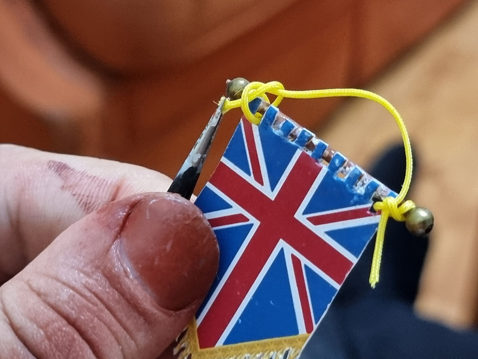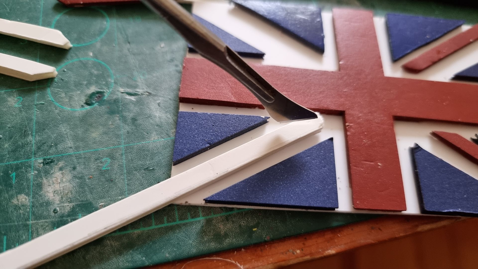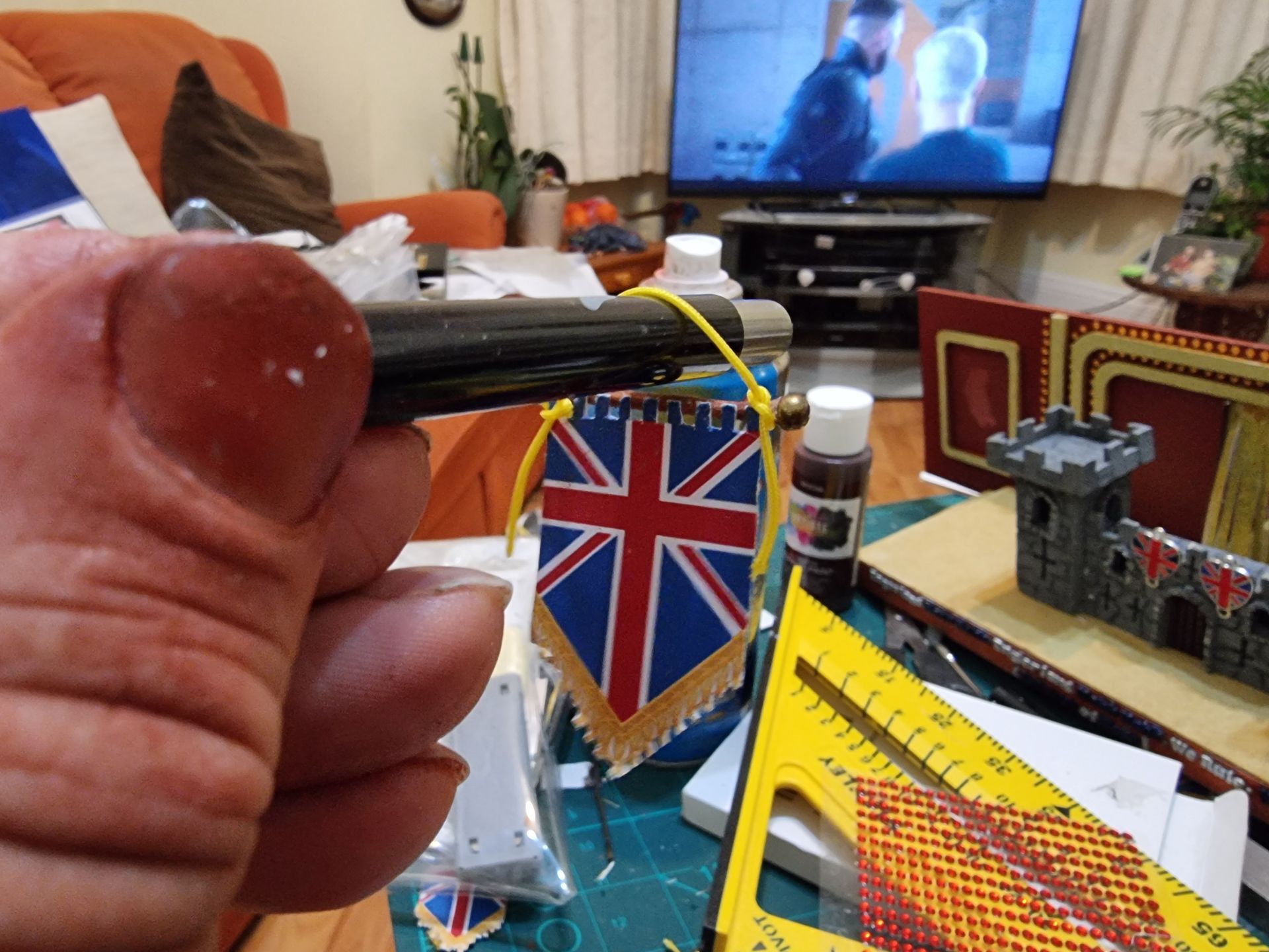 At a model level I just went to my local toy shop and purchased a £2.00 packet of rubber hollow sharks. used Stanley and scalpel blades to splice them and glue on the flags.