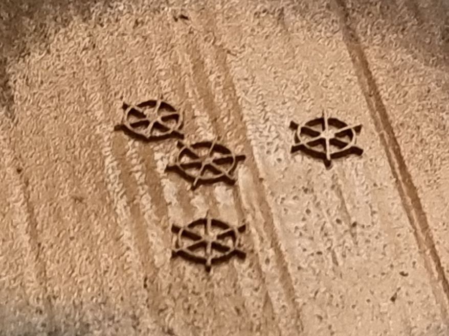These were painted in a thin wash of burnt umber and other brown shades, with green dry brush patching.