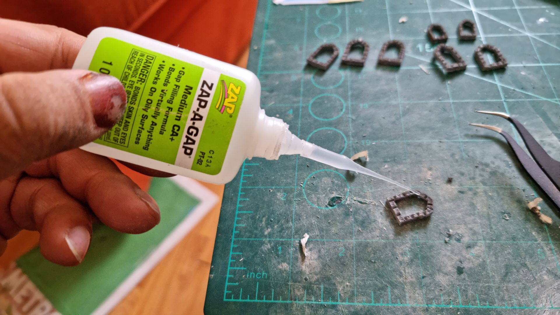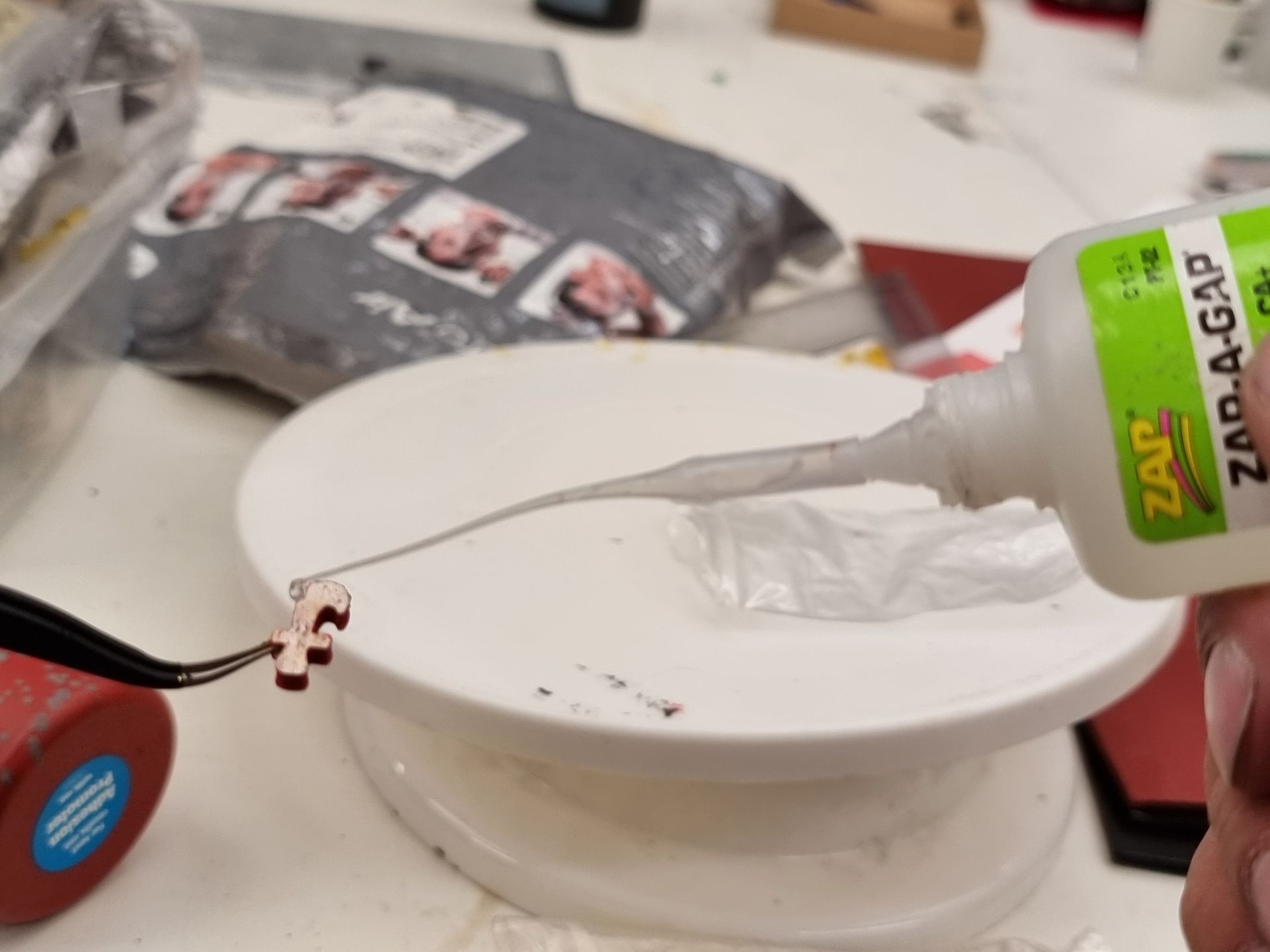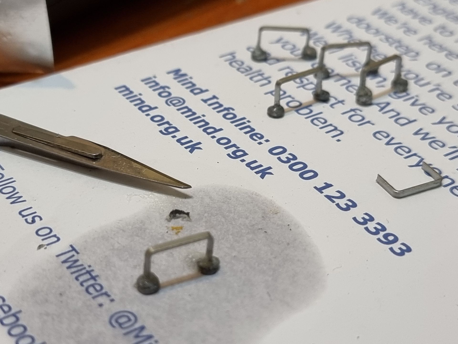 Superglue was used to stick the staples to these bases, with accelerator spray.
