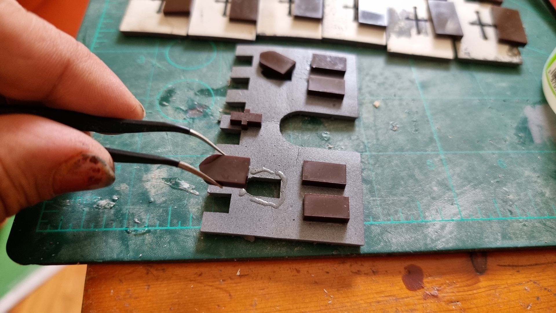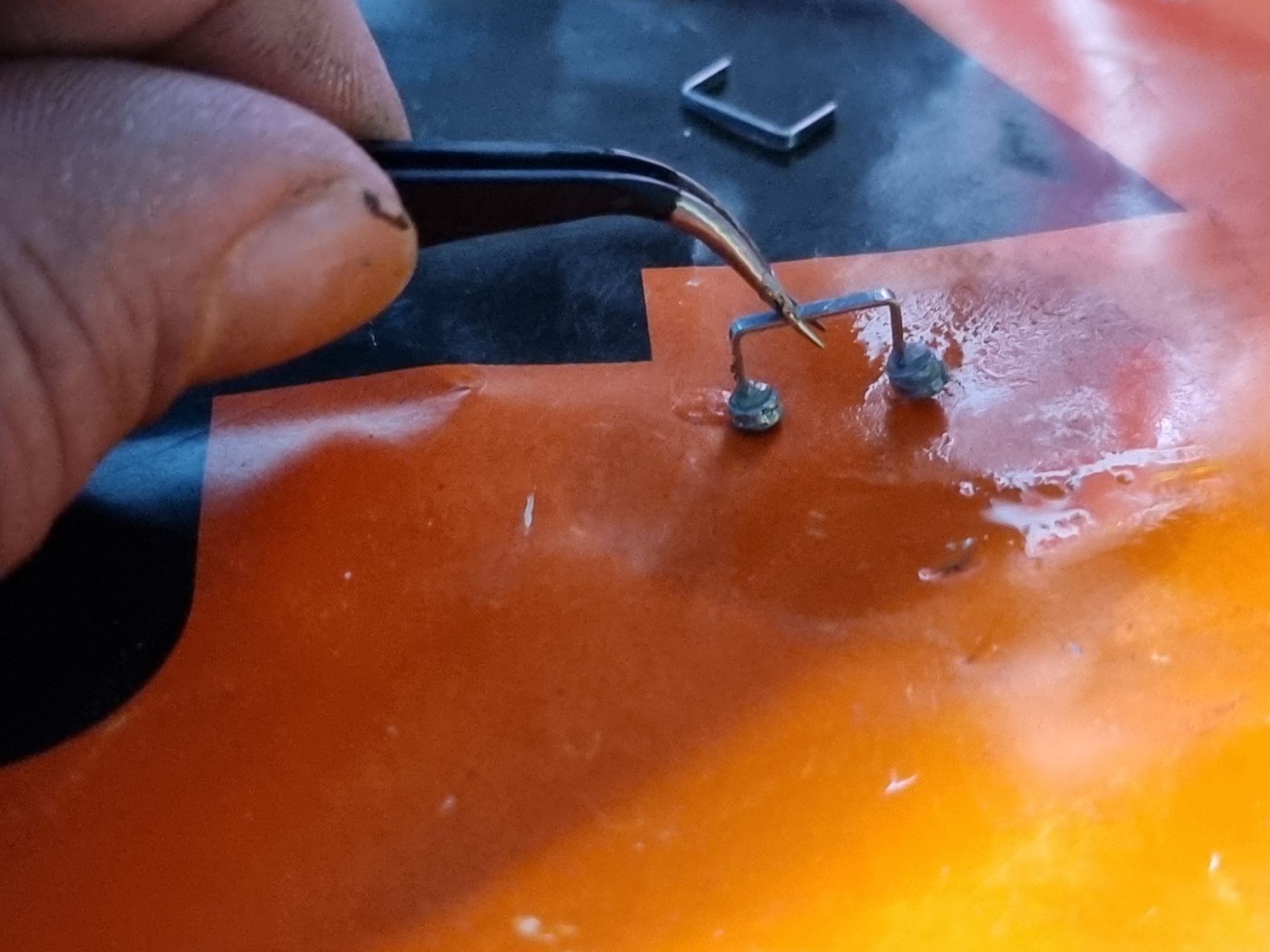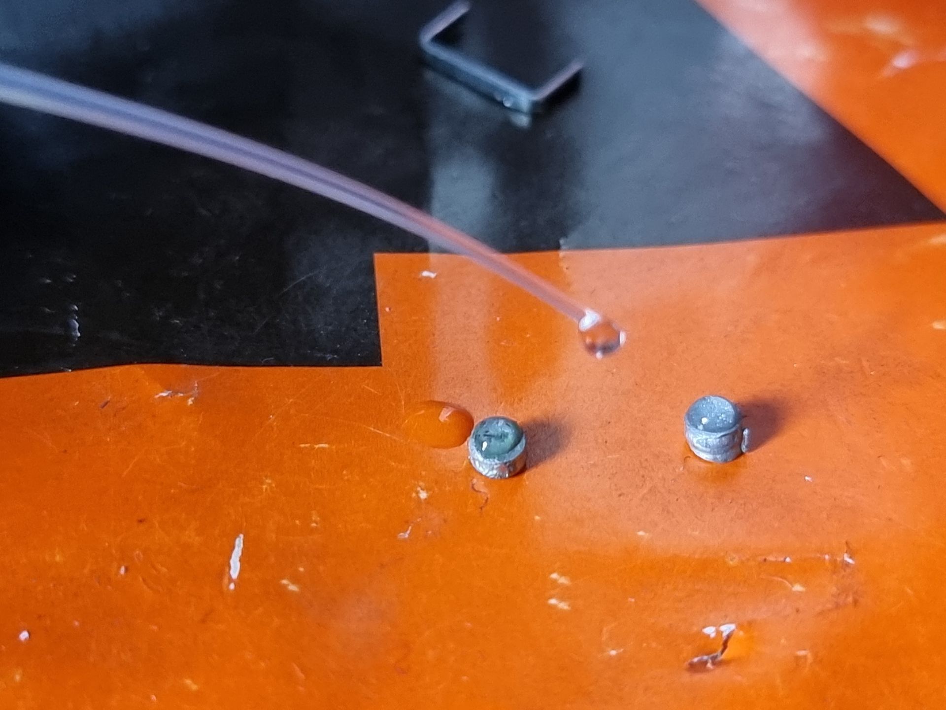 Superglue was used to stick the staples to these bases, with accelerator spray.