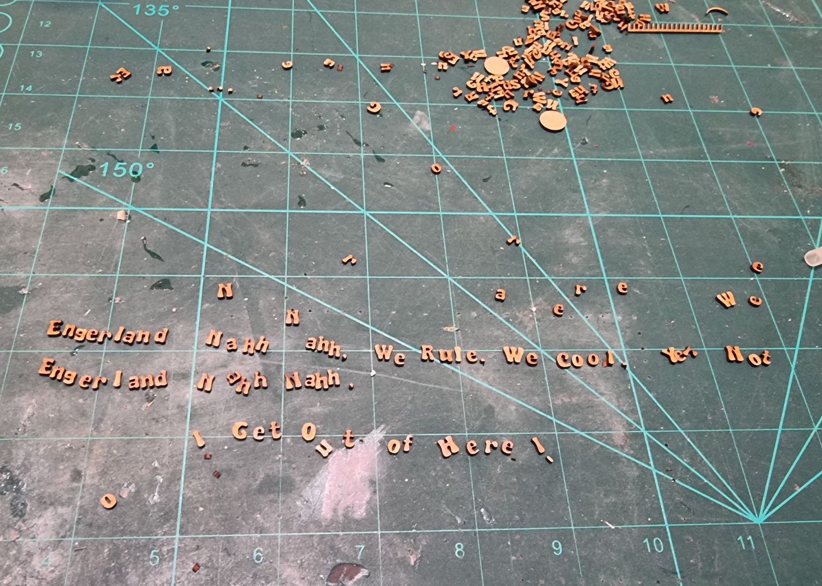 - Thes clearly had to be laser cut for the frames and had printouts gued behind using the superdream font