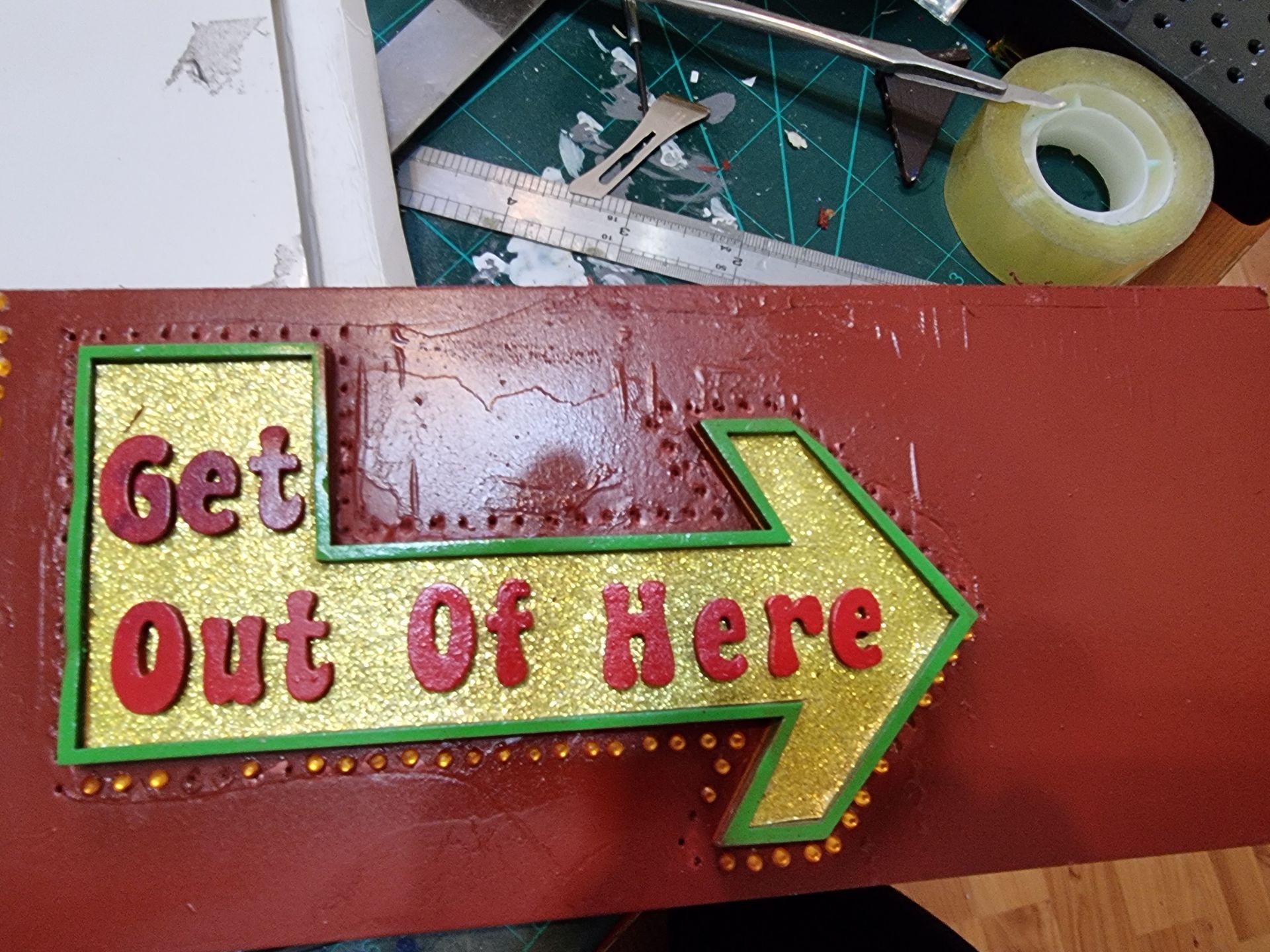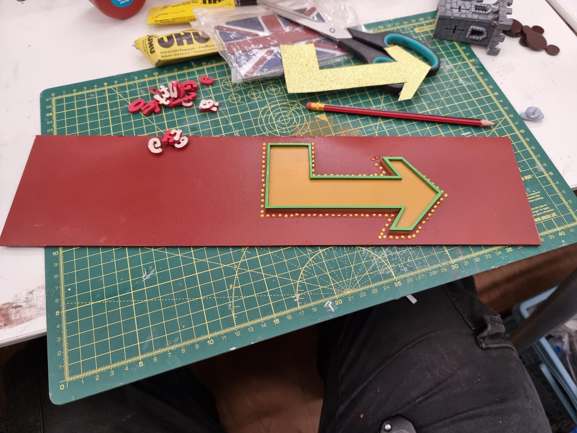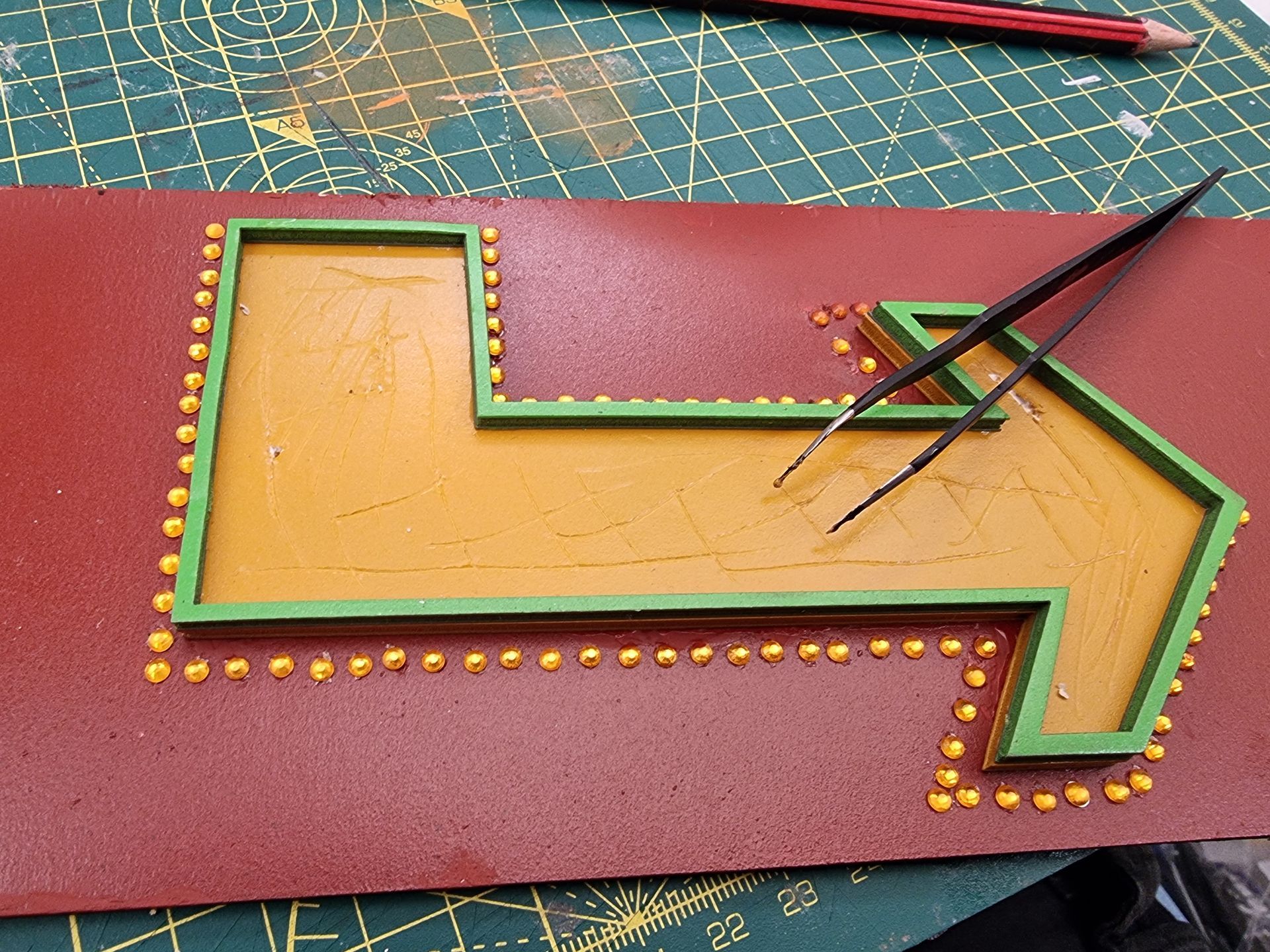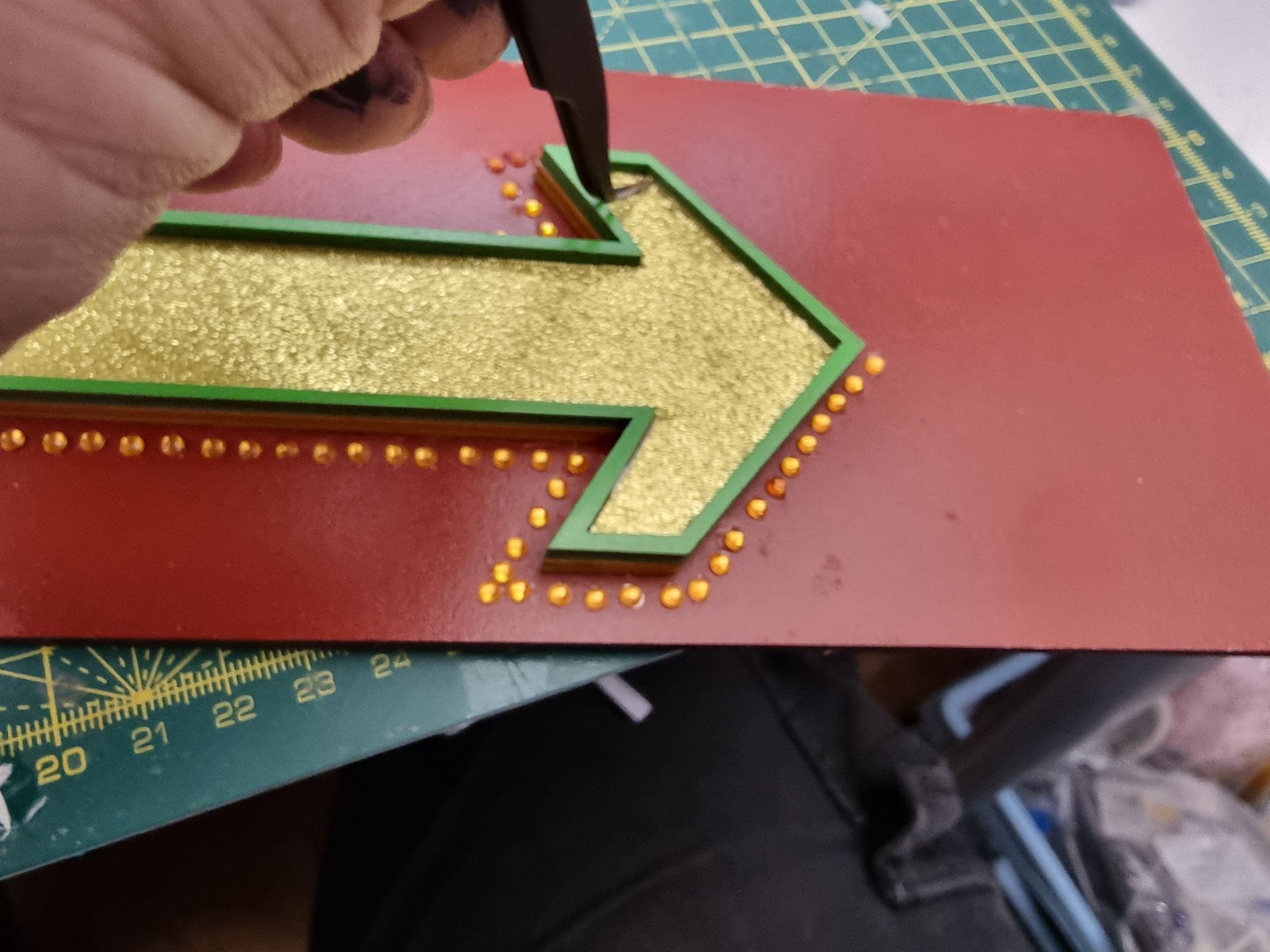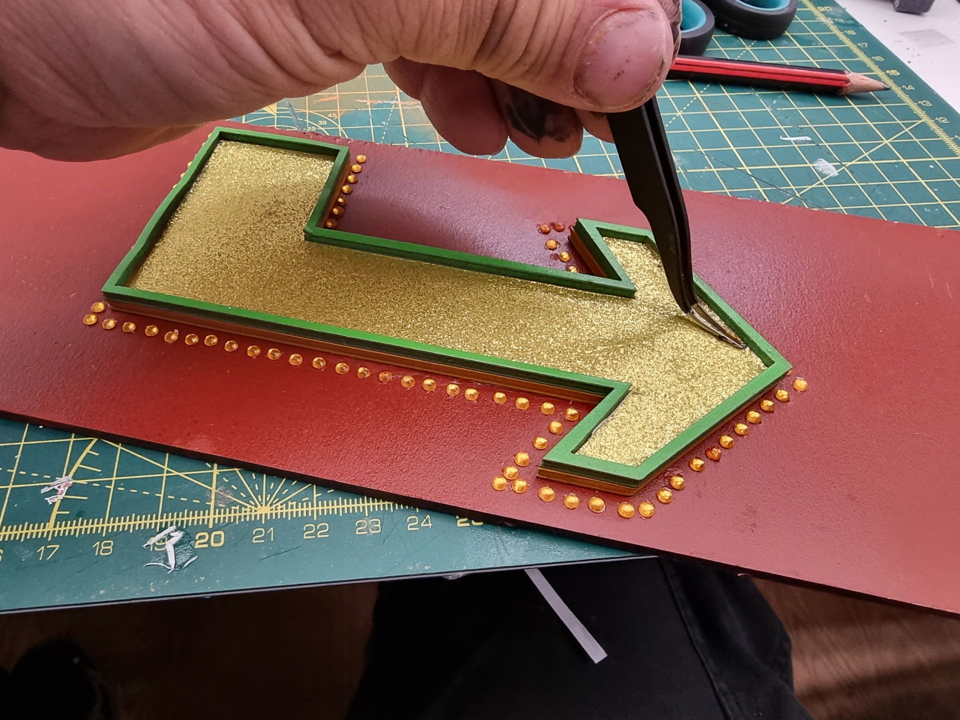 Fat and Chunky, glittery and sequenced to simulate fairground light bulbs, these were just cut out and stuck on.