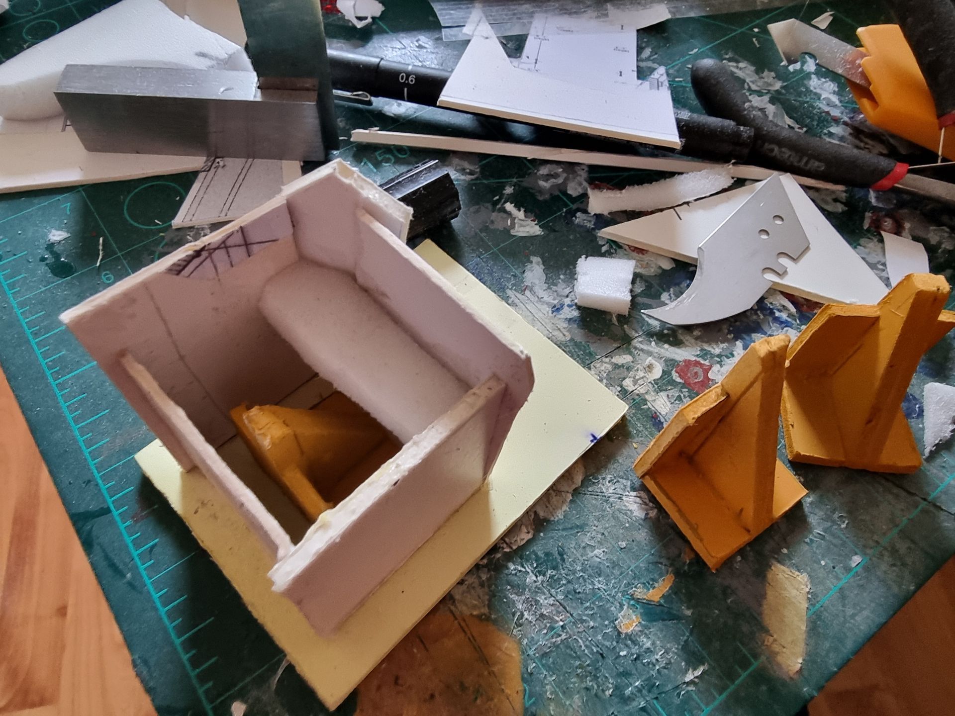 This was used to build two Card models of the studio. One earlier 1:50 scale white card model which can be seen in the white card model :