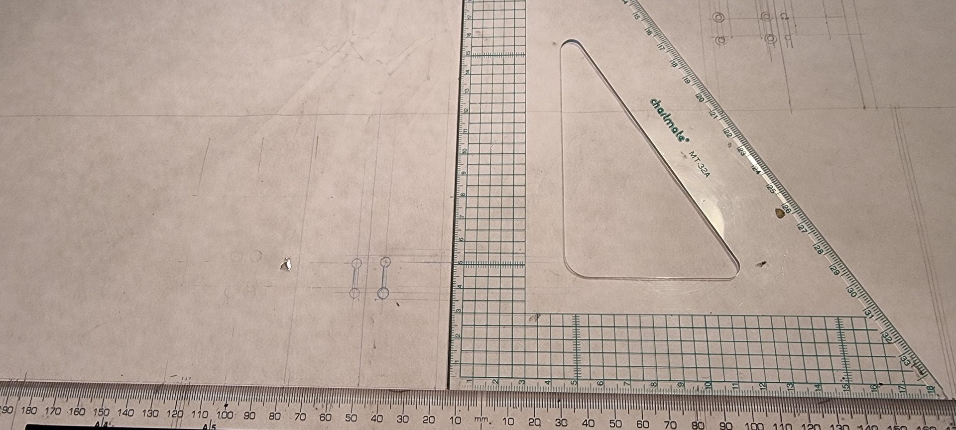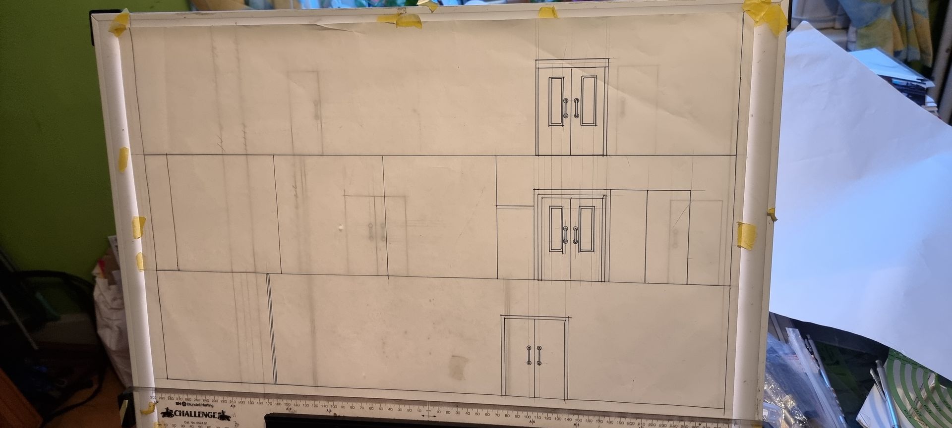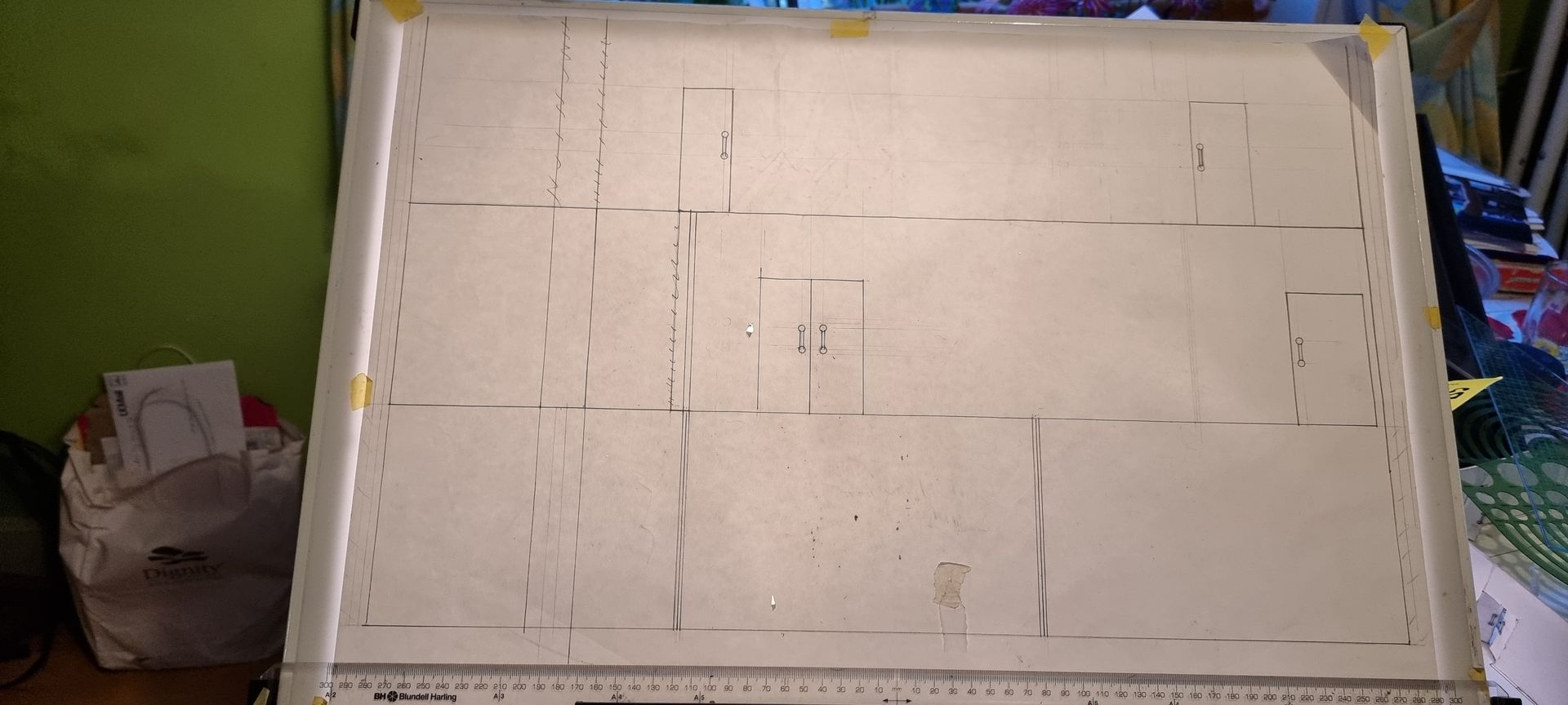 So the elevations and base were drafted by scaling up the measurements from my original 1:50 scale white card studio model.