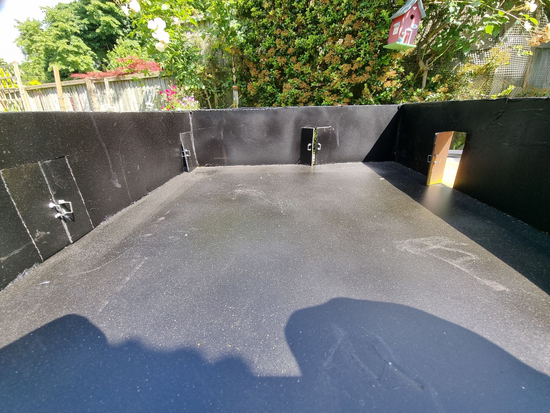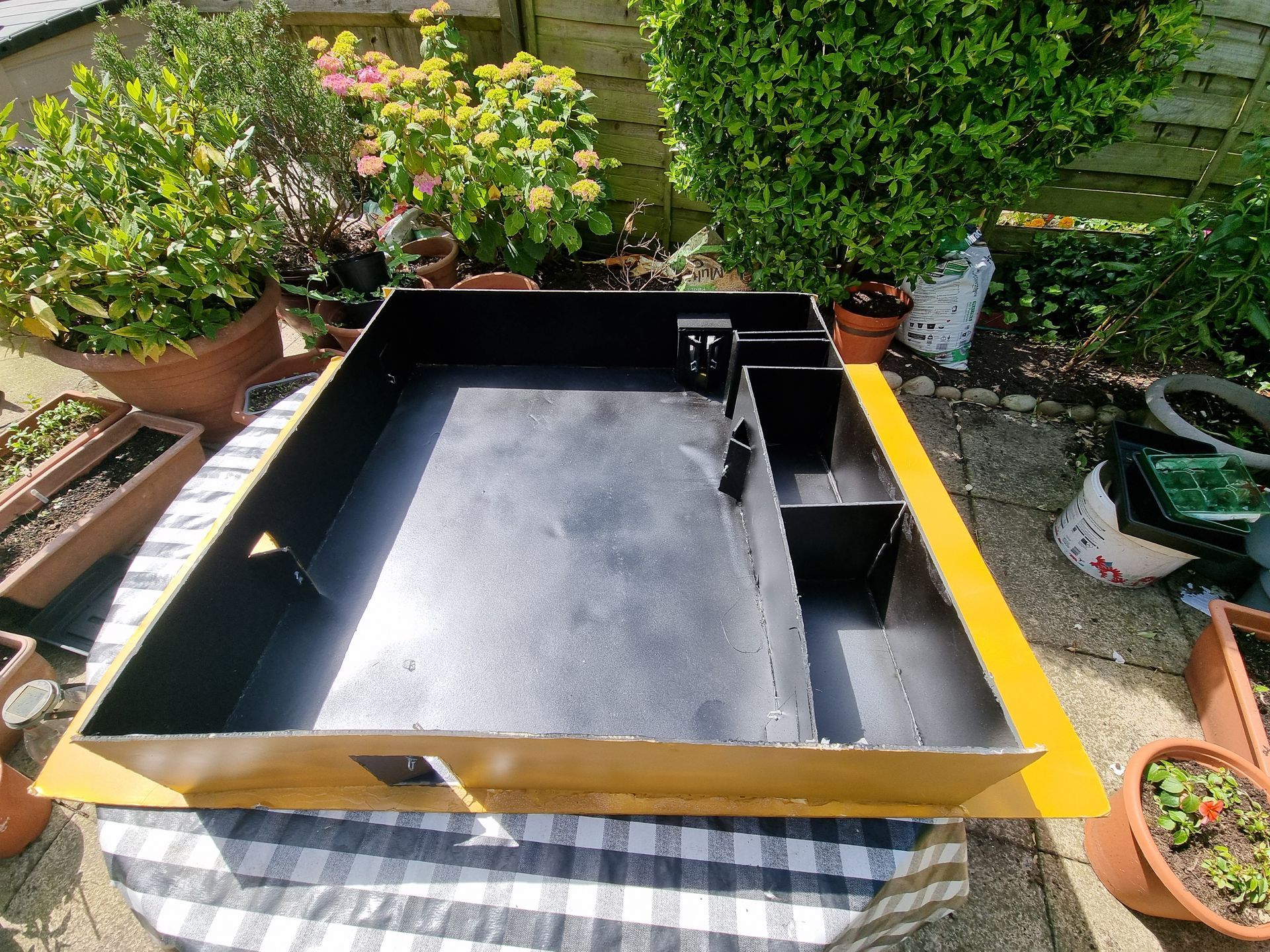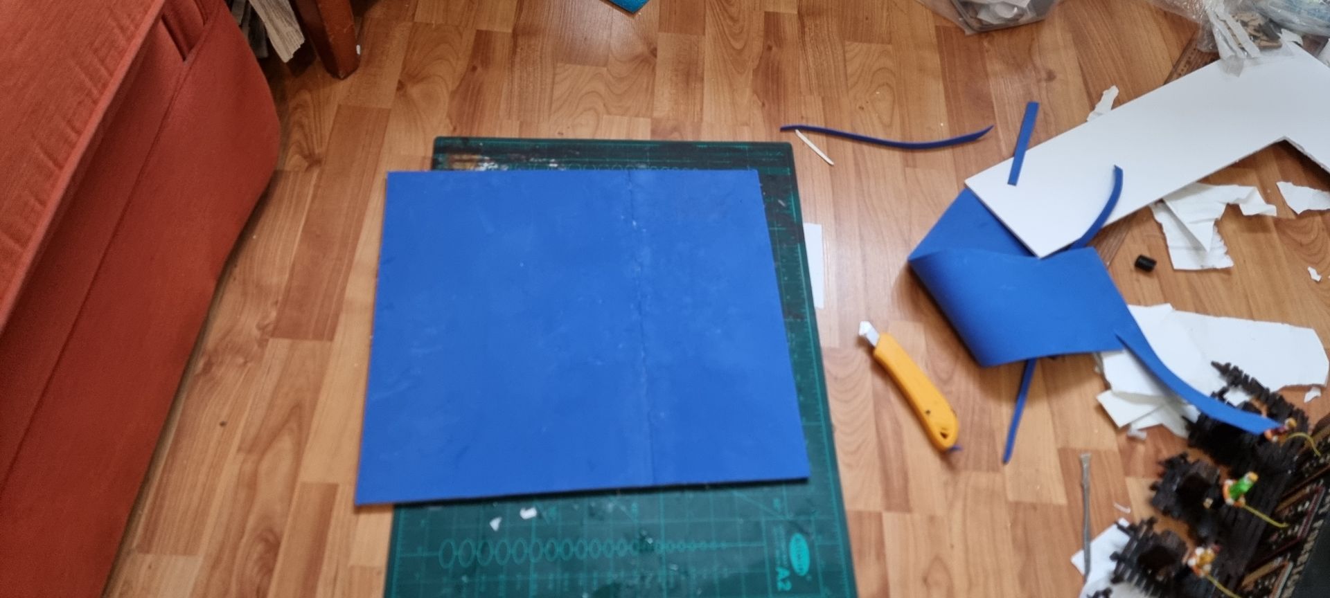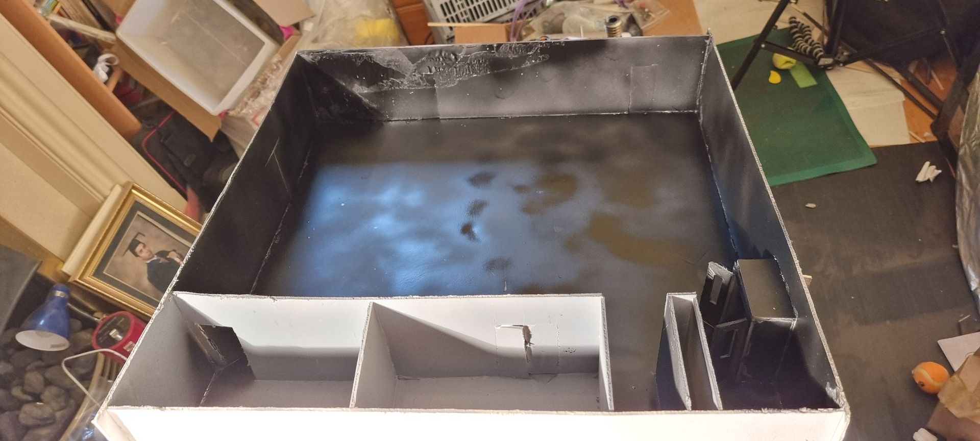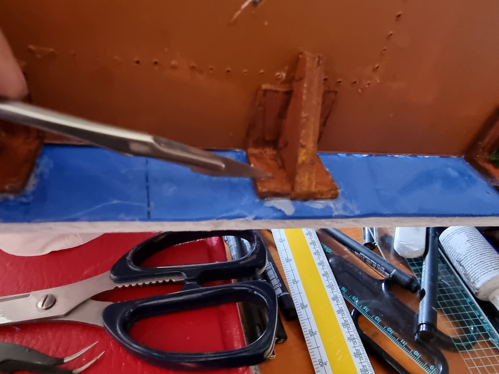 The intial sea was done witn blue foil. I had thought this looks poor quality and replaced 2mm royal blue plastazote foam for a more carpeted look but think now that should have better left as was.