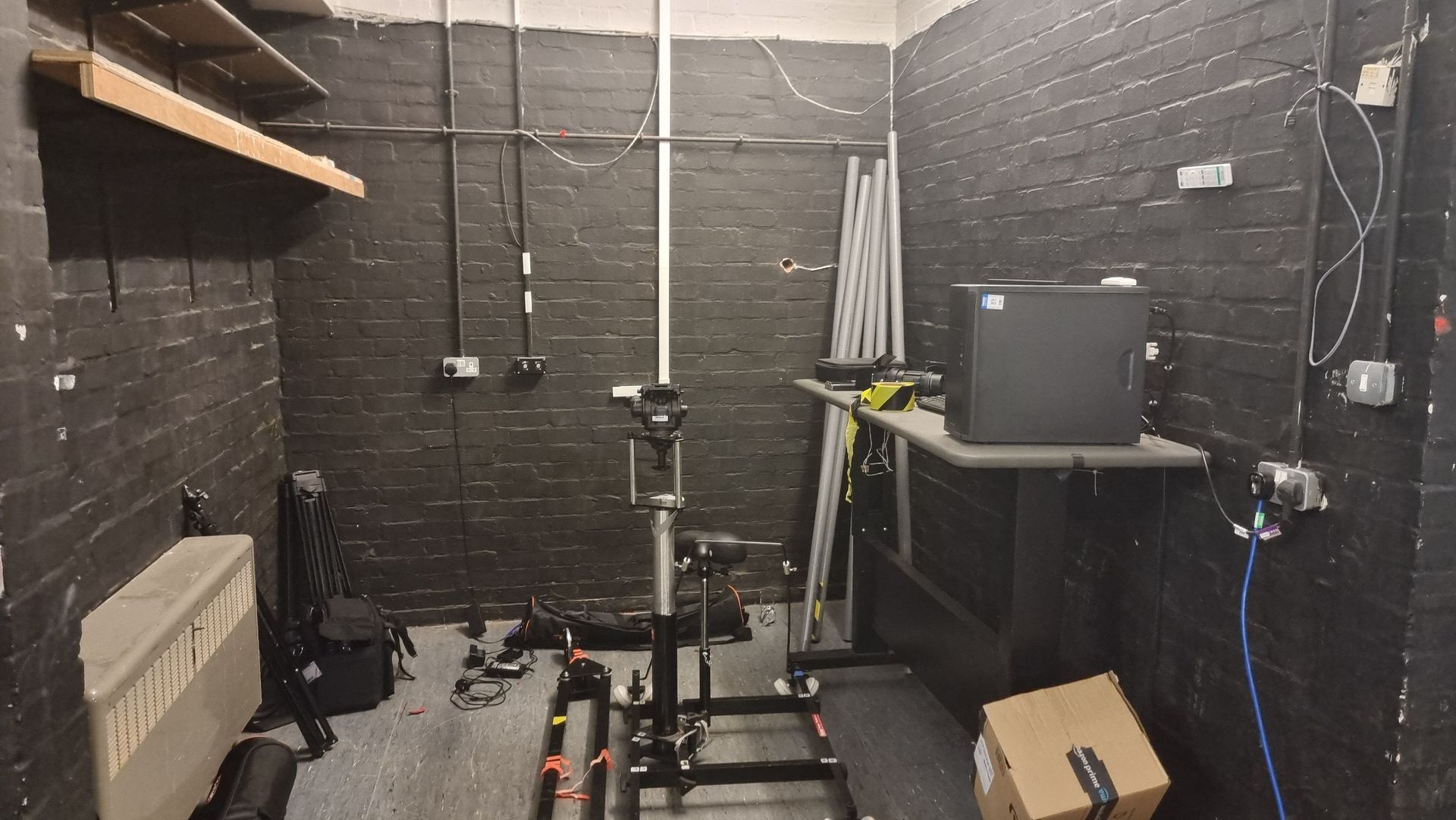 Its about 14 meters Square and 3 metres high which means the hanging lights presented a major problem to for the audio sound recordist boom mike as well as filming.