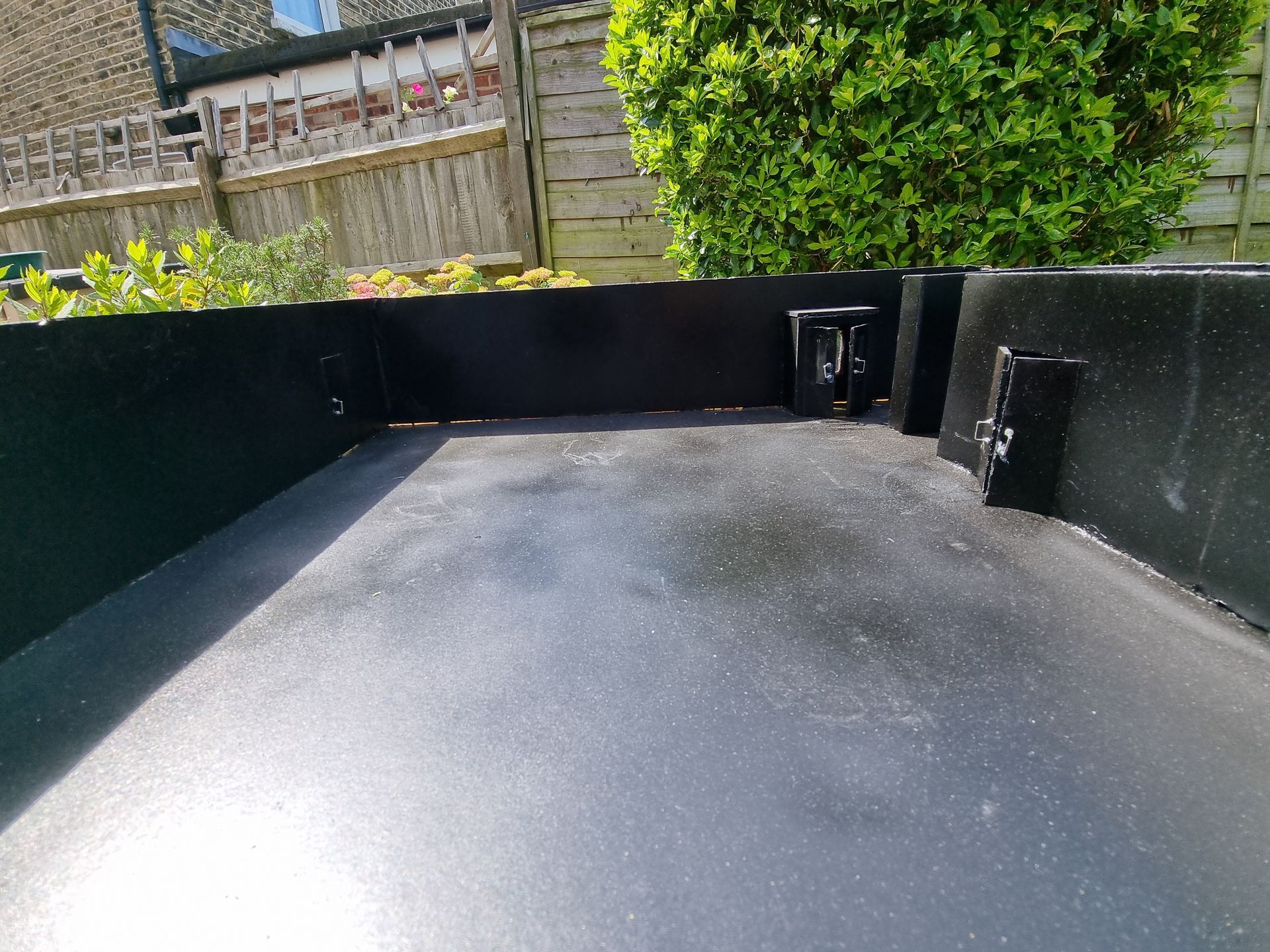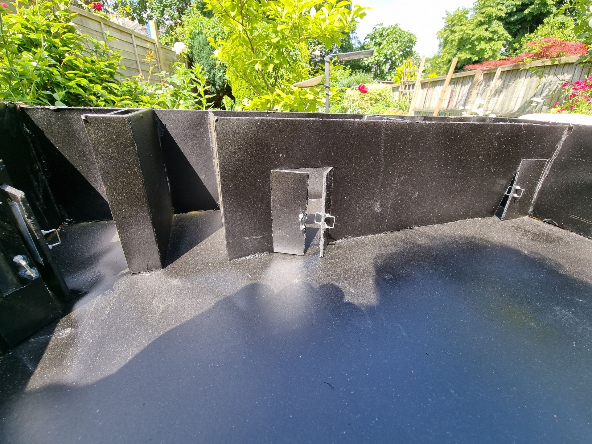 The original channel flooring was done with blue foil. I thought this looks cheap and tacky and replaced it with royal blue 2mm Plastazote foam which I thought looks more carpet and professional, looking back I think the fil looks more like water.