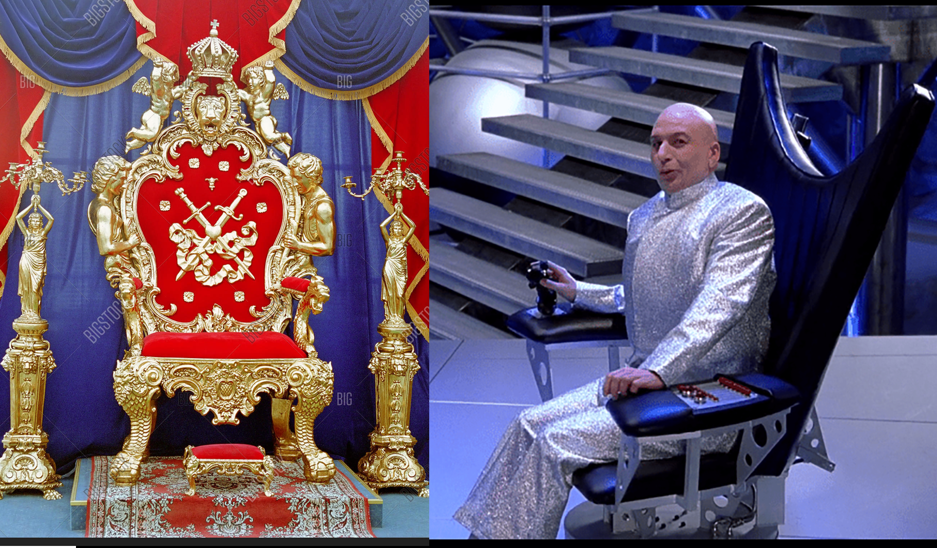 I photo bash my original concept that has the host sitting down on a swivelling chair depressed to look like a throne only a tacky version of one.
