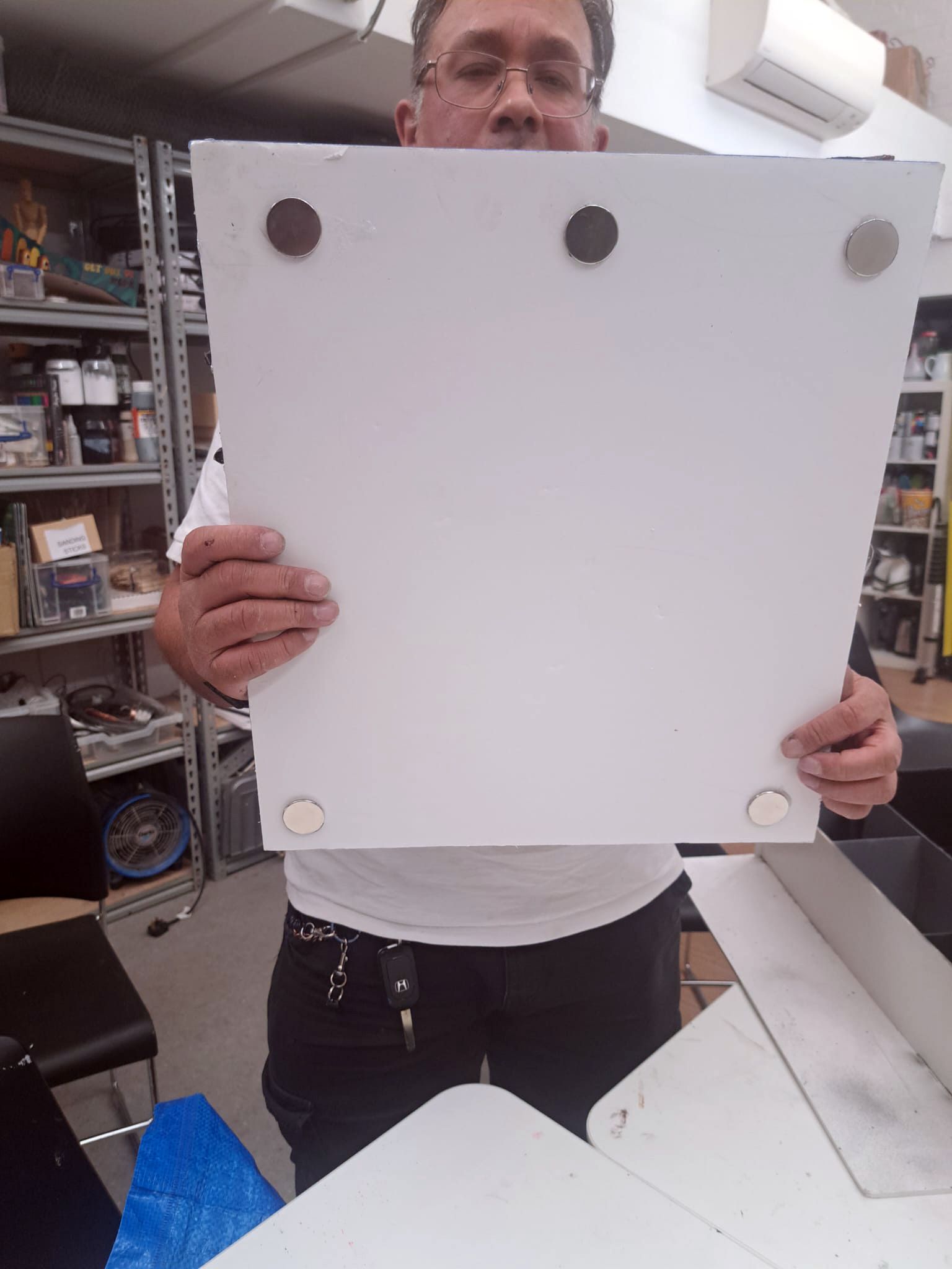 The underside of the studio had powerful magnets stuck on to help hold the various sets that could be placed inside.