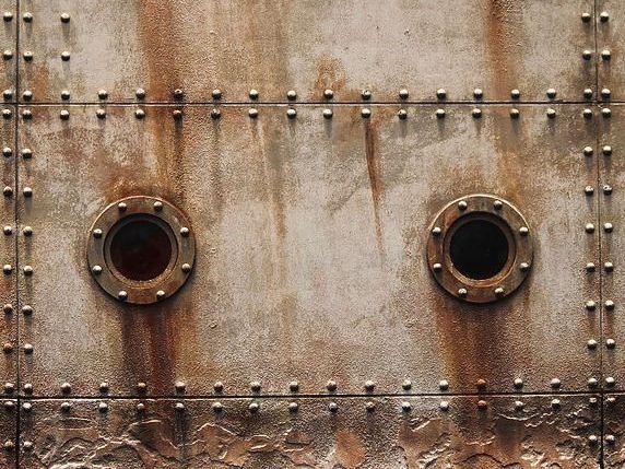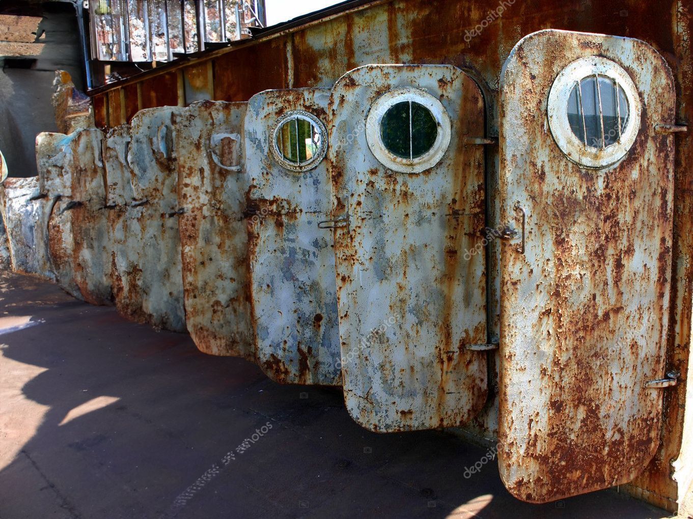 More rust painting, dirty down spraying and glueing grains of sand were added to age the doors.