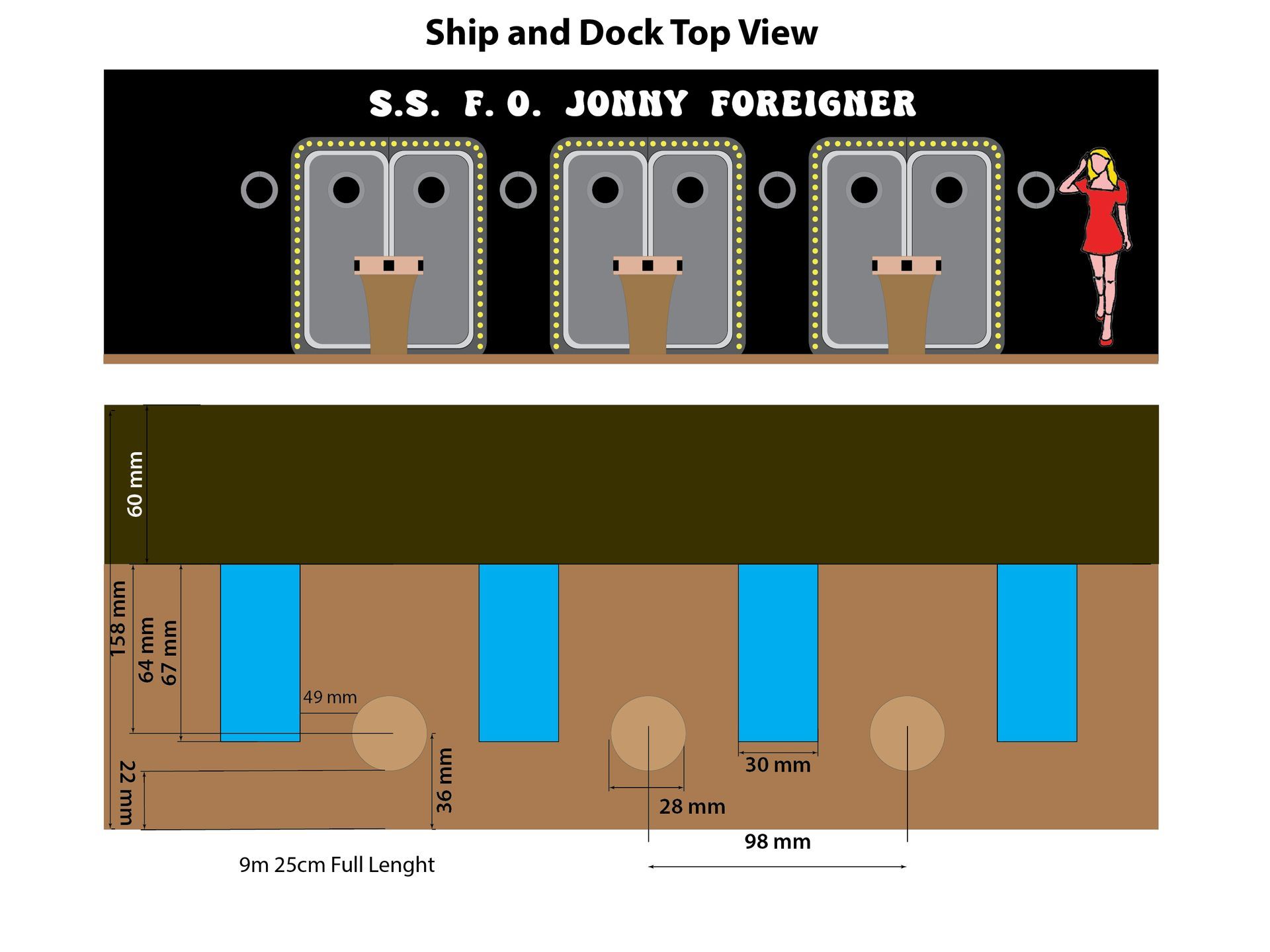 In terms of the ship trouper room behind the contestants the flats need to be measured so the gap falls on the ship door gaps and centre of the portholes to split evenly and enable working doorways.