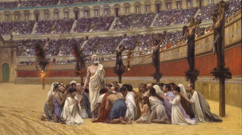 - Roman gladiator arena entertainment both of gladiators and horrific executions whilst the raucous sadistic audience get their pleasure form the suffering of those in the arena. Laughing at, cheering and jeering.