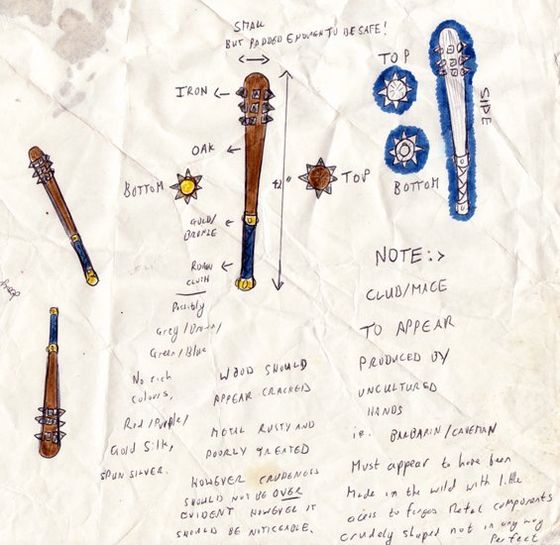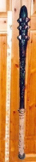 First mace commission to a friend's sketches for a bloody, dirty club with some basic metal work & rough leather grip.