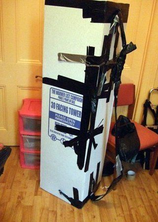 Necessity being the mother of invention, I used Duct tape strapping systems to make it more comfortable and easier to carry. The tape pulls away from the box much easier than a sewn on strap on a backpack but the principles why are the same in terms of shear forces causing peel off as all the forces are applies to a small line of adhesion or sewing causing a stress point to fracture.