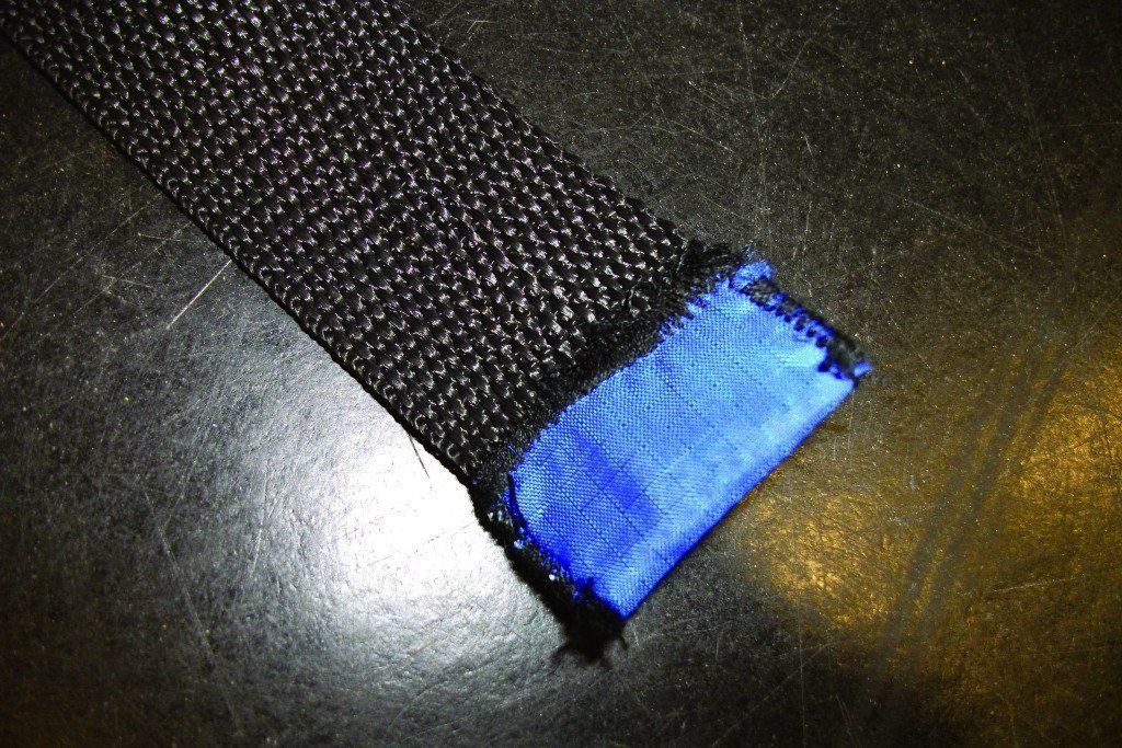 - A choice of connection points was added with D rings tightly sewn together with folded webbing leave the reap points to be split for bi direction sewing connections. This allows for different configurations.