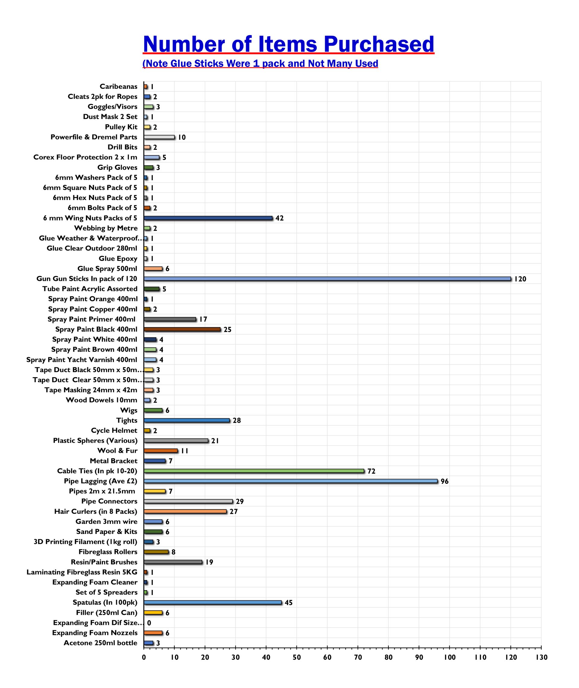 The glue gun sticks were in a 120 pack but most have not been used so the high number should really be discounted.