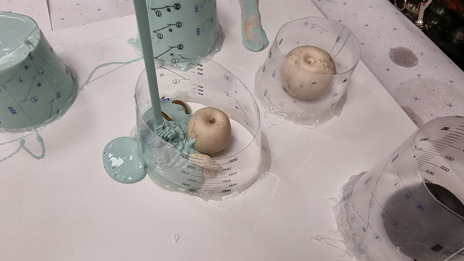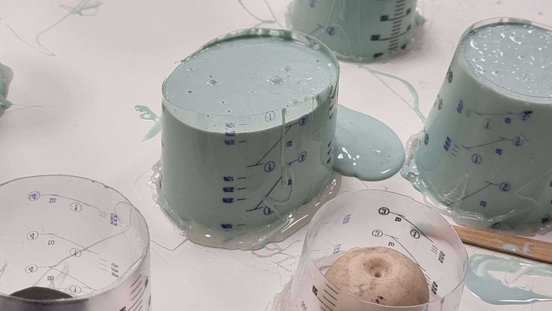 With the mould set up, the silicon and catalyst needed was calculated and mixed at 10 silicon to 1 catalyst by weight.